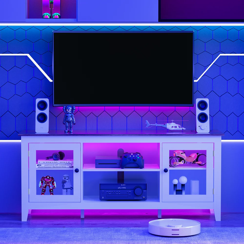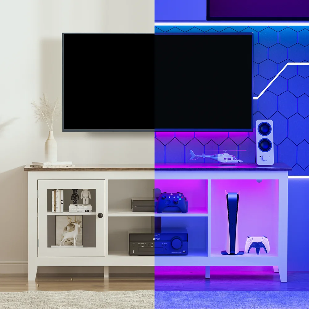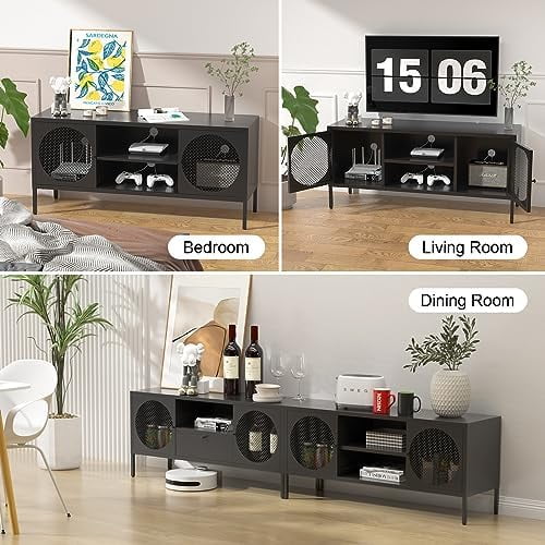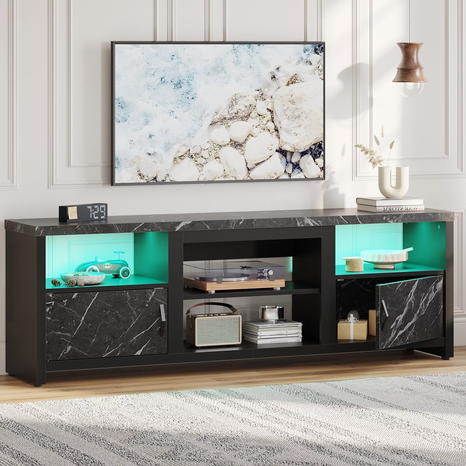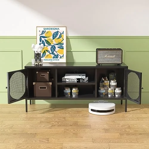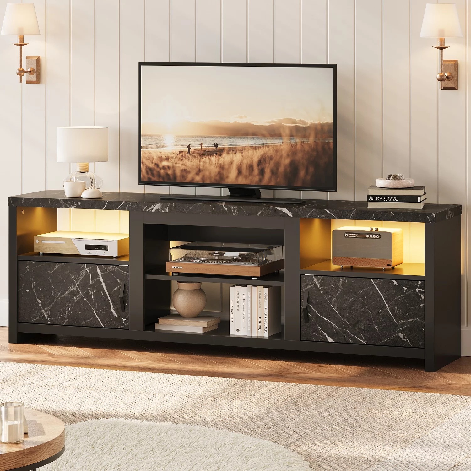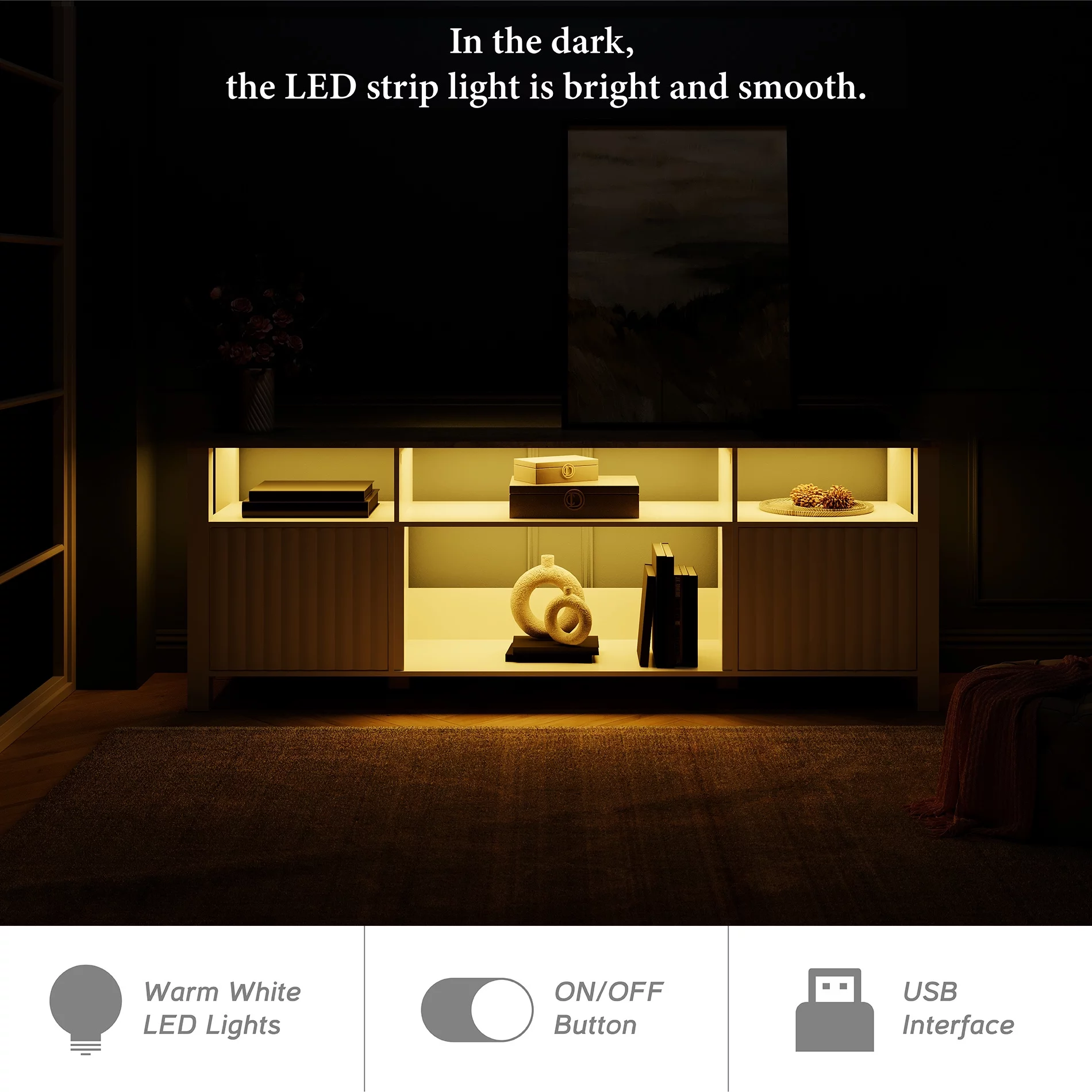 Mid-Century Modern TV Stand for TVs up to 75 inch Flat Screen Wood TV Console Media Cabinet with Storage