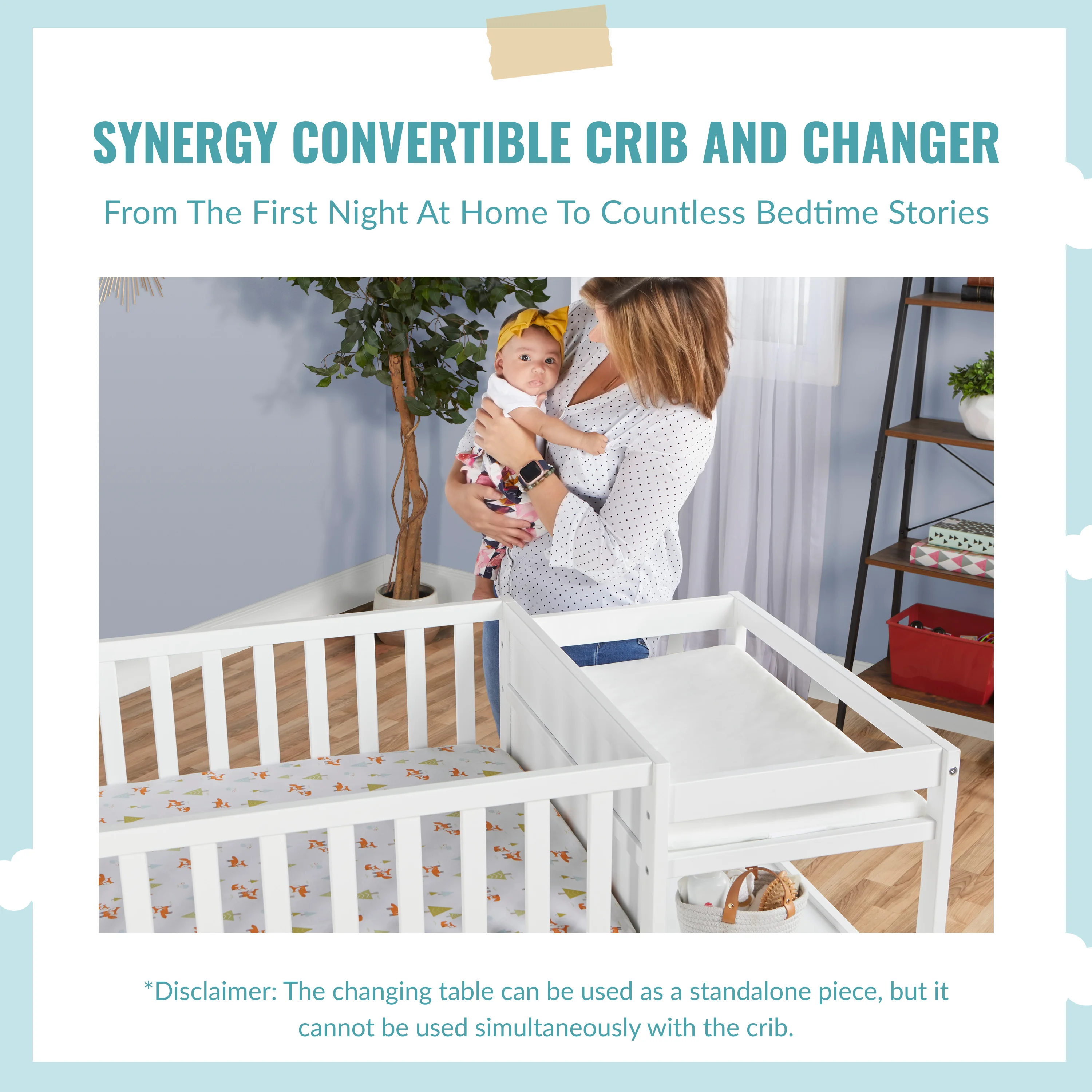 Dream On Me Synergy Convertible Baby Crib and Changer in White with Detachable Changing Table