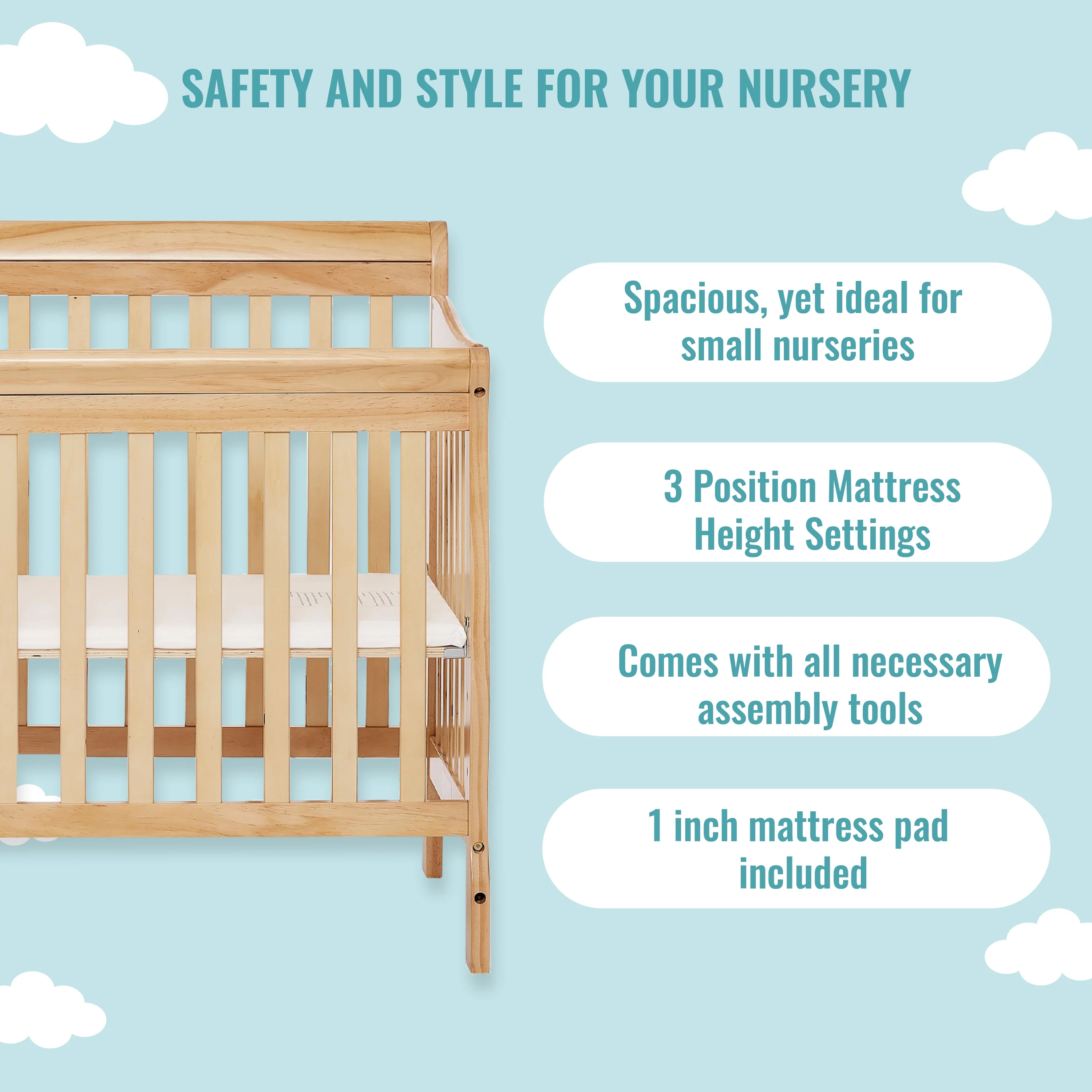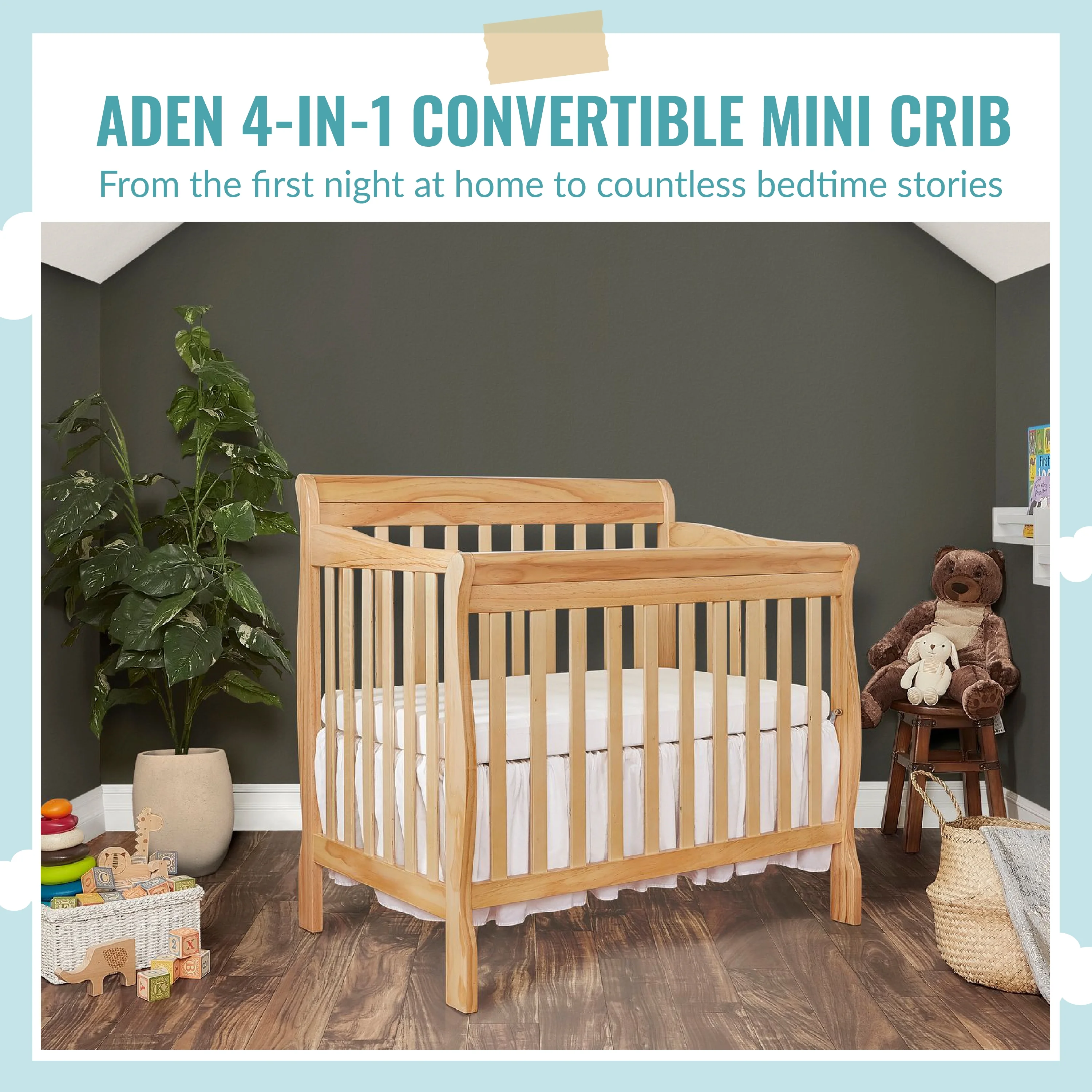 Dream On Me Aden 4-in-1 Convertible Mini Crib In Natural, Greenguard Gold Certified