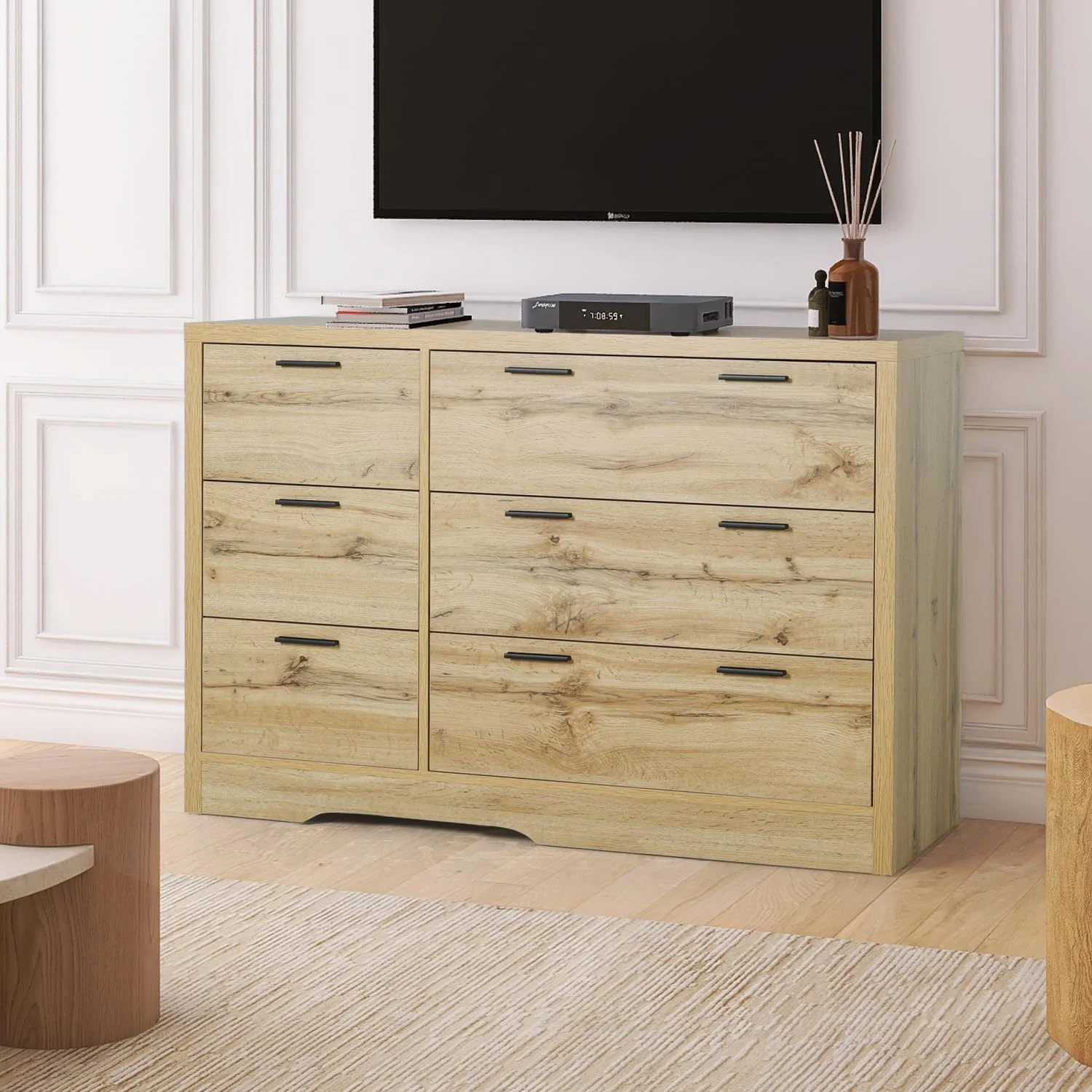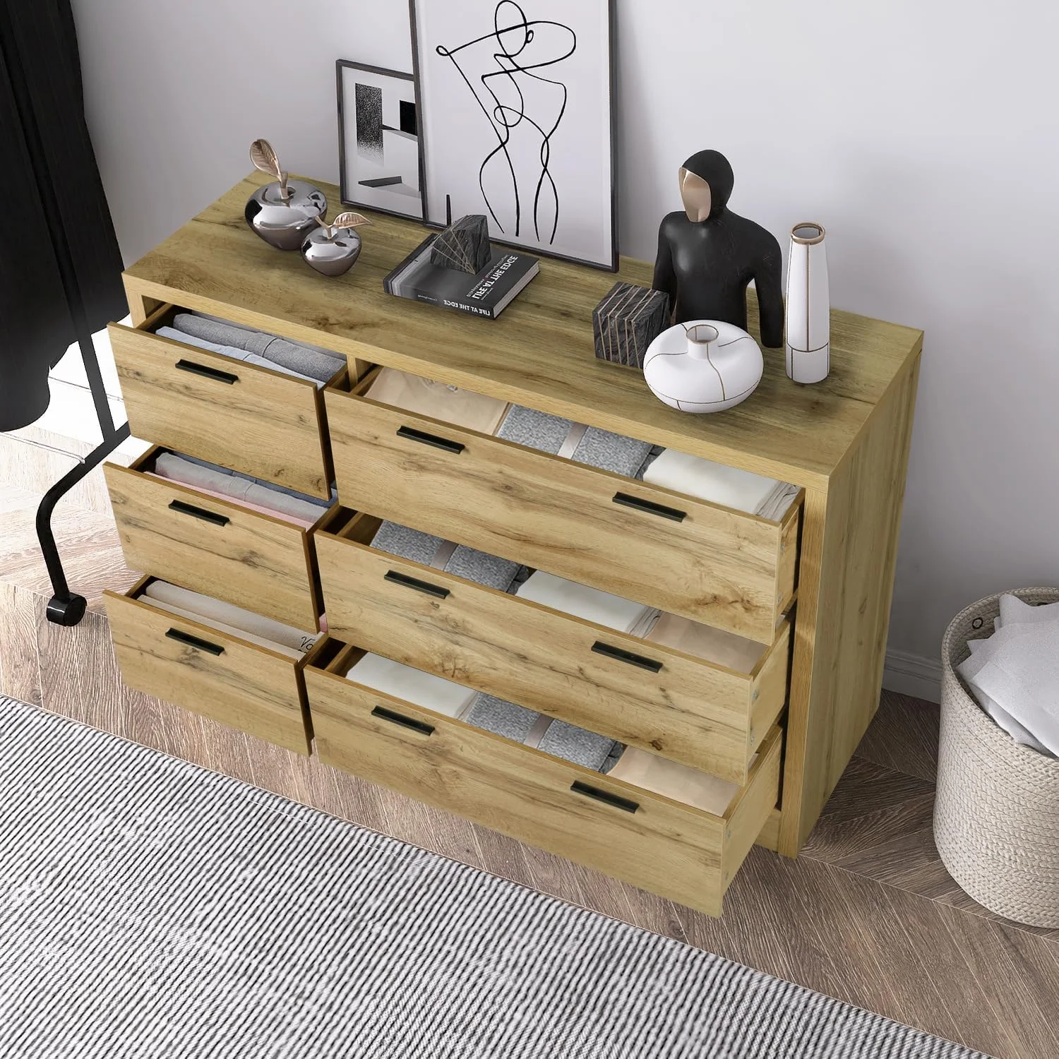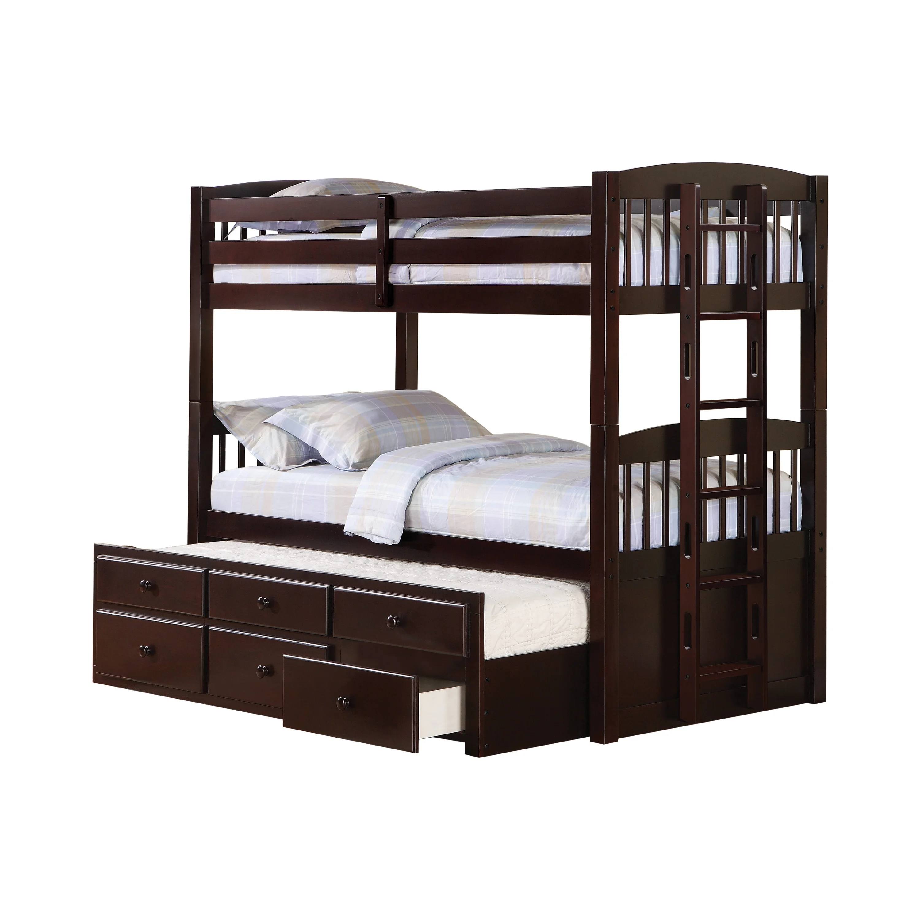 Twin over Full Bunk Bed with Built-in Desk and Three Drawers, Natural