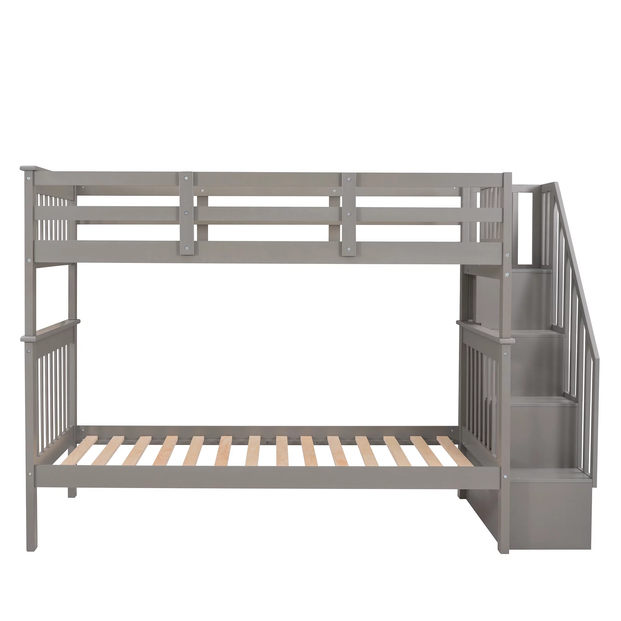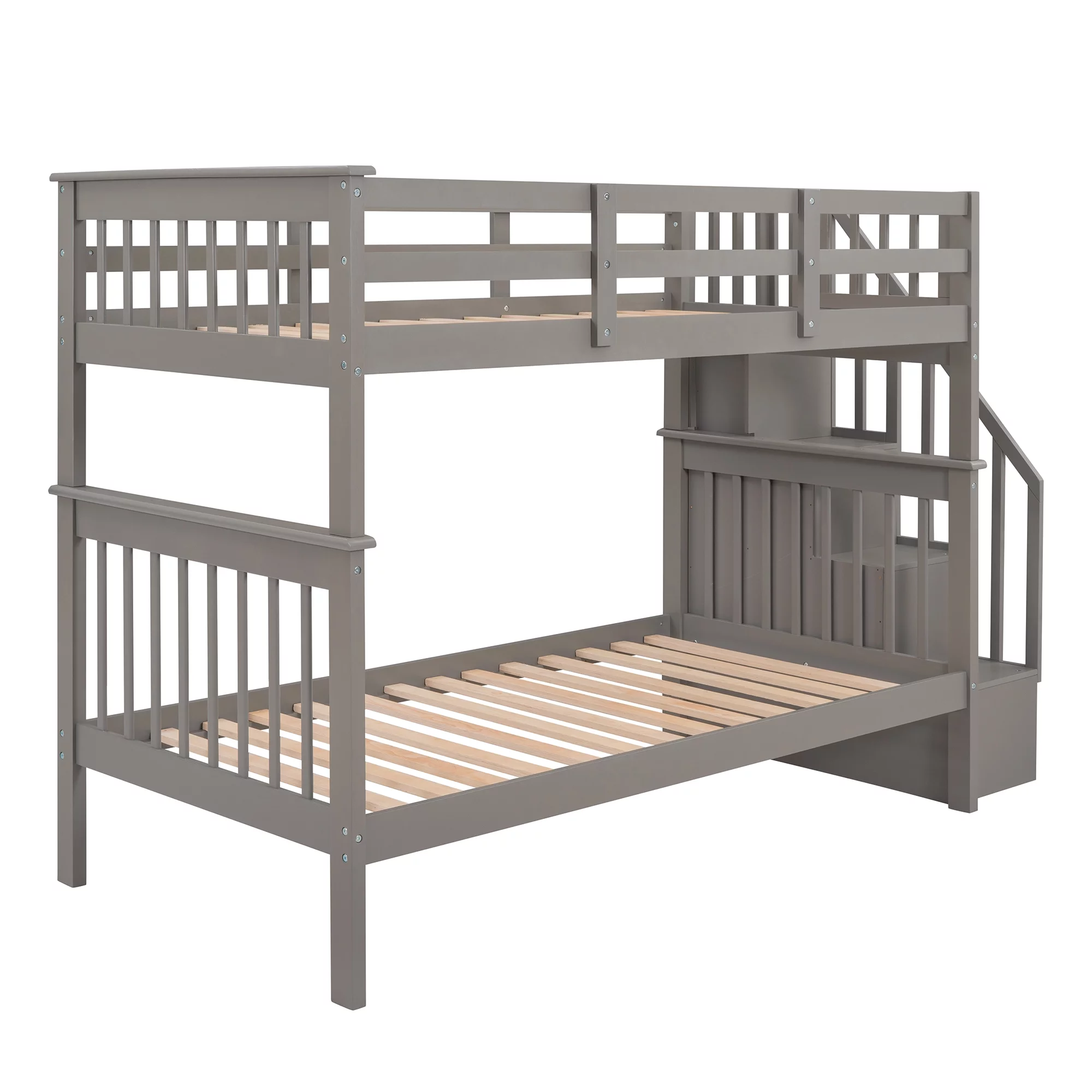 Abanopi Stairway Twin-Over-Twin Bunk Bed with Storage and Guard Rail for Bedroom, Dorm, Gray color