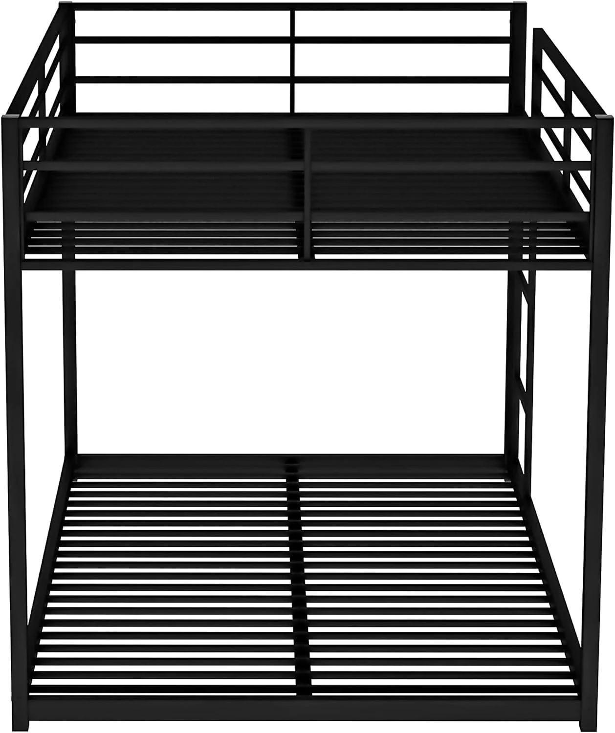 CoSoTower Full Over Full Metal Bunk Bed, Low Bunk Bed With Ladder, Black