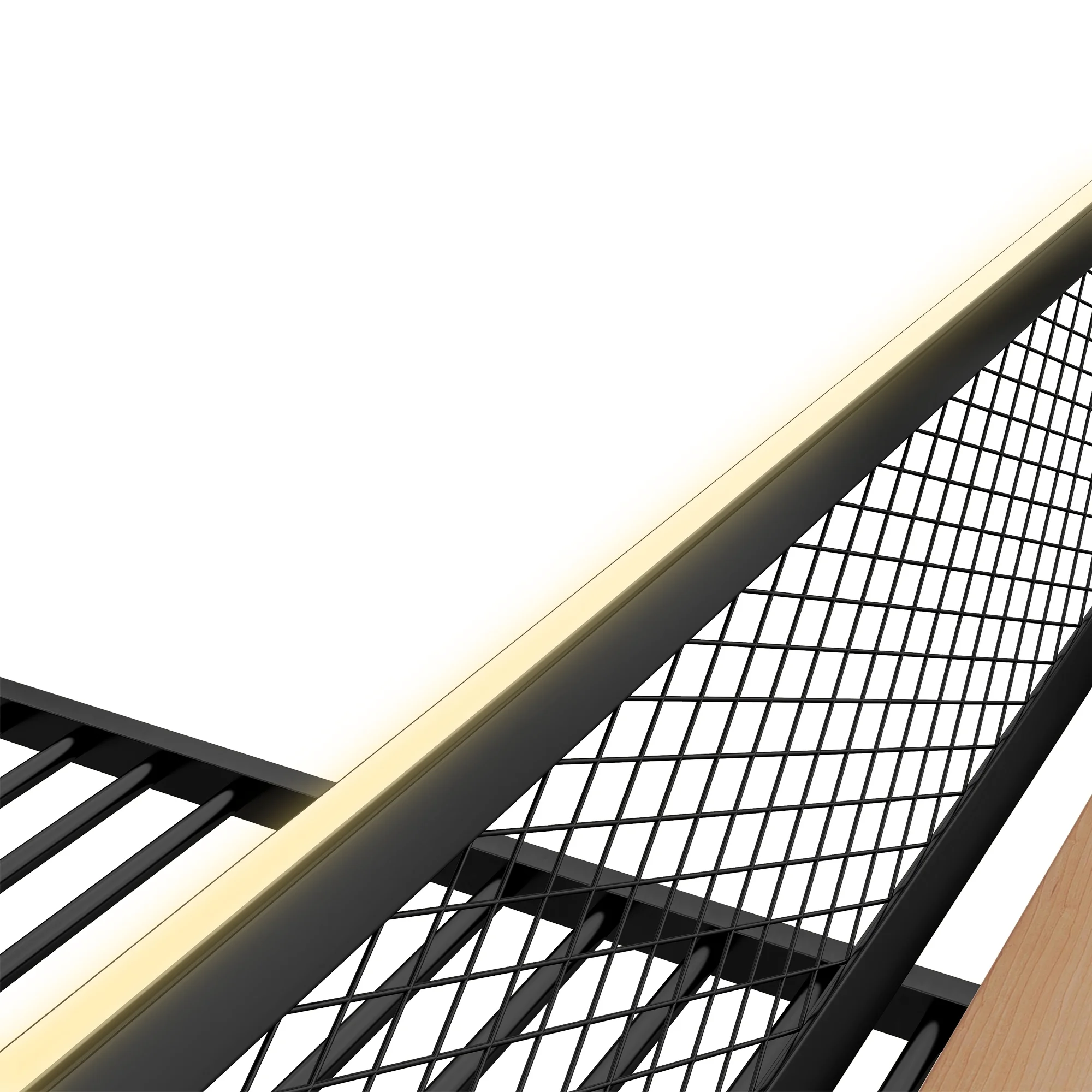 CoSoTower Full Size Metal Bunk Bed with Built-In Desk, Light and 2 Drawers, Black