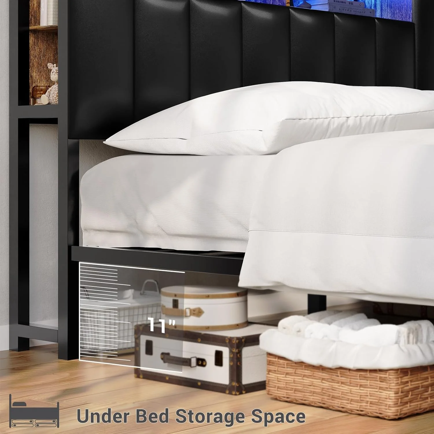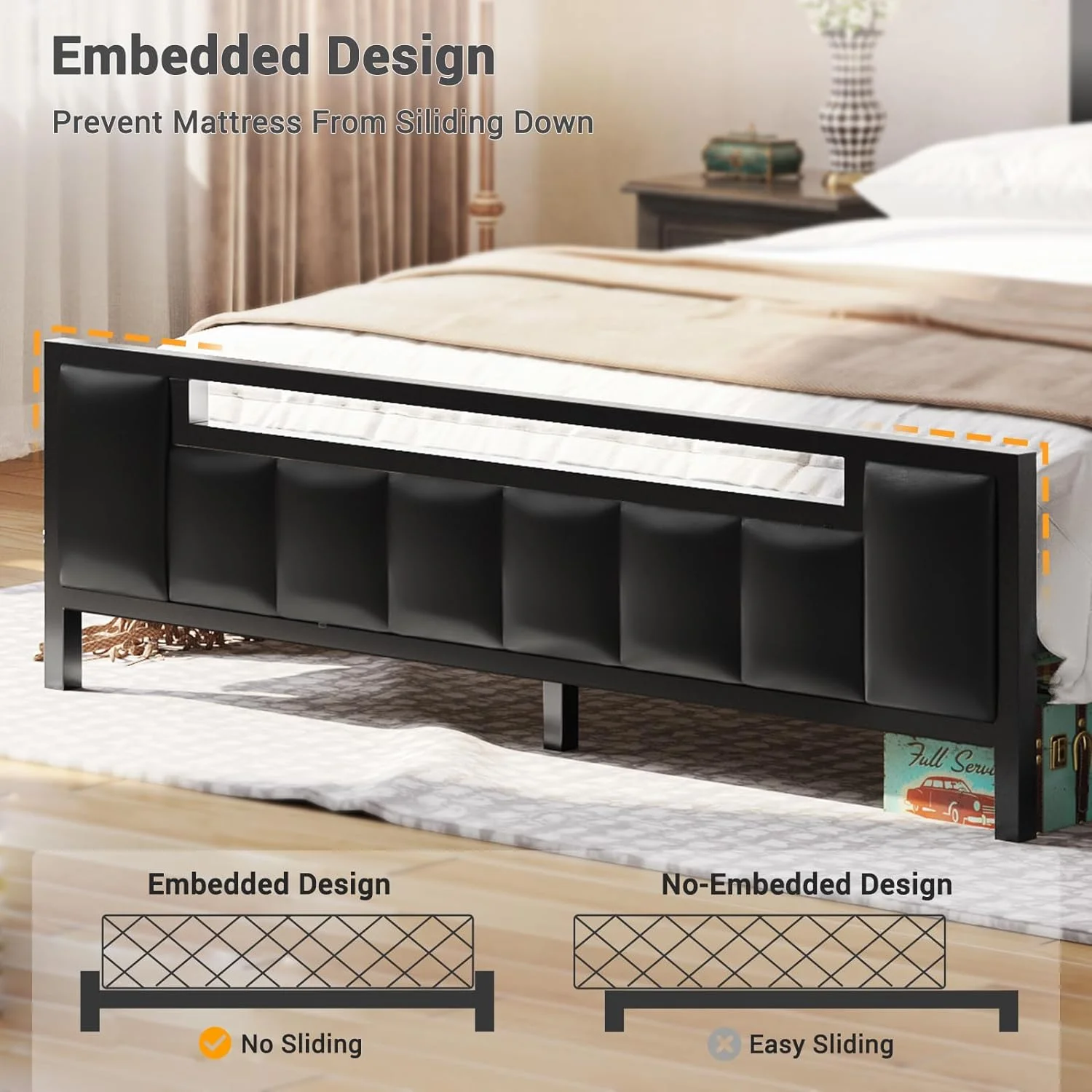 LivEditor Full Bed with Headboard,Footboard and a Nightstand Full - Grey