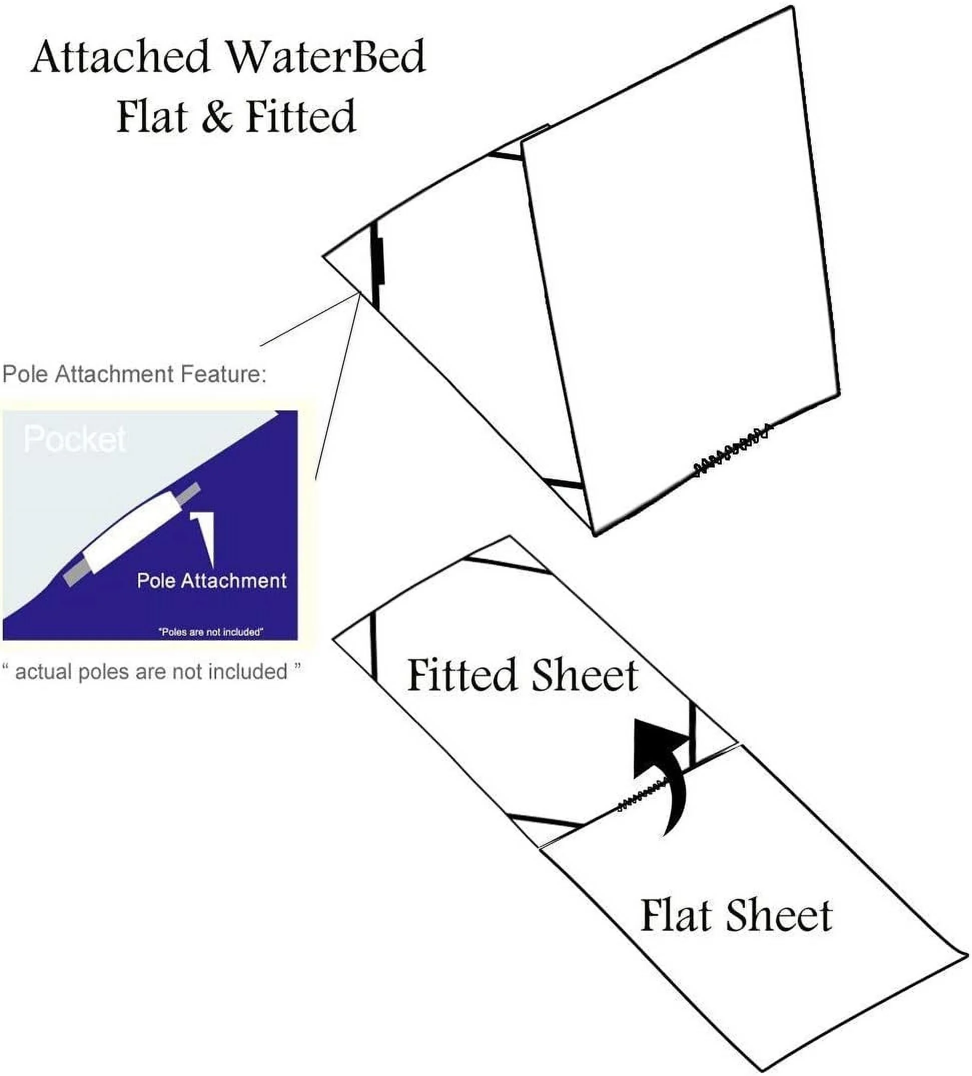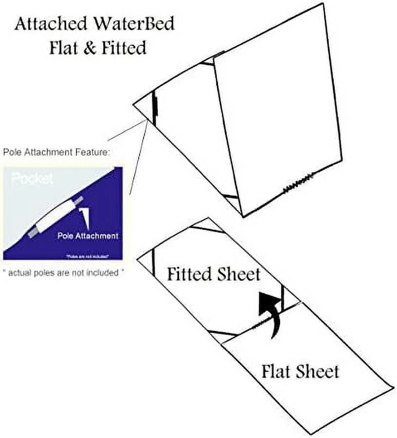 Solid White King Size Microfiber Attached Waterbed With Pole Attachment. Pole Not Included