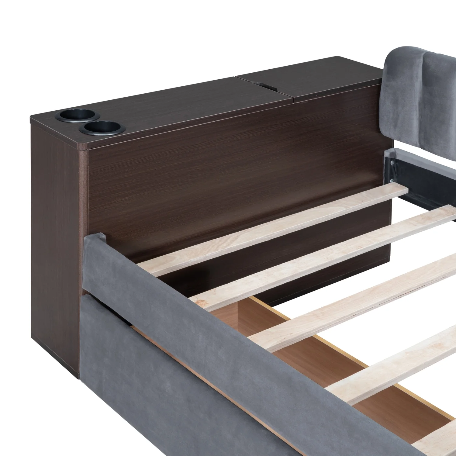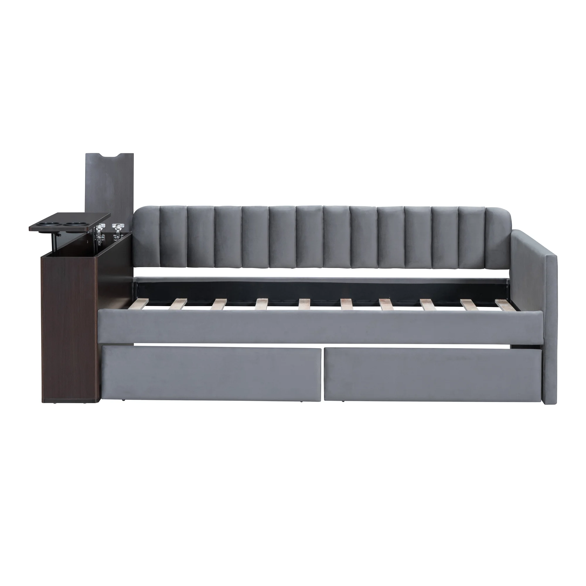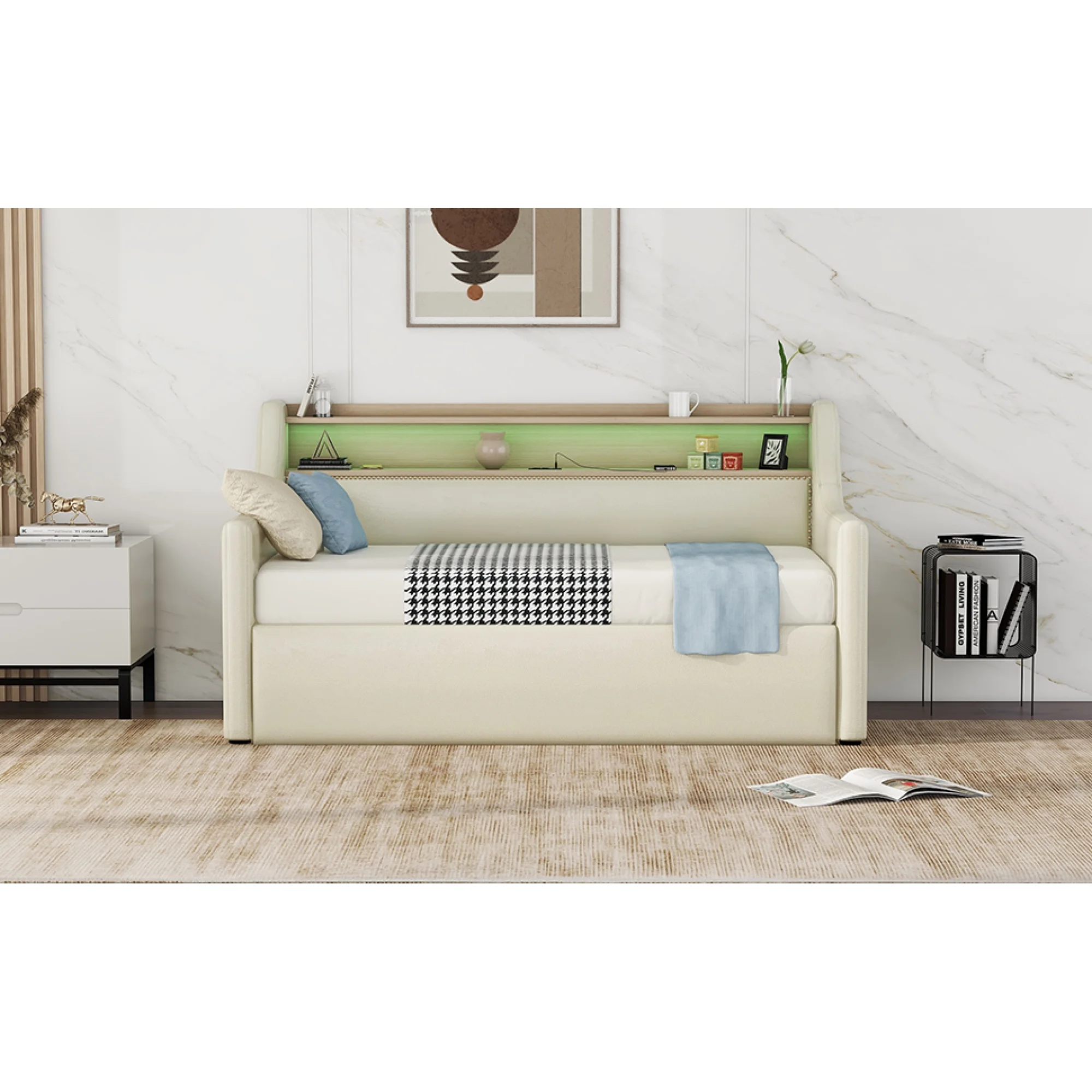 Twin Size Daybed with Hydraulic Storage, Upholstered Daybed with Lift Up Storage, Beige