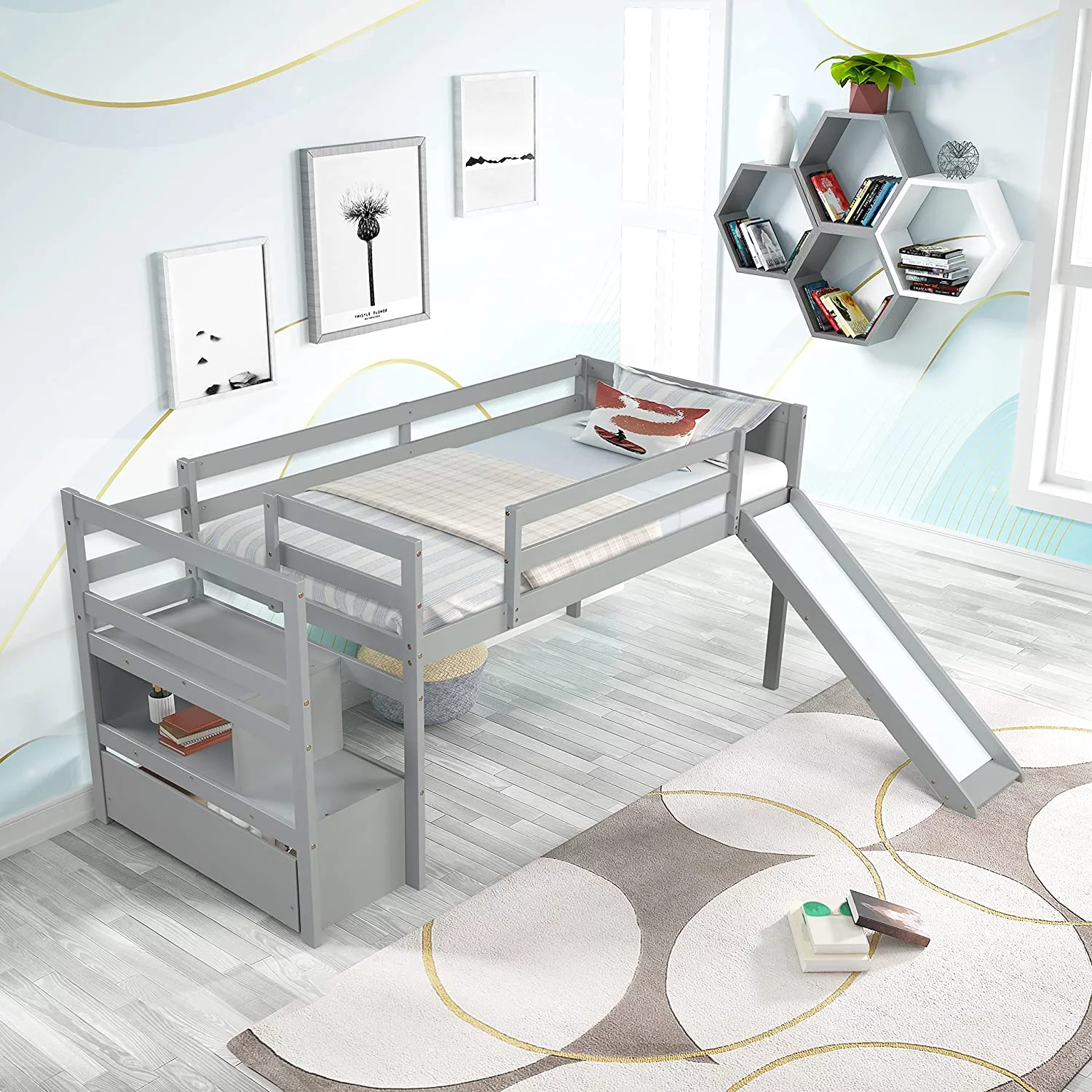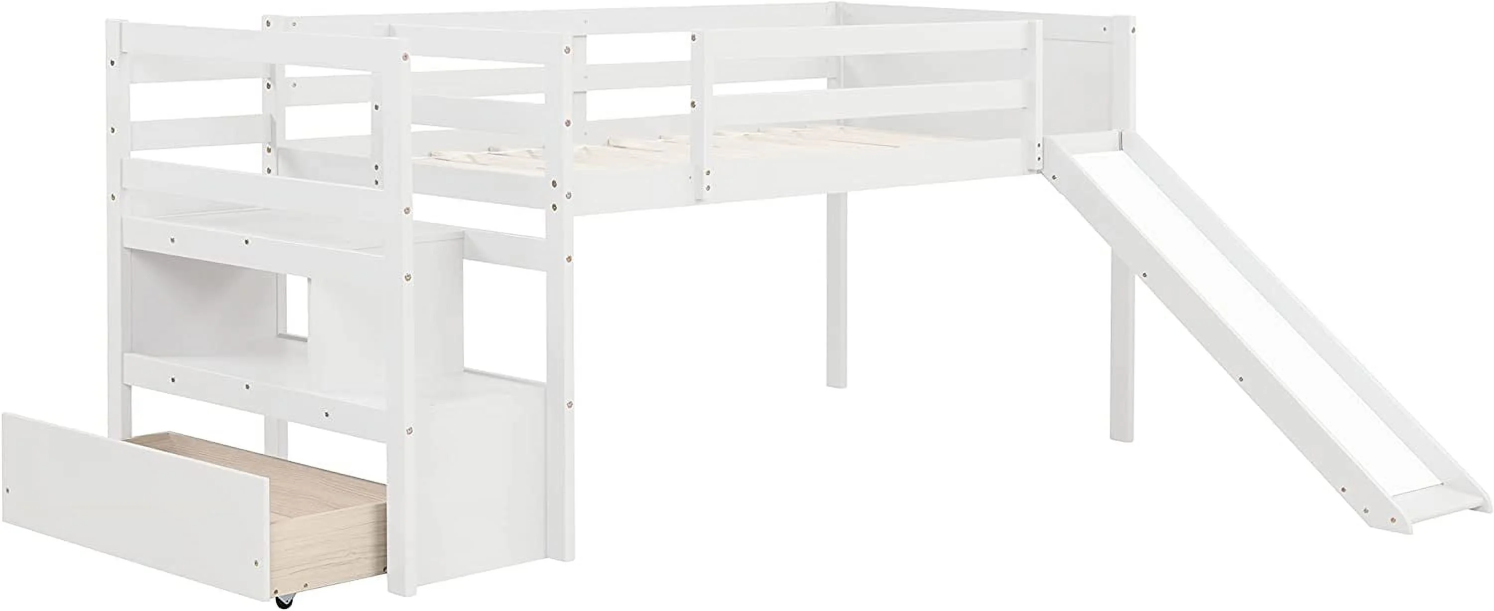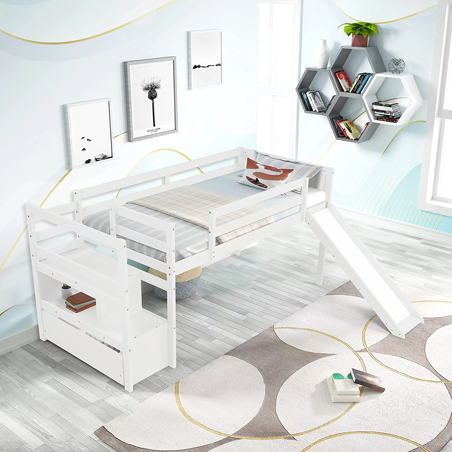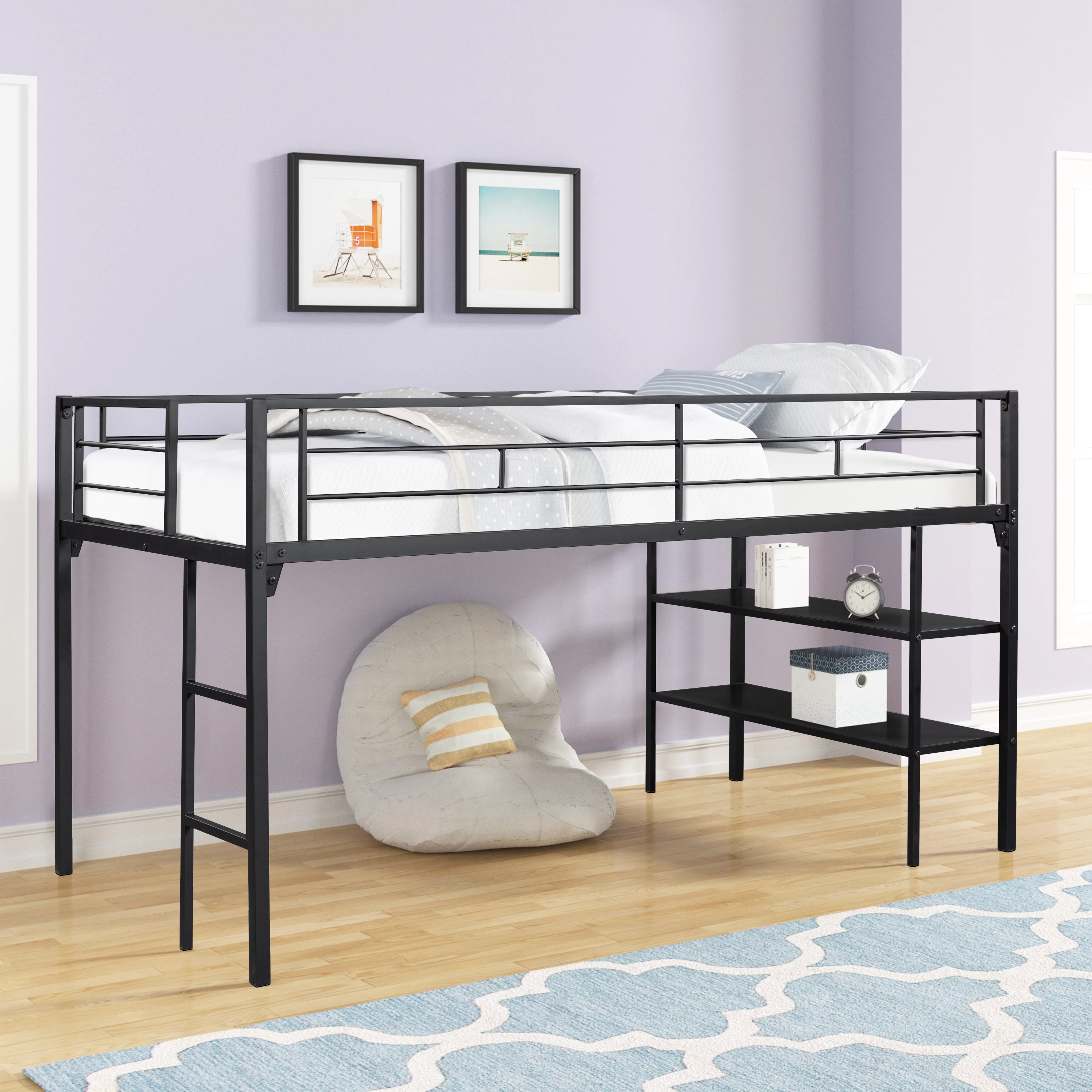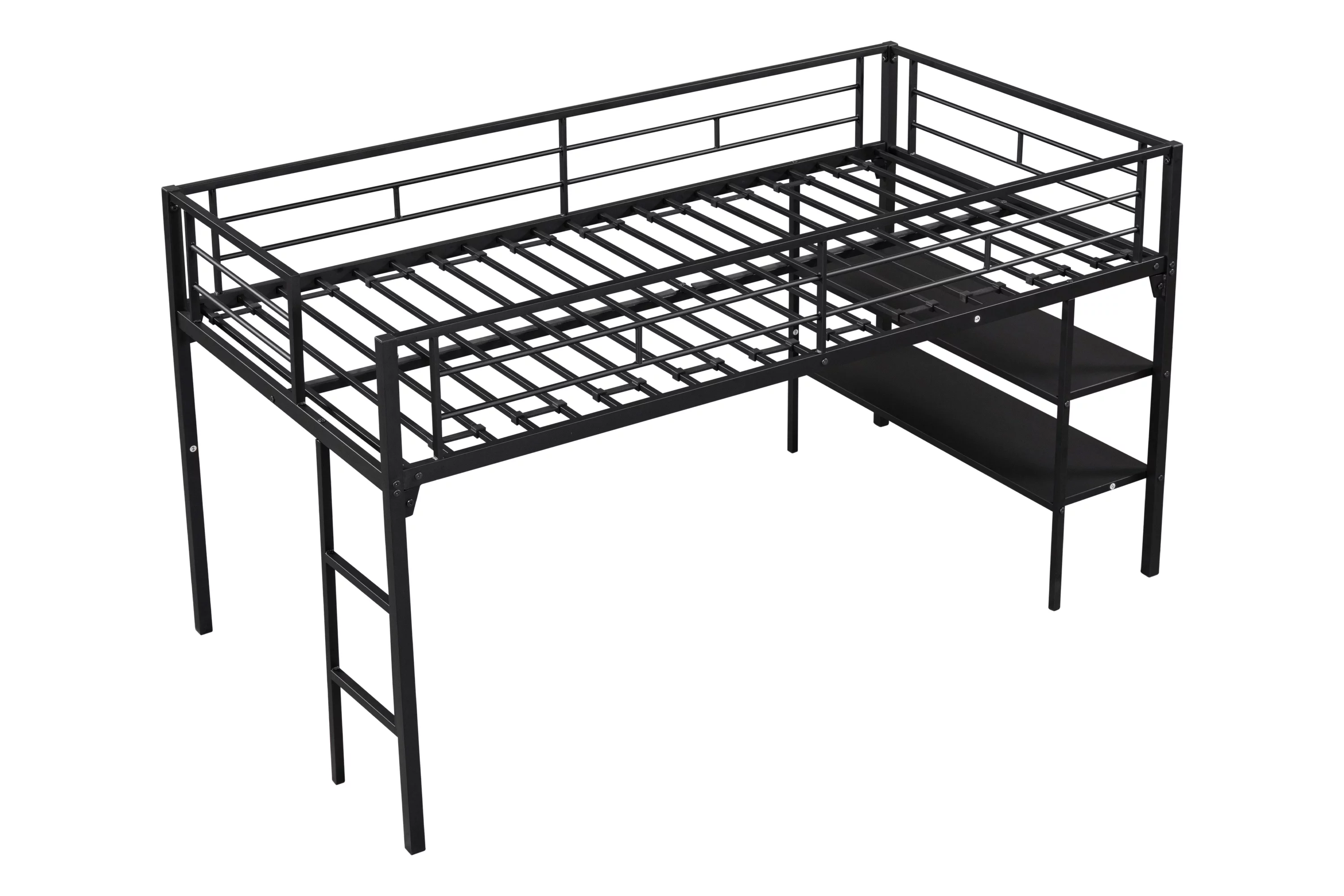 MYDENIMSKY Low Loft bed with storage shelves Under Bed Storage Mattress