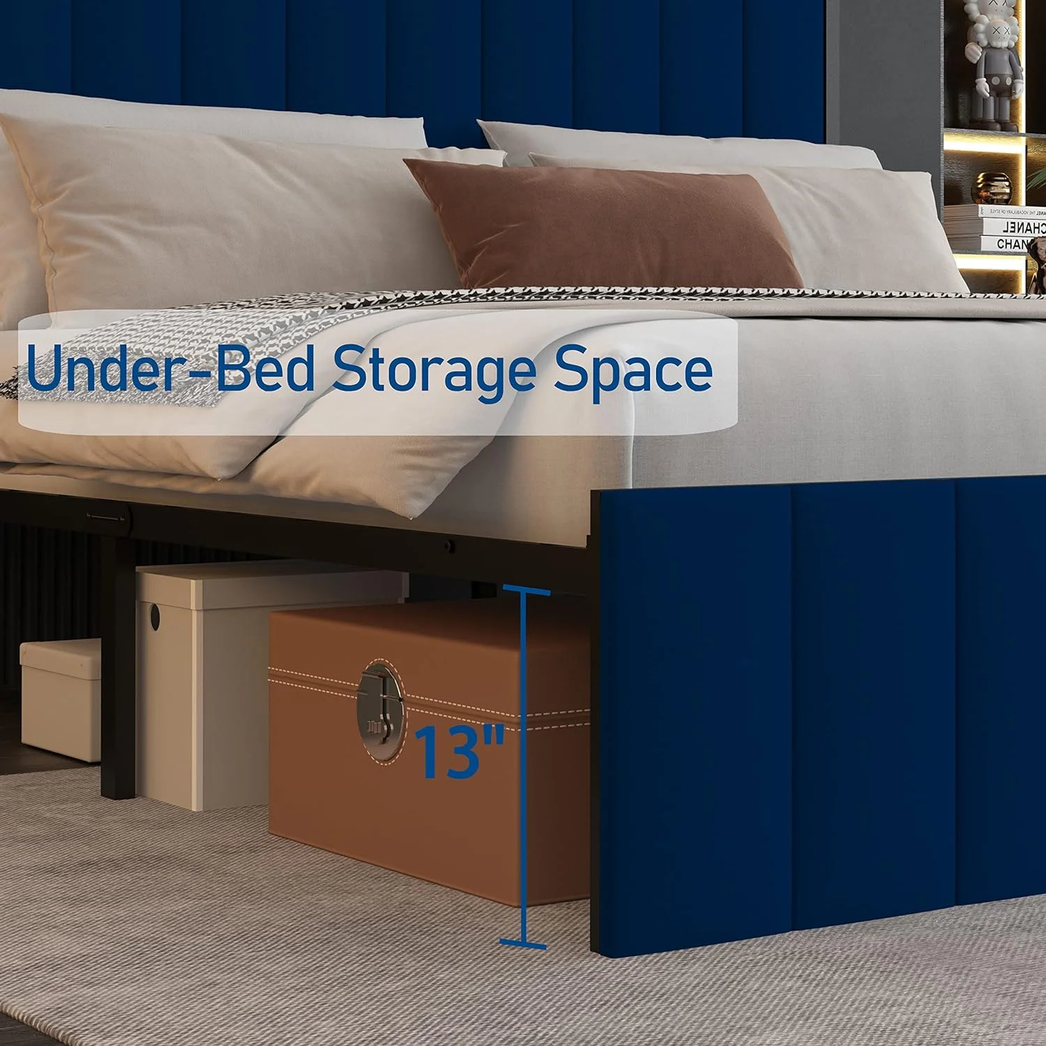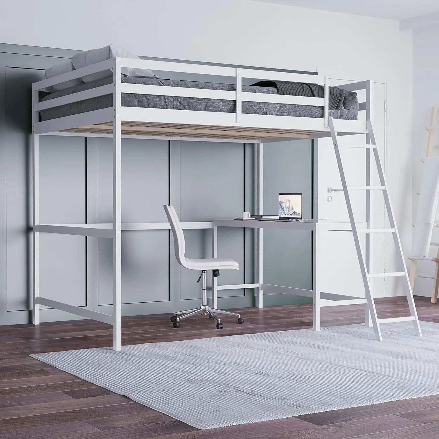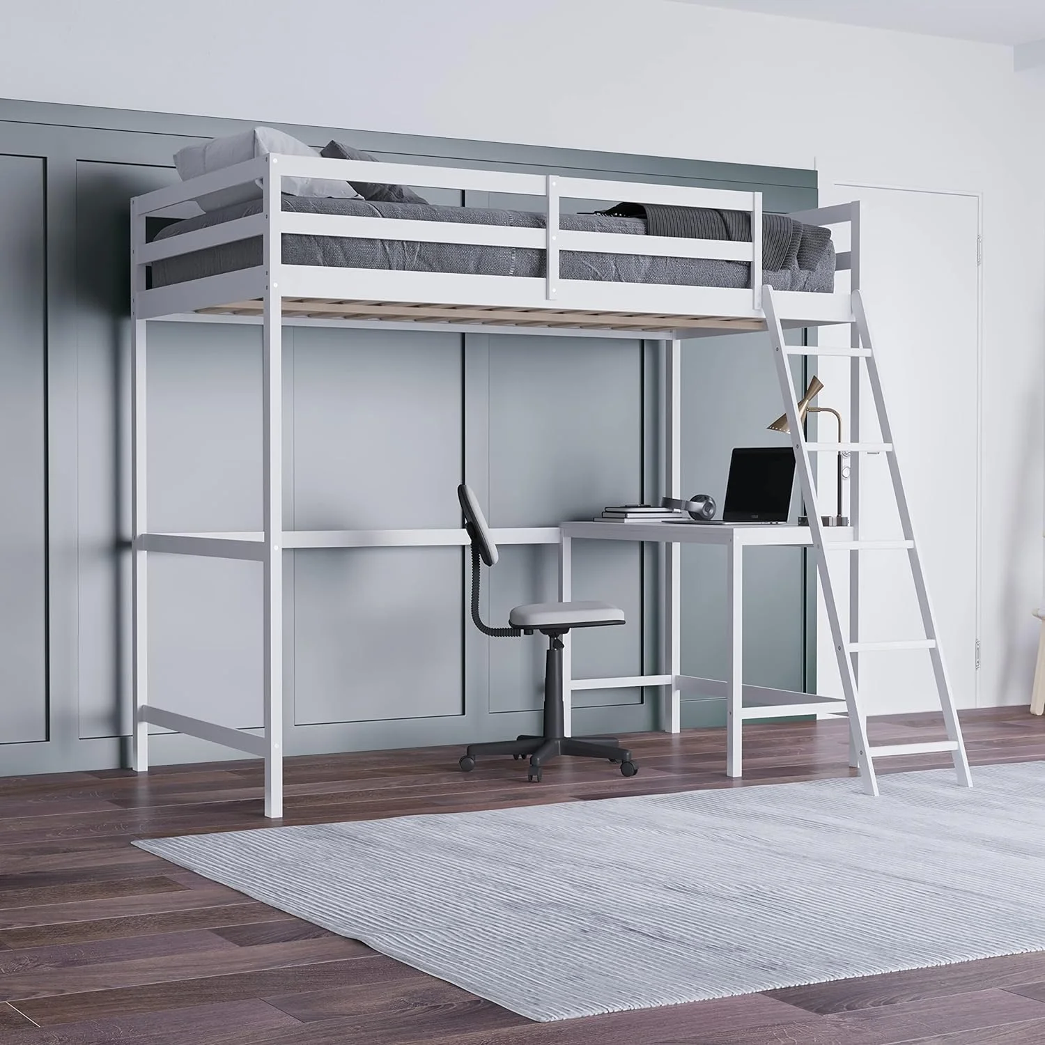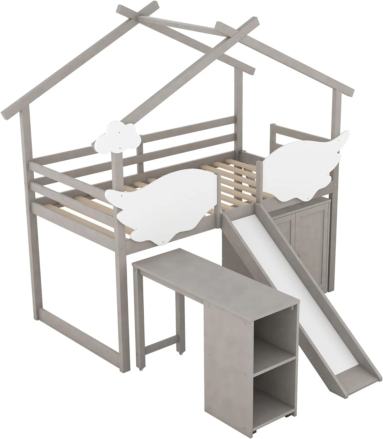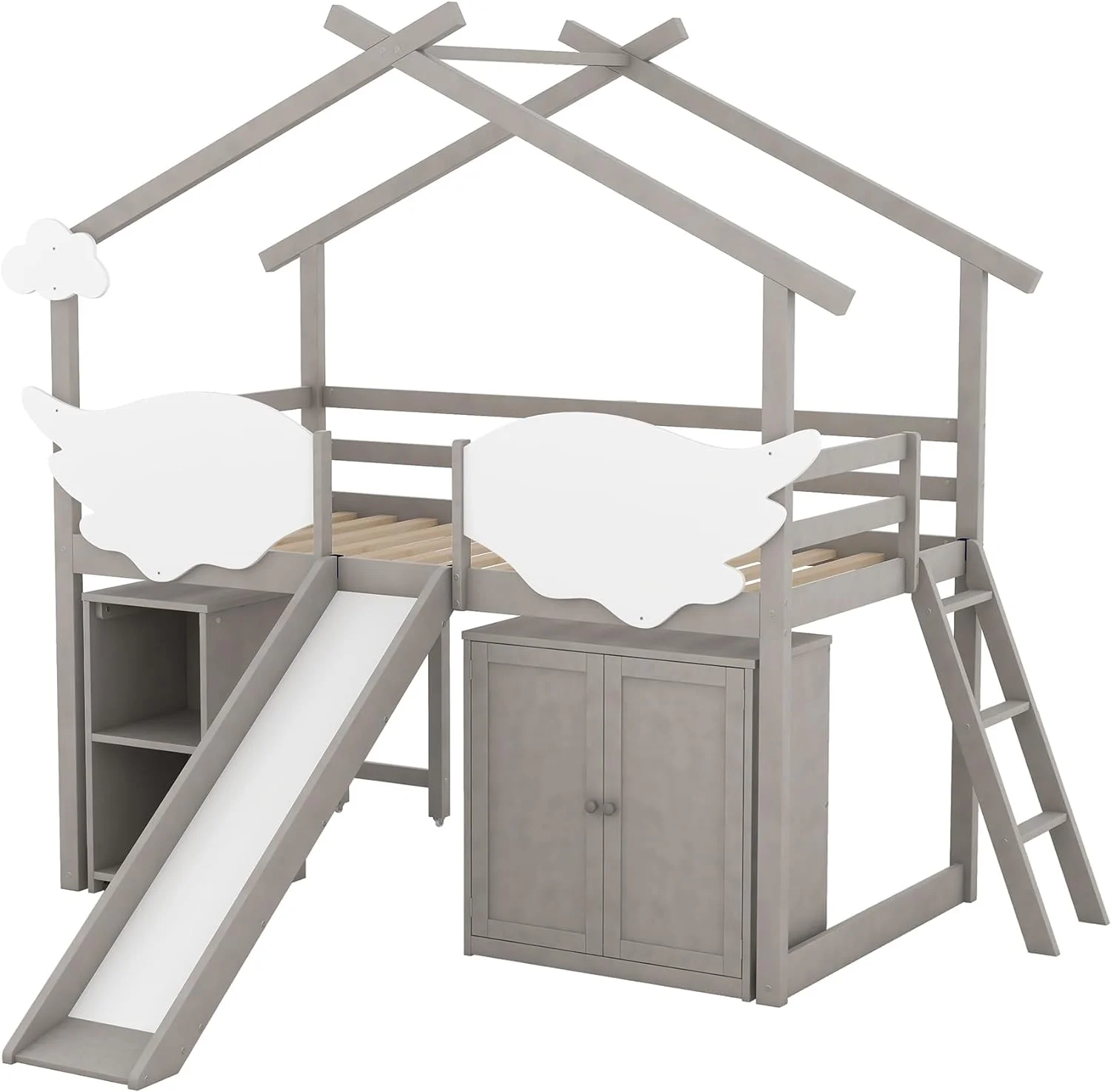 MYDENIMSKY Low Loft bed with storage shelves Under Bed Storage Mattress