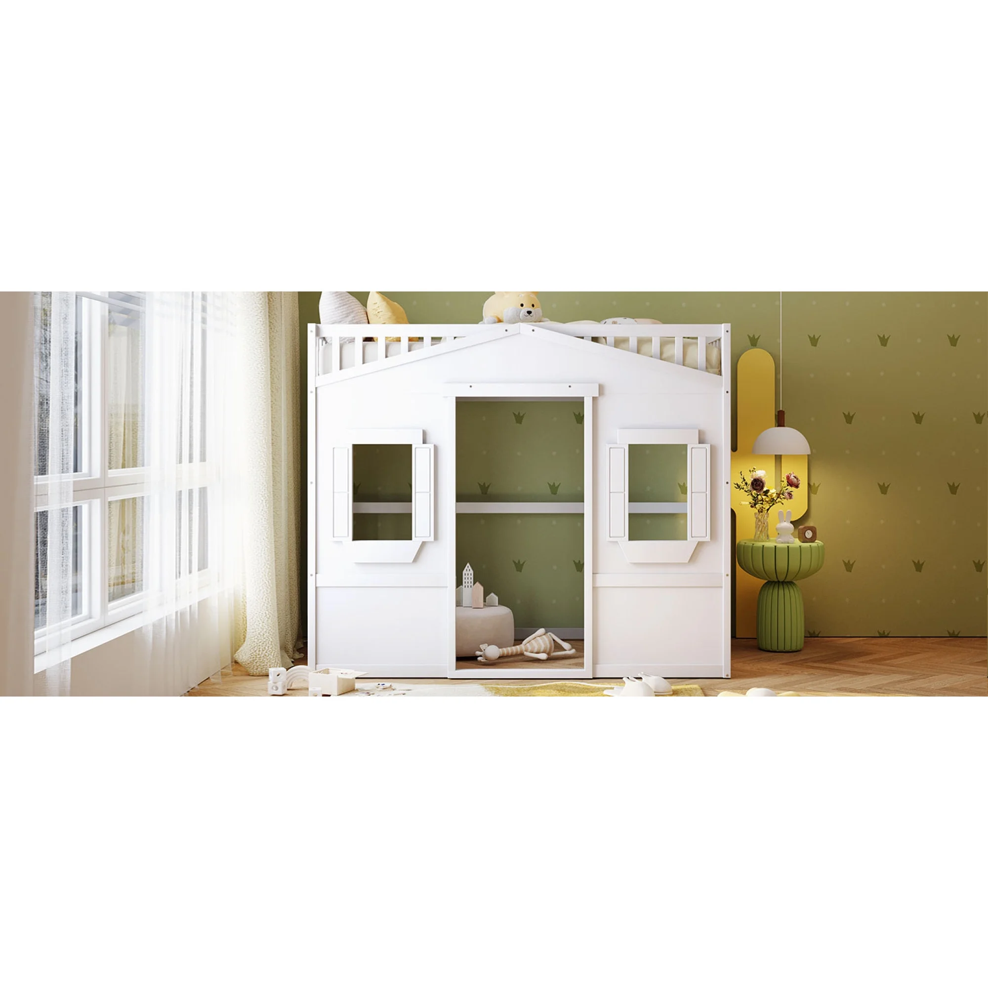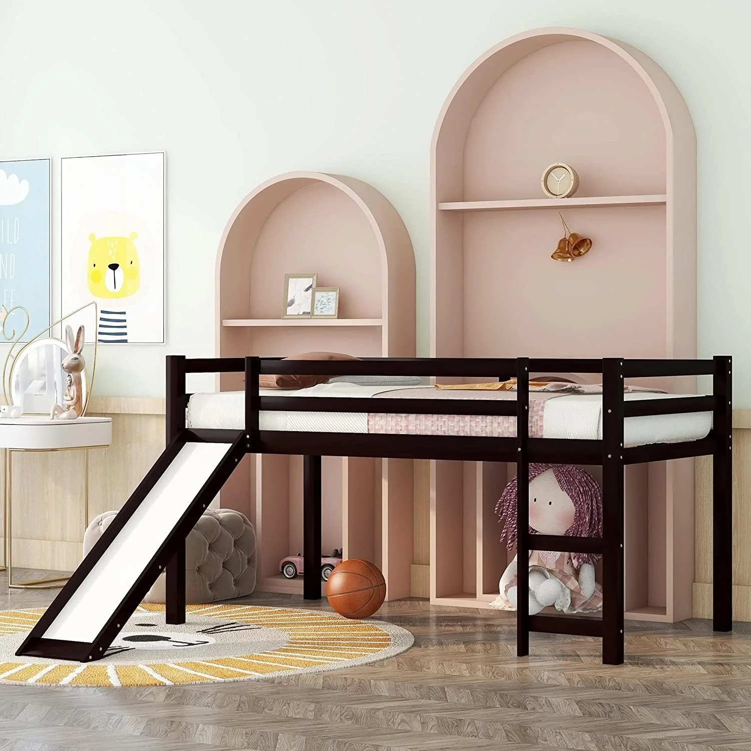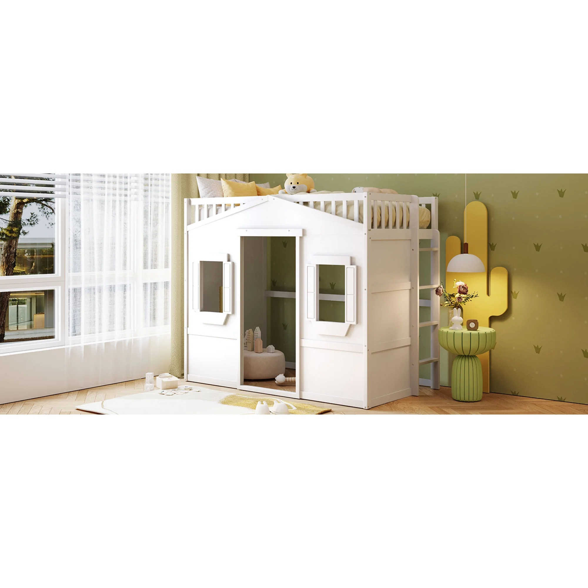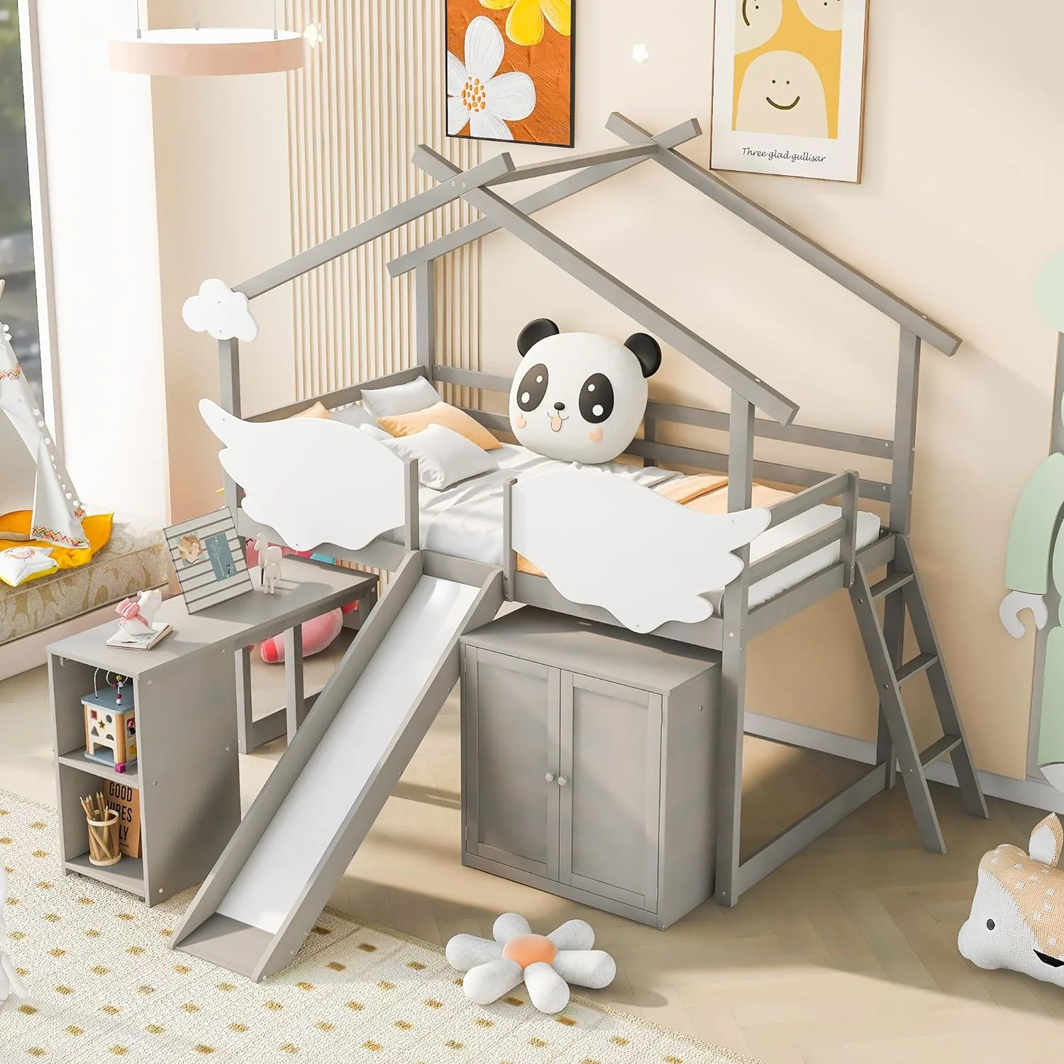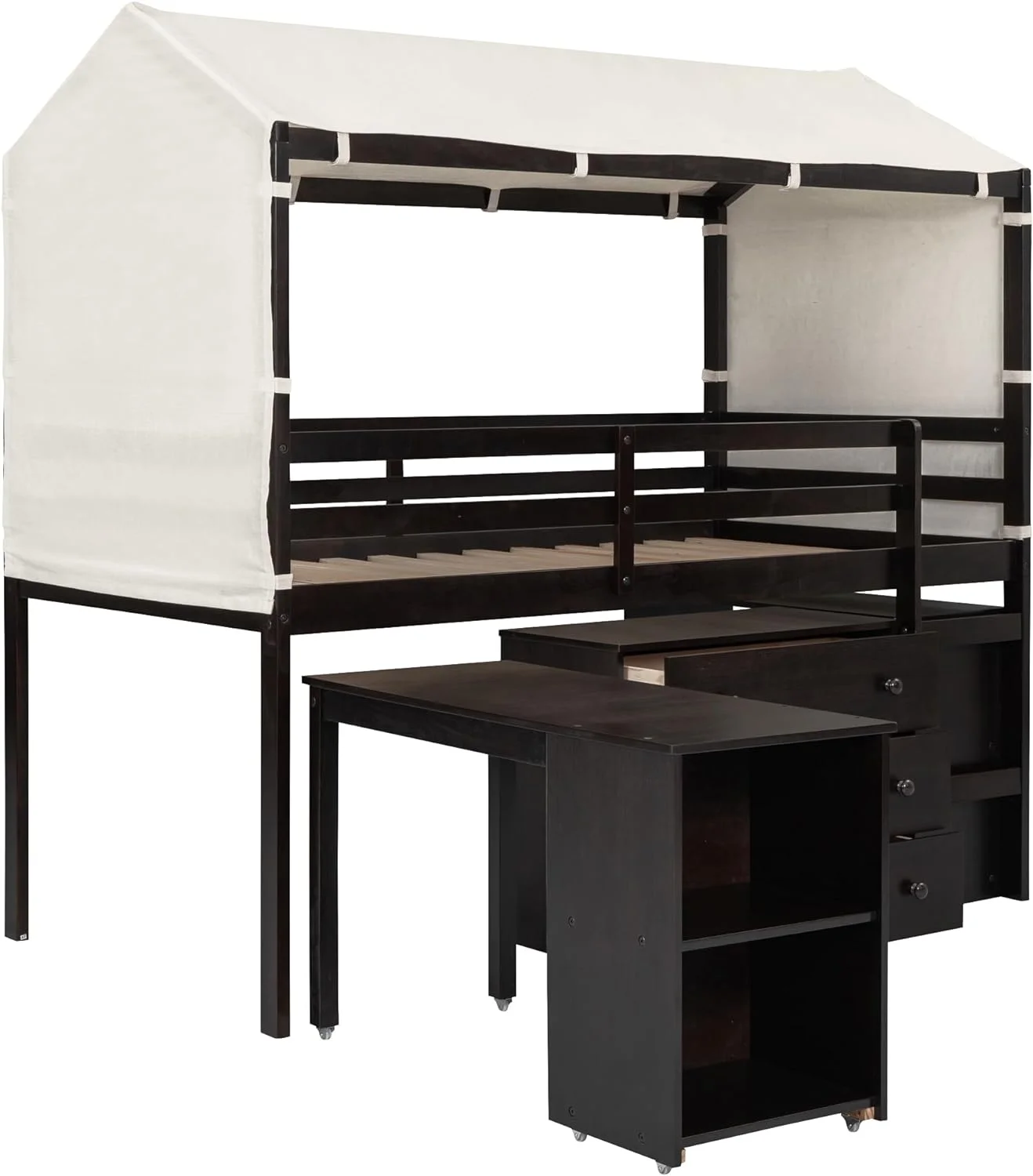 MYDENIMSKY Low Loft bed with storage shelves Under Bed Storage Mattress