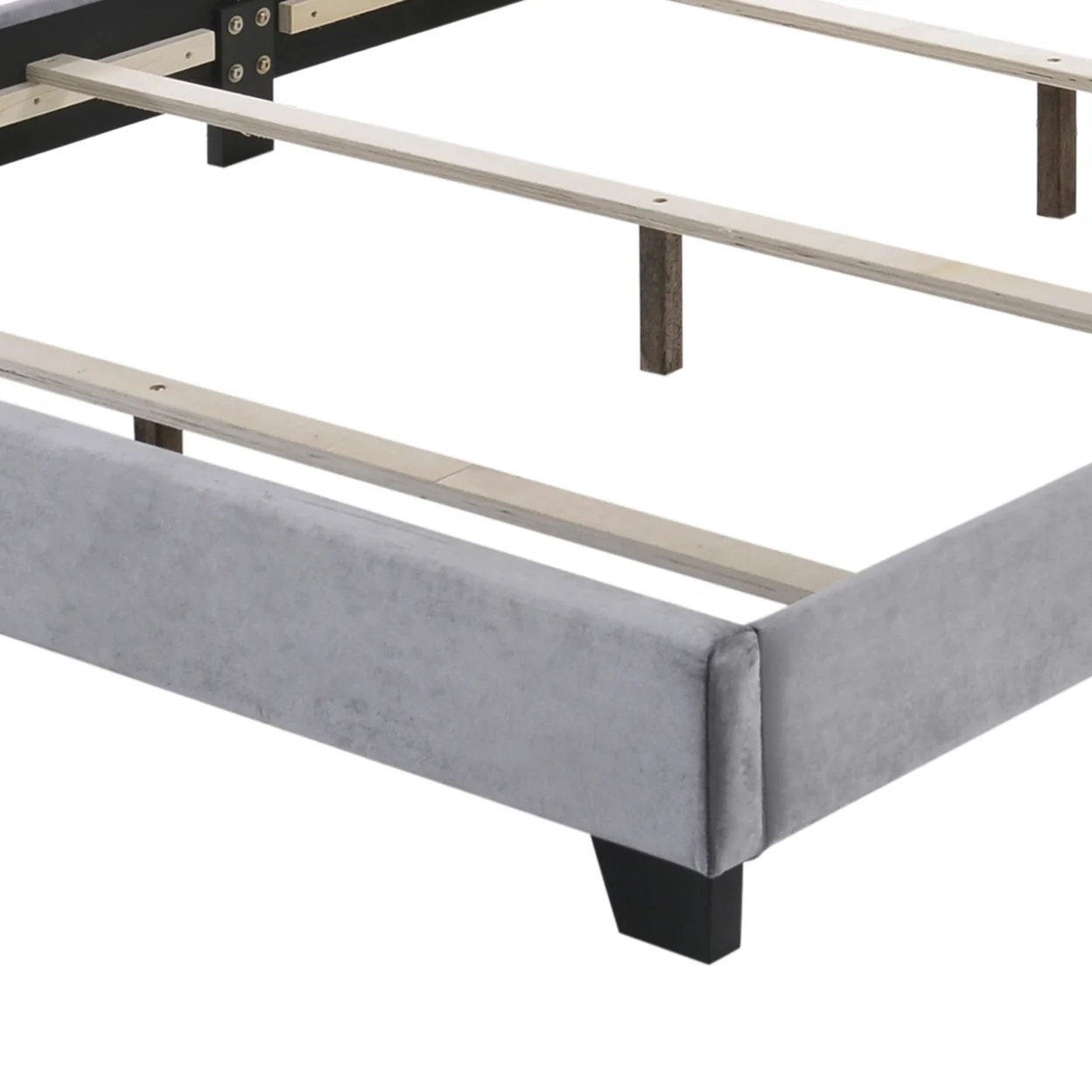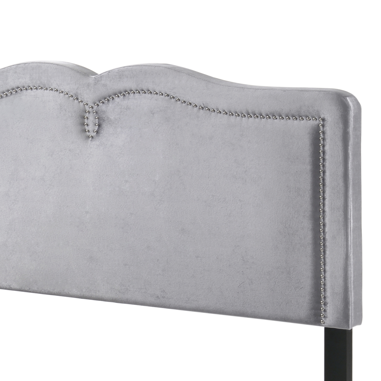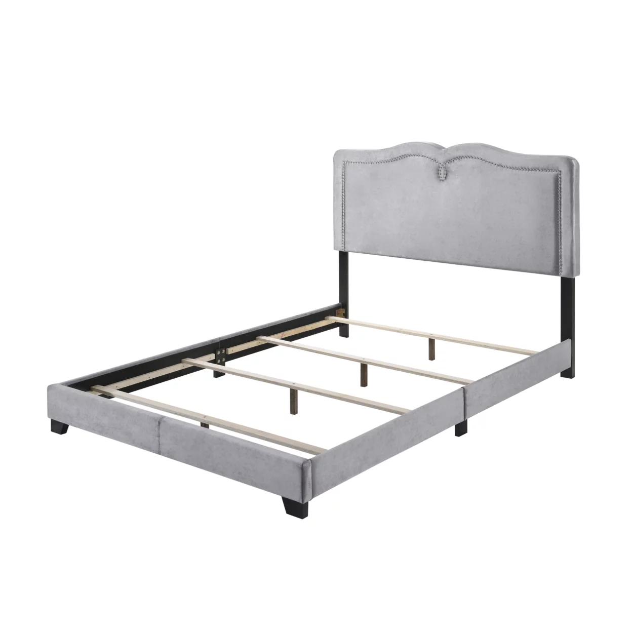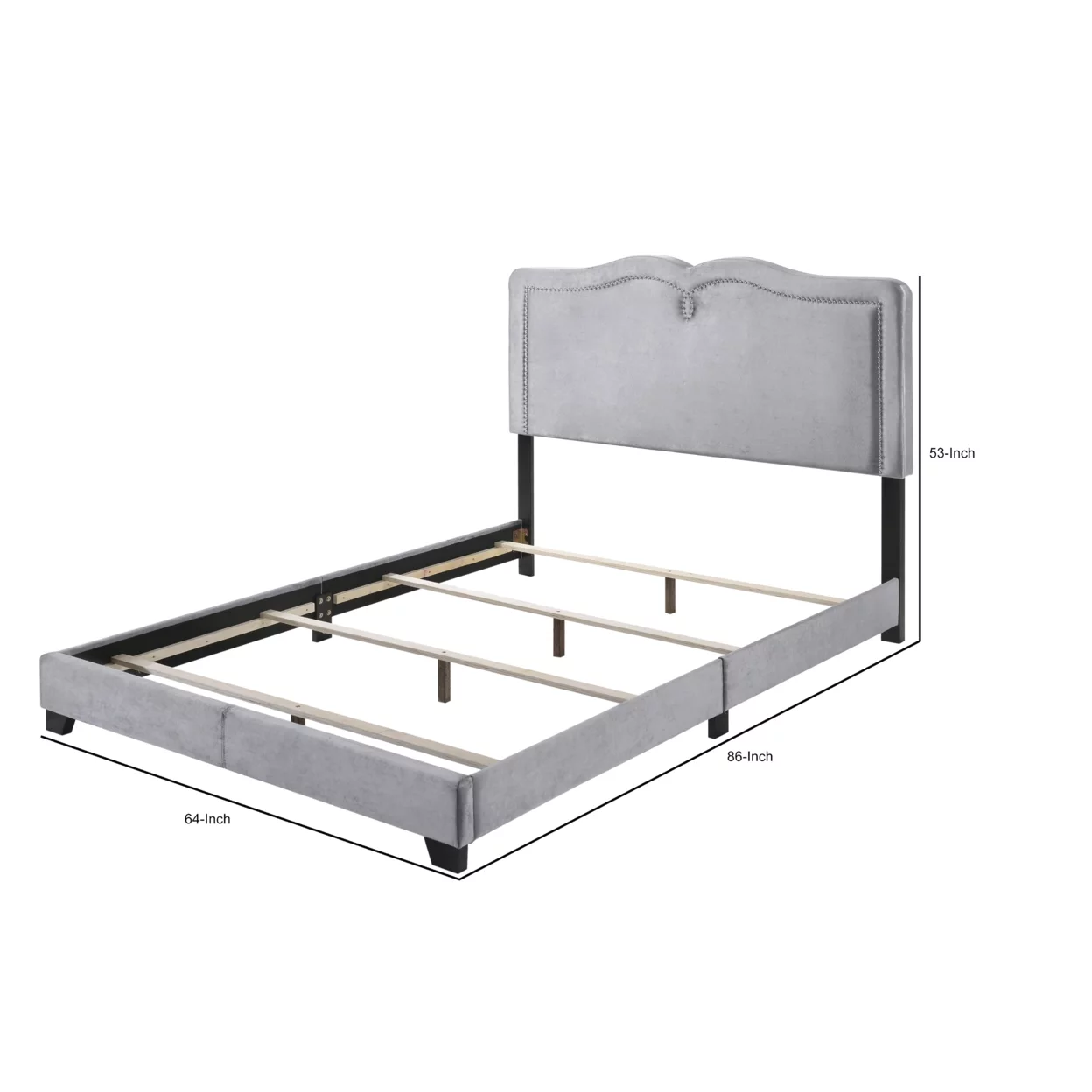 Velvet Upholstered Wooden Queen Size Bed with Nail head Trims, Gray- Saltoro Sherpi