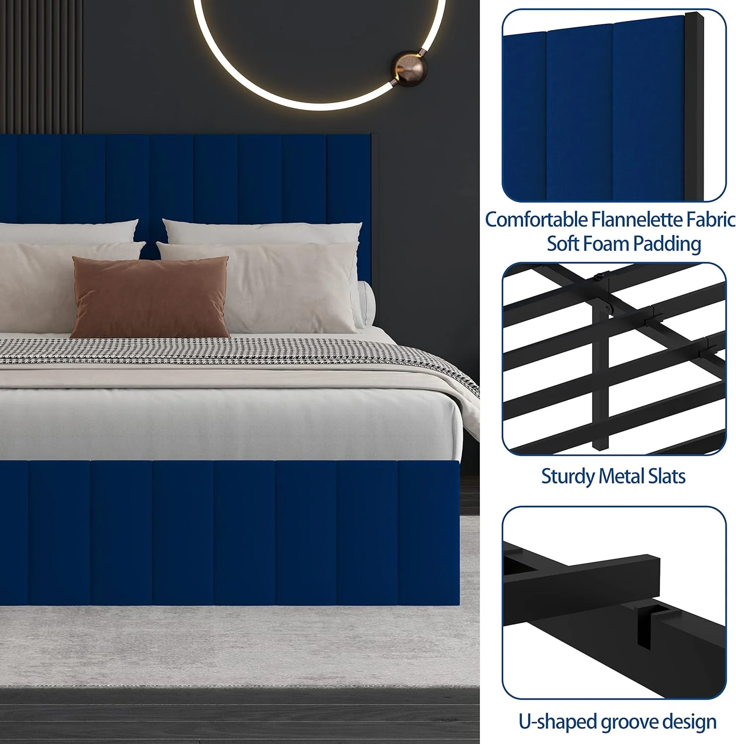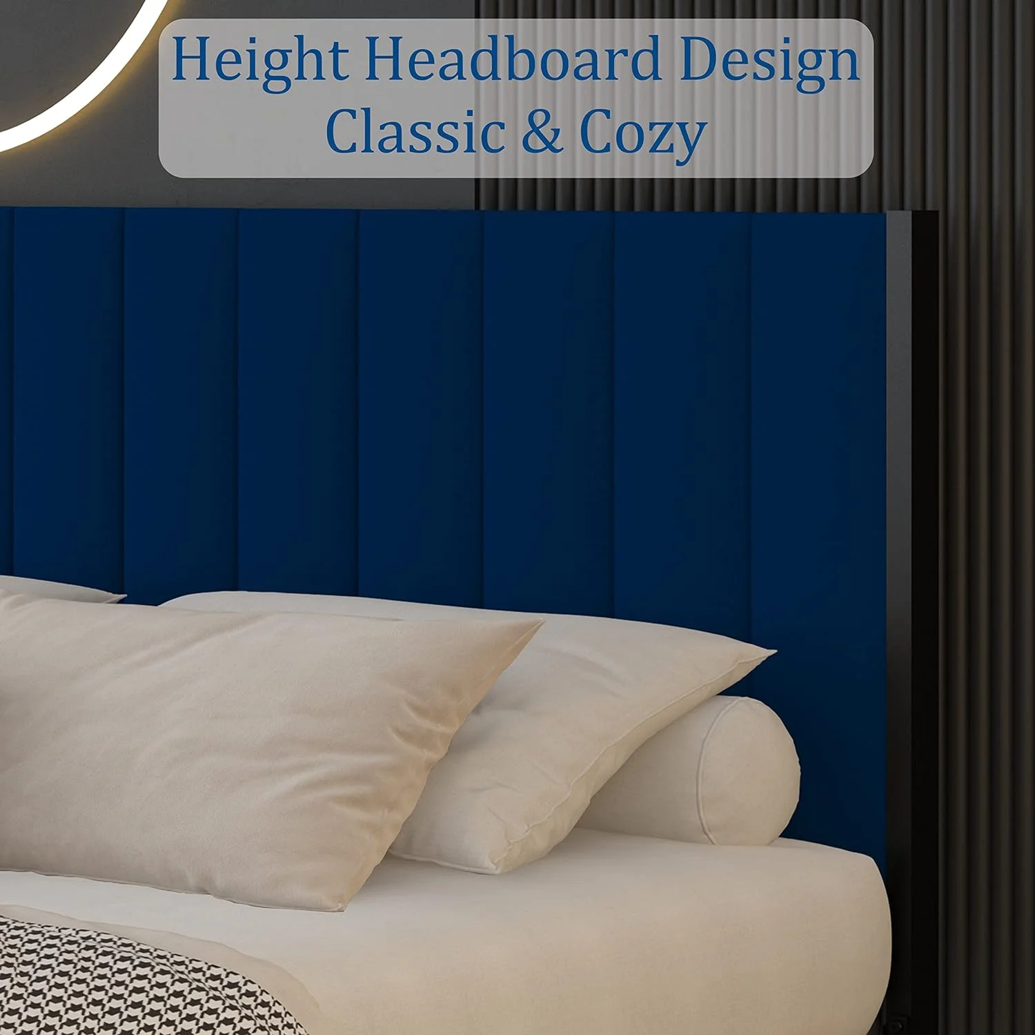 Modern Champagne Faux Finish 1pc Twin Size Fabric Upholstery LED Backlit Headboard Panel Bed Bedroom Furniture