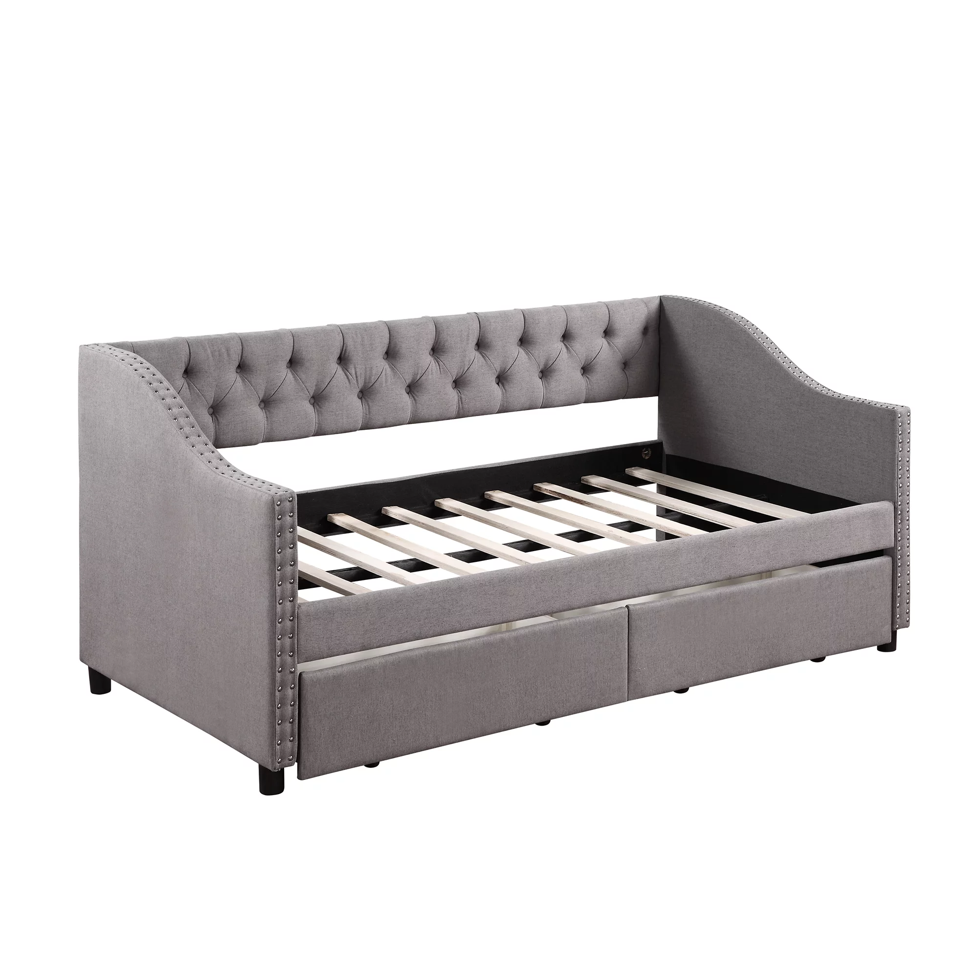 CoSoTower Upholstered Daybed with 2 Storage Drawers Twin Size Sofa Bed Frame No Box Spring Needed, Linen Fabric, Pink
