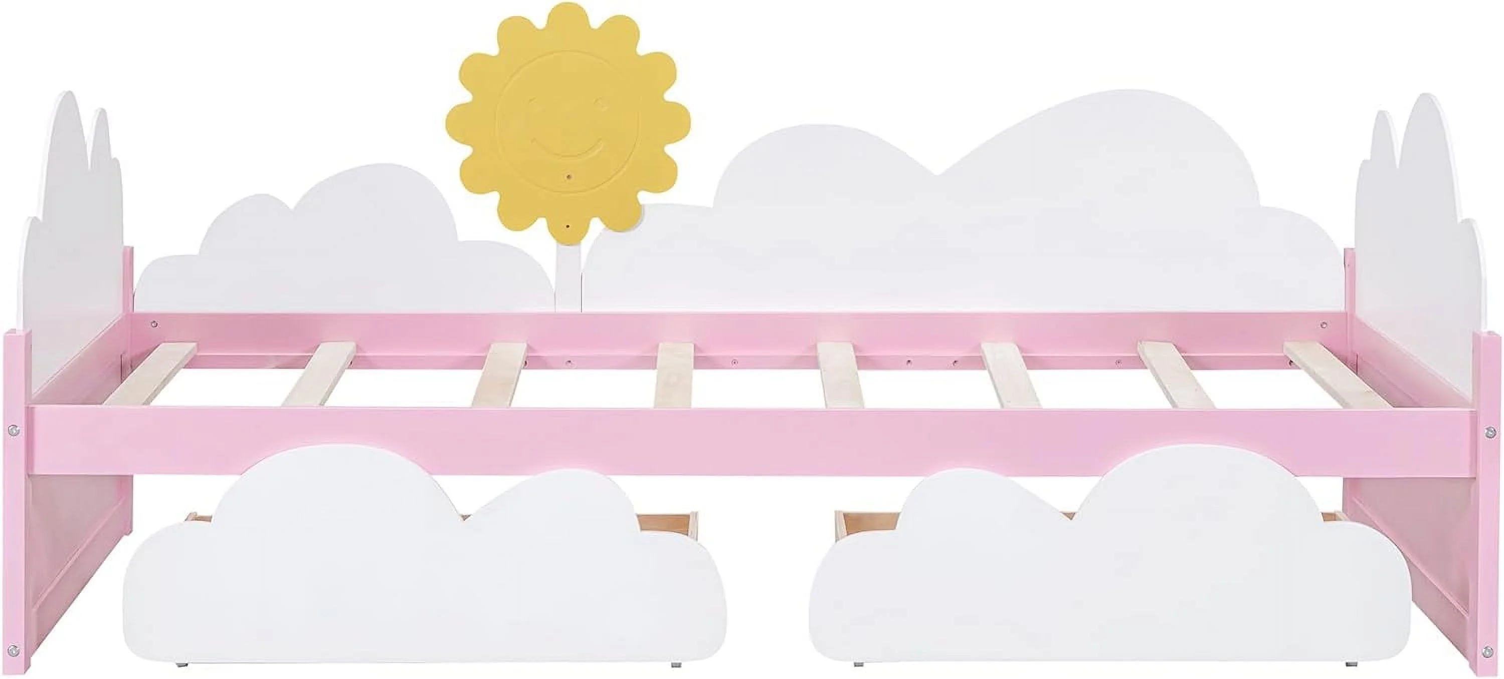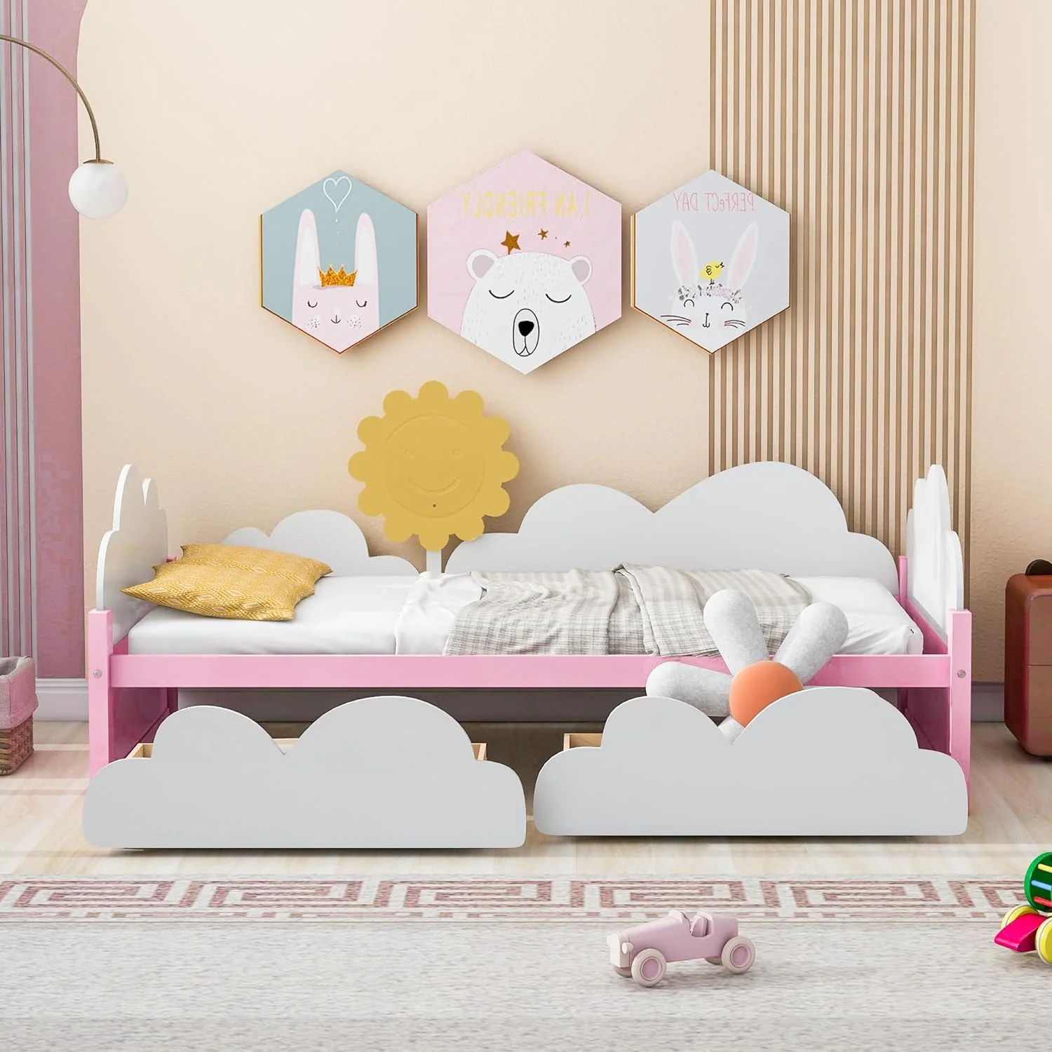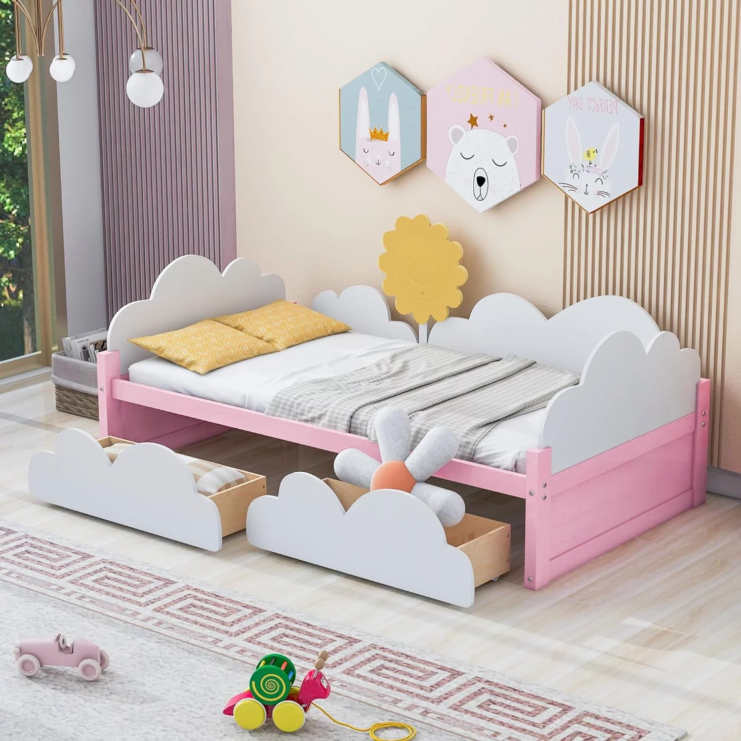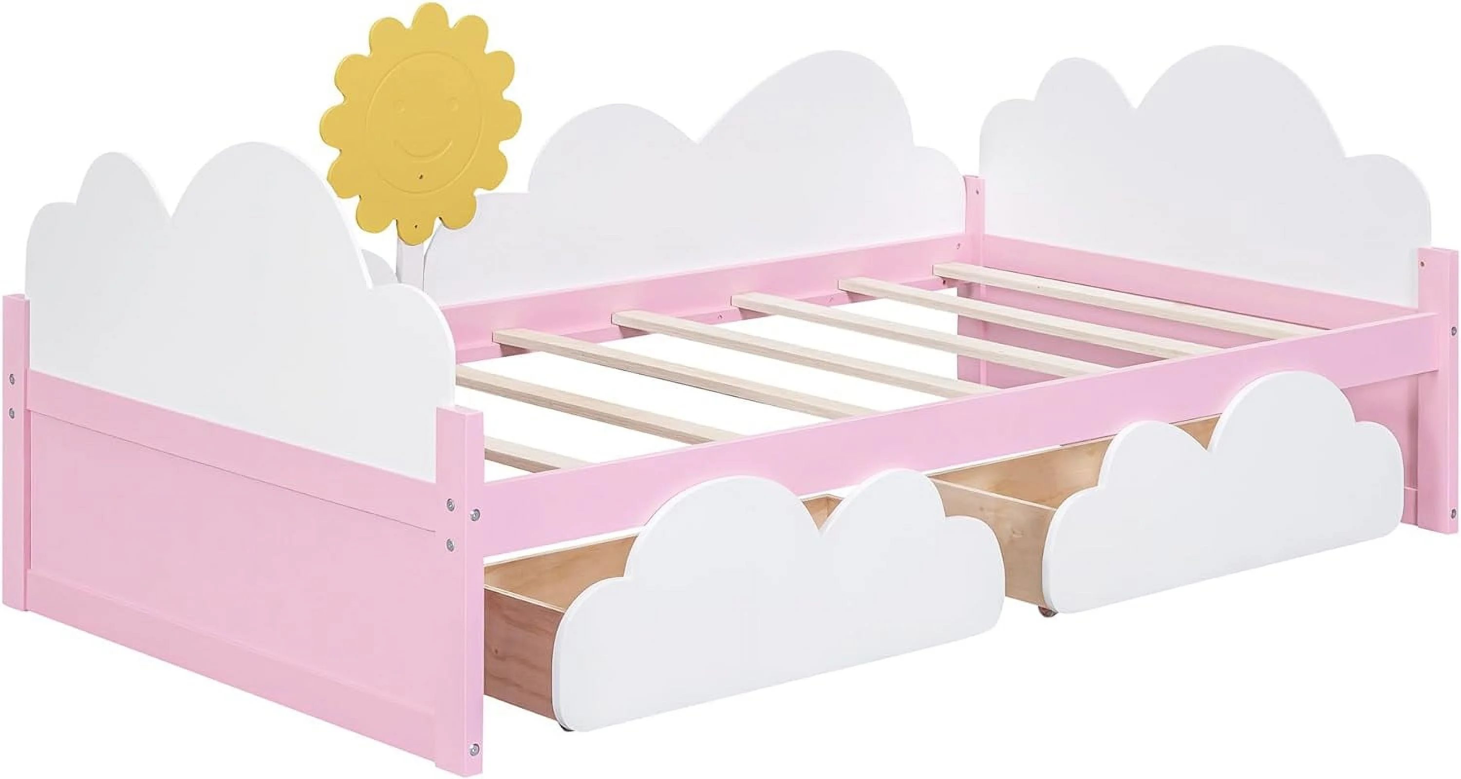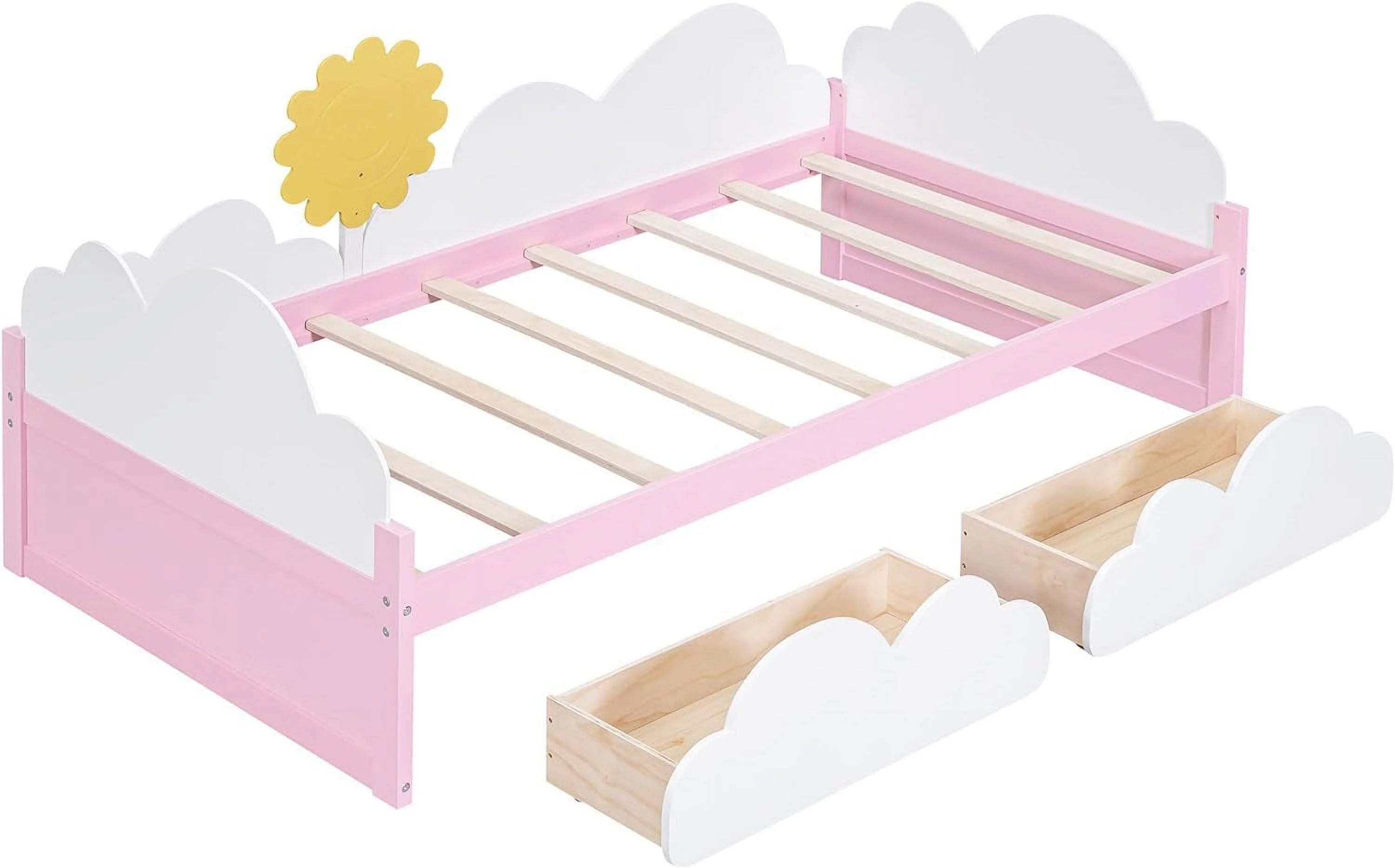 Dawn Whisper Twin size Daybed with Two Drawers, Wood Slat Support, Gray
