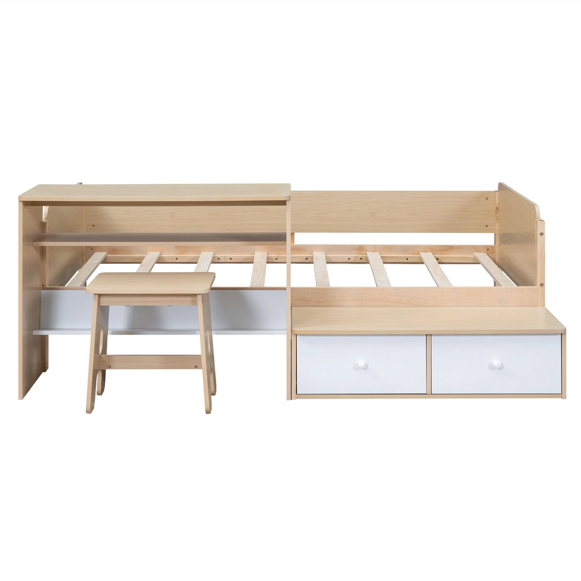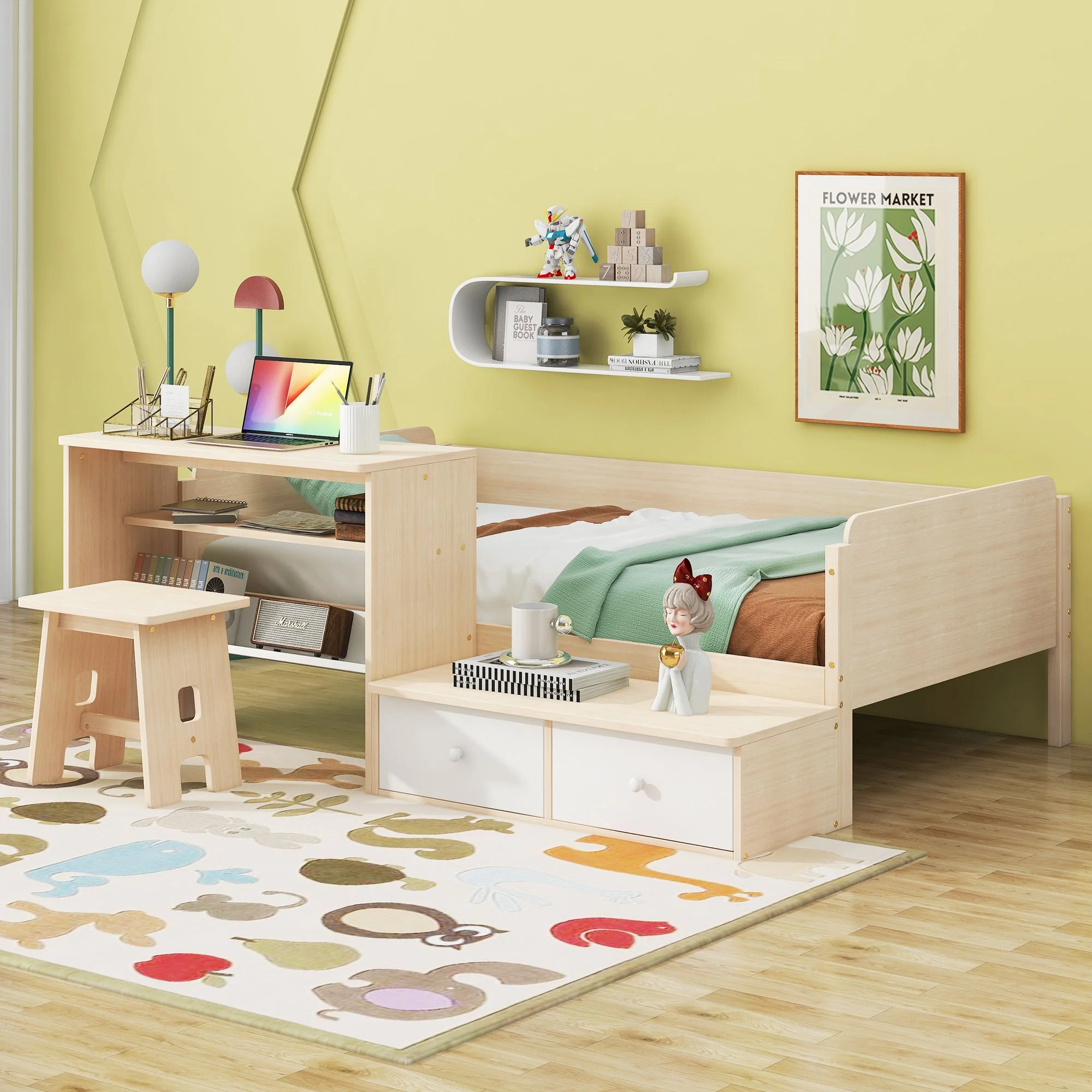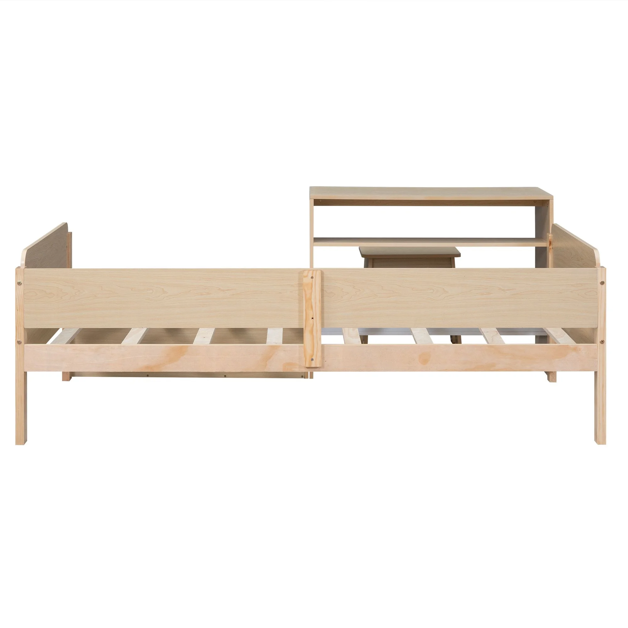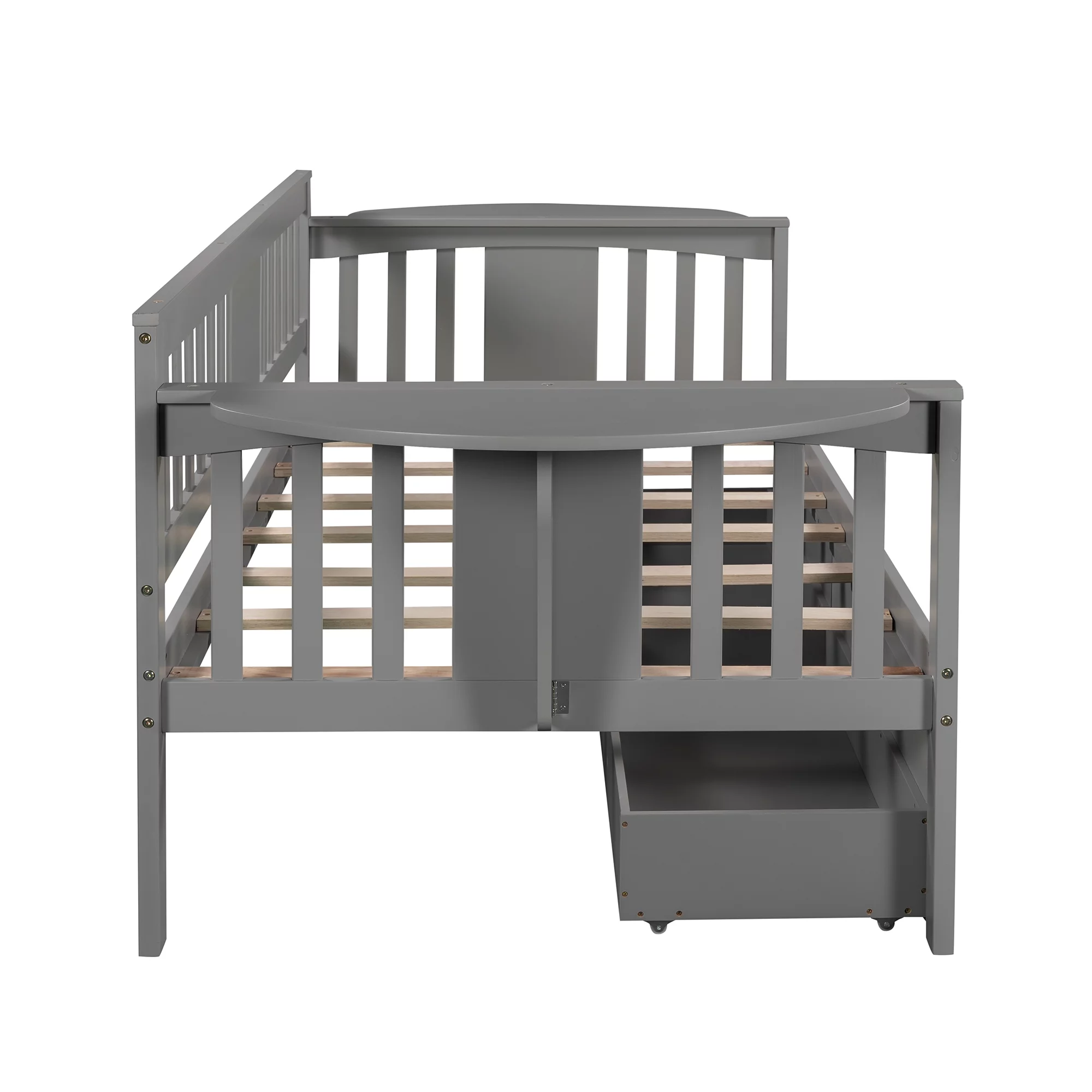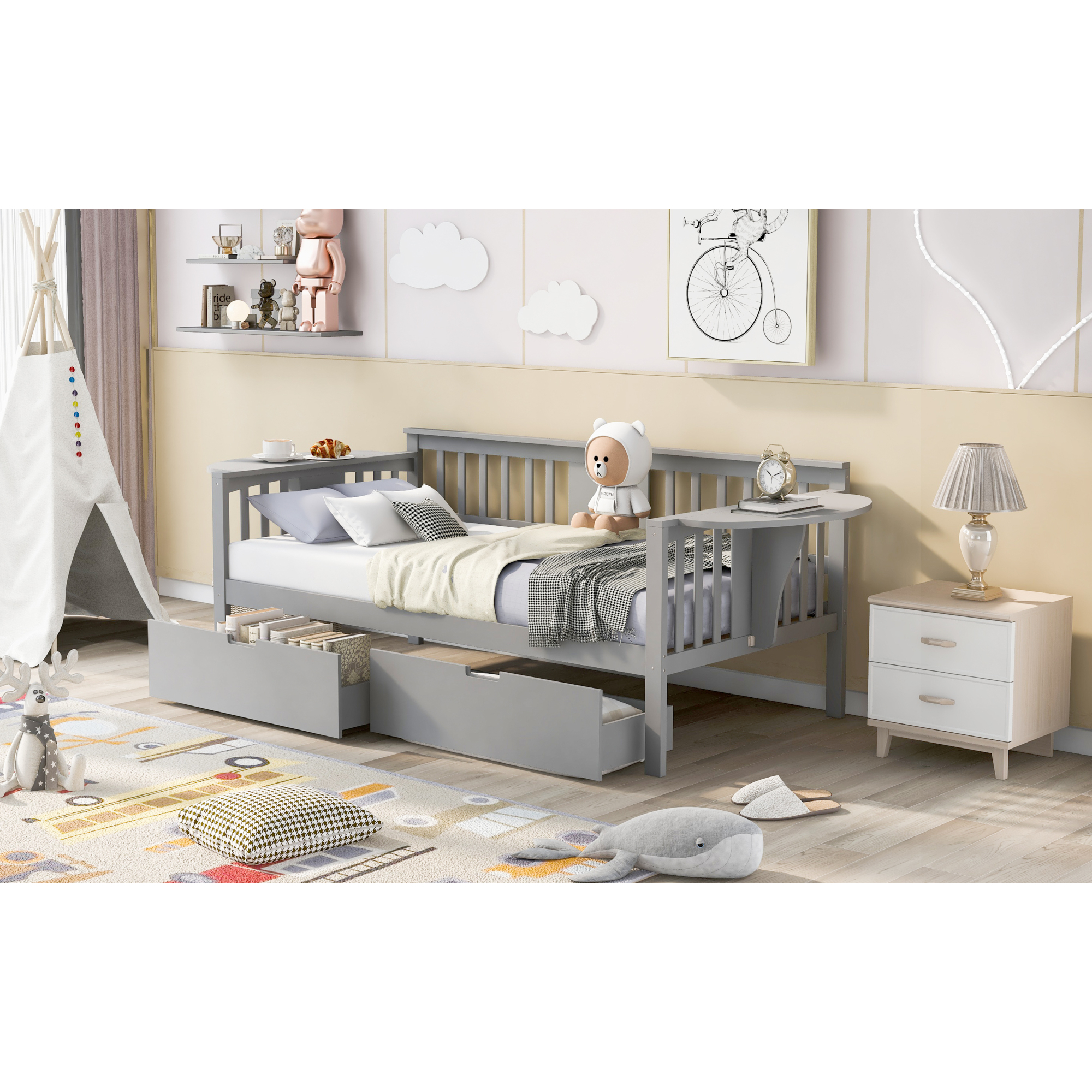Daybed With 2 Drawers, Wood Size Daybed With Desk,Gree Shelves, Storage Bed With Wood Slat Support For Kids Girls Boys,Grey