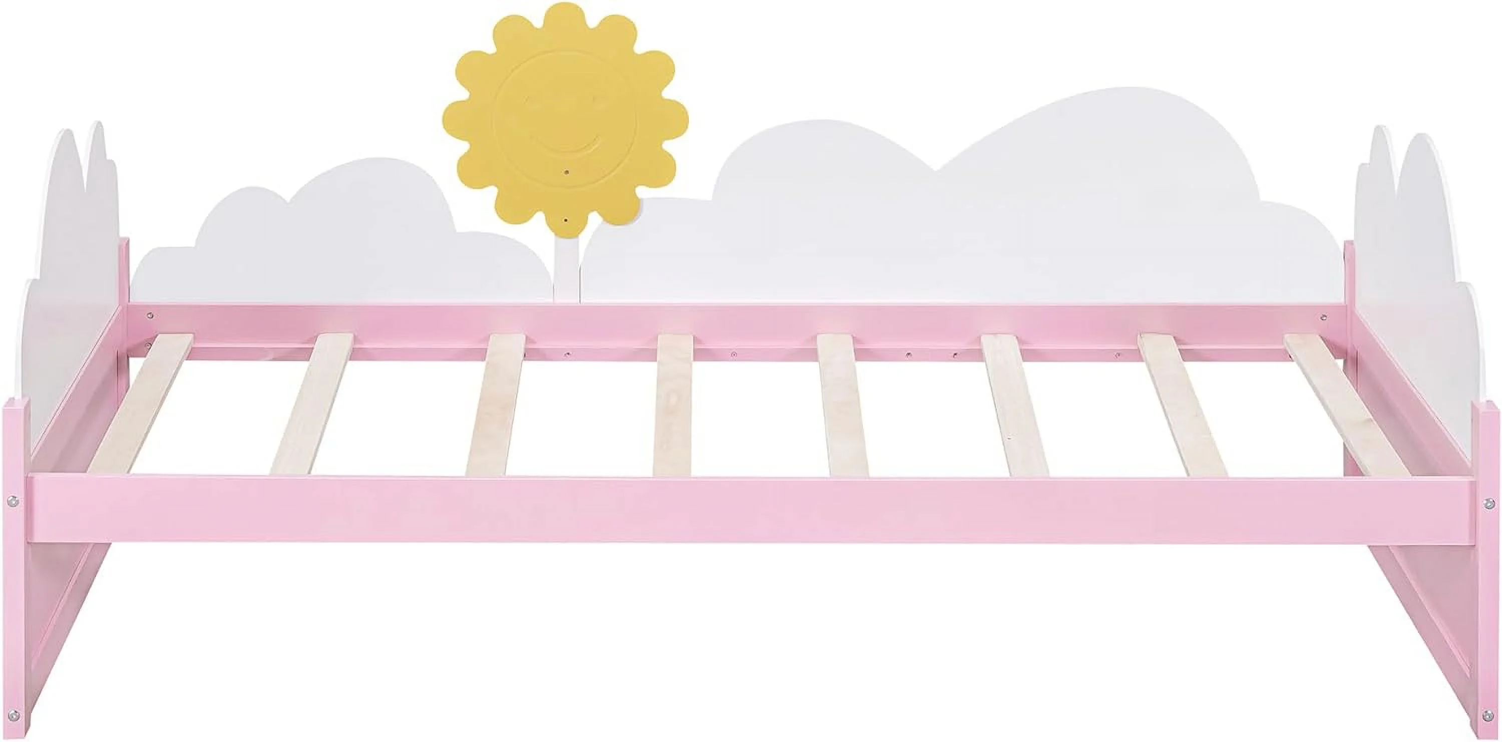 CoSoTower Twin Size Daybed with Desk, Green Leaf Shape Drawers and Shelves, Gray