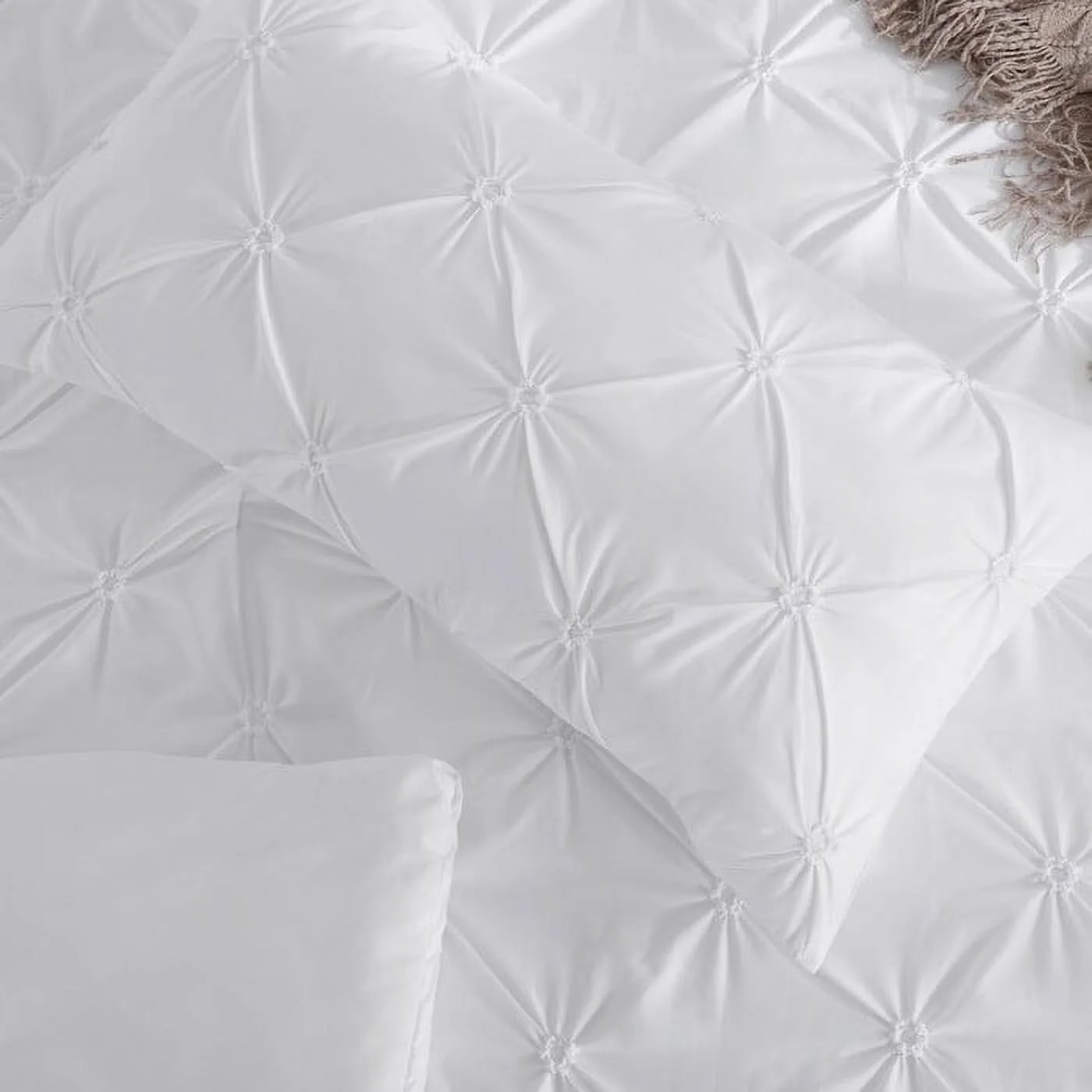 Twin Size All Season Pleated Hypoallergenic Microfiber Reversible 2 Piece Comforter Set in White
