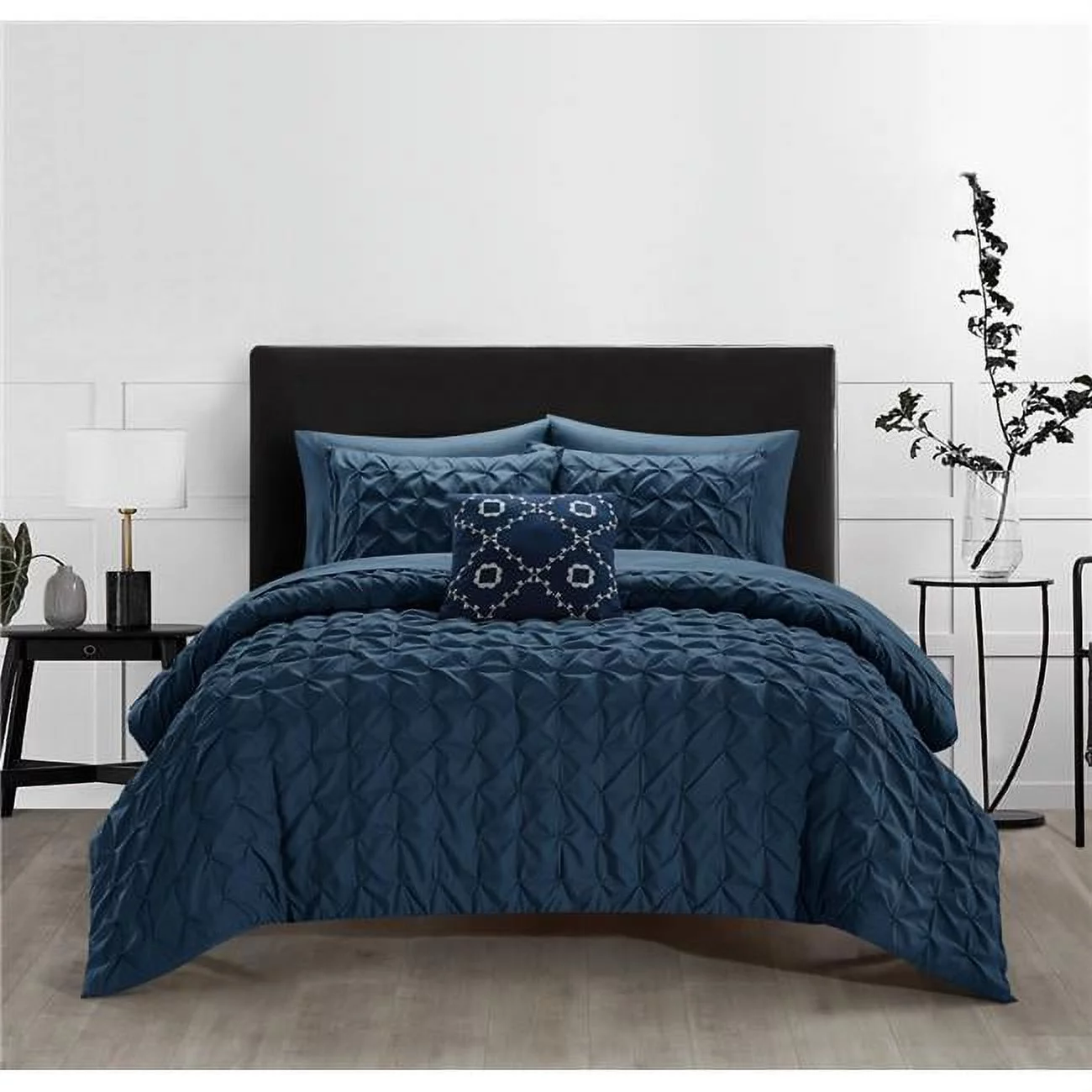 Chic Home Bates Pinch Pleat Box Design Bed in A Bag Bedding Comforter Set, Navy - Twin Size - 6 Piece