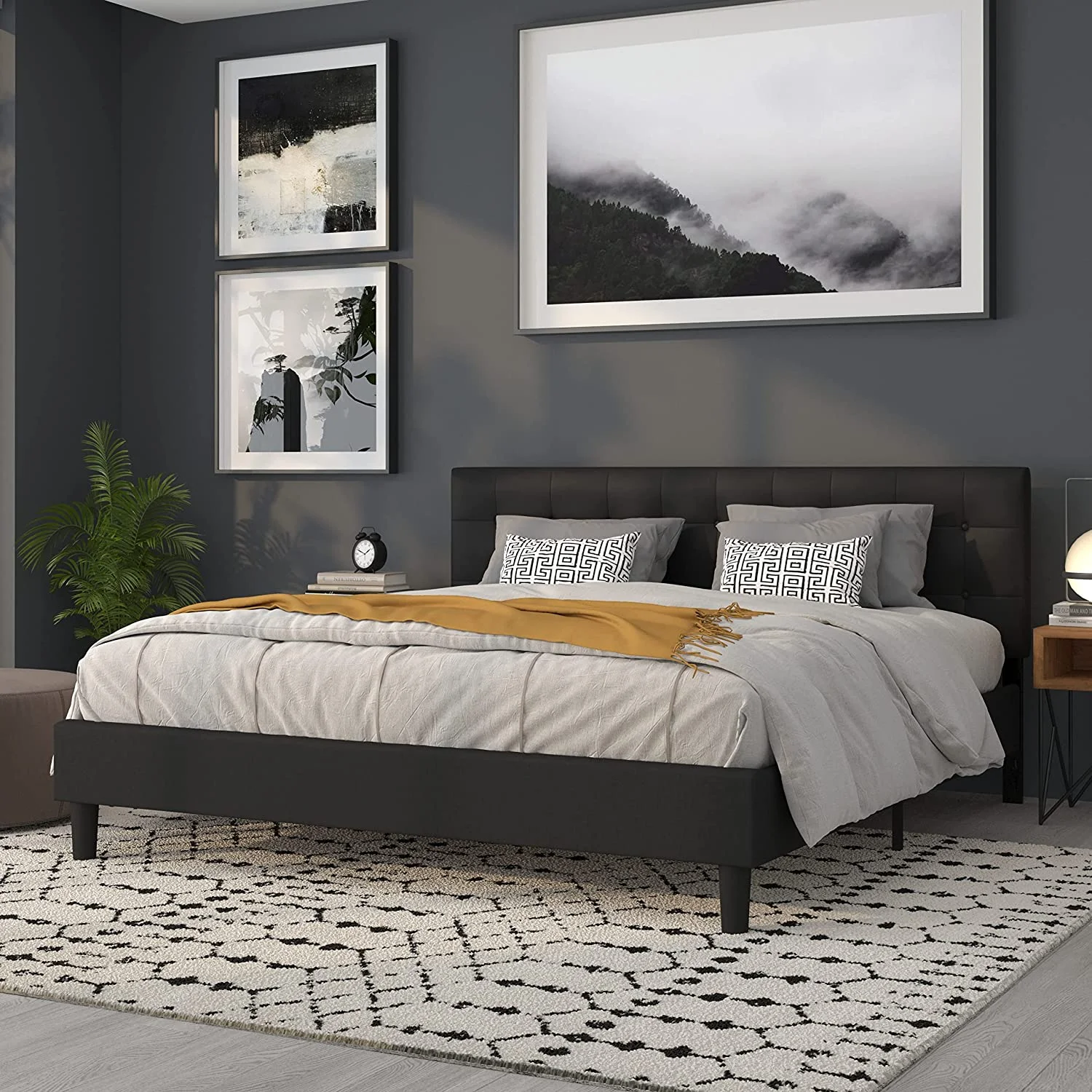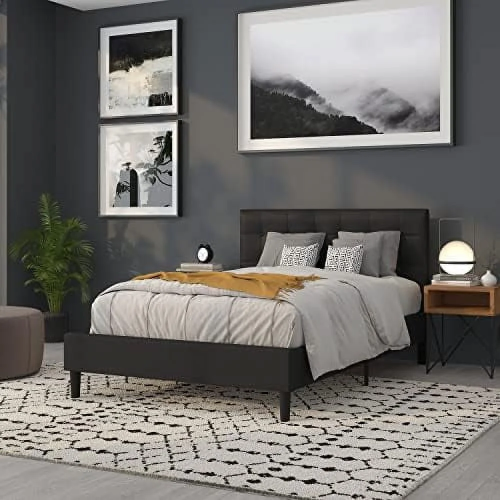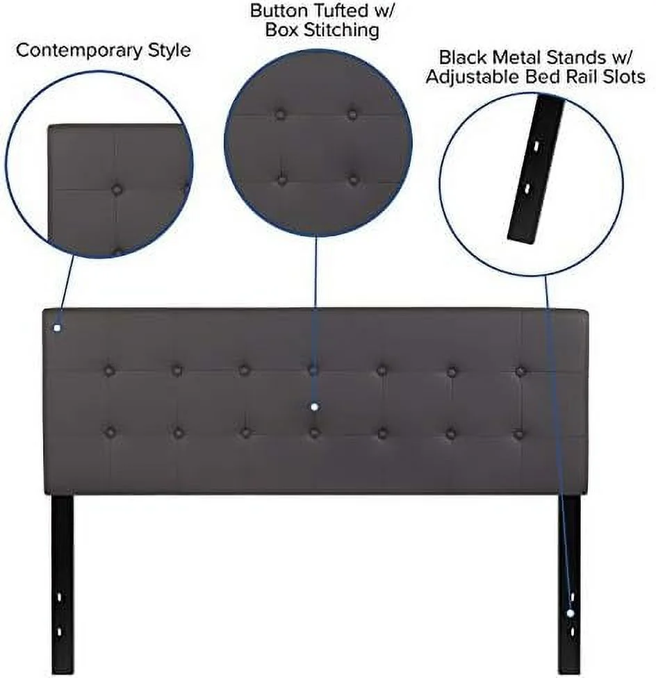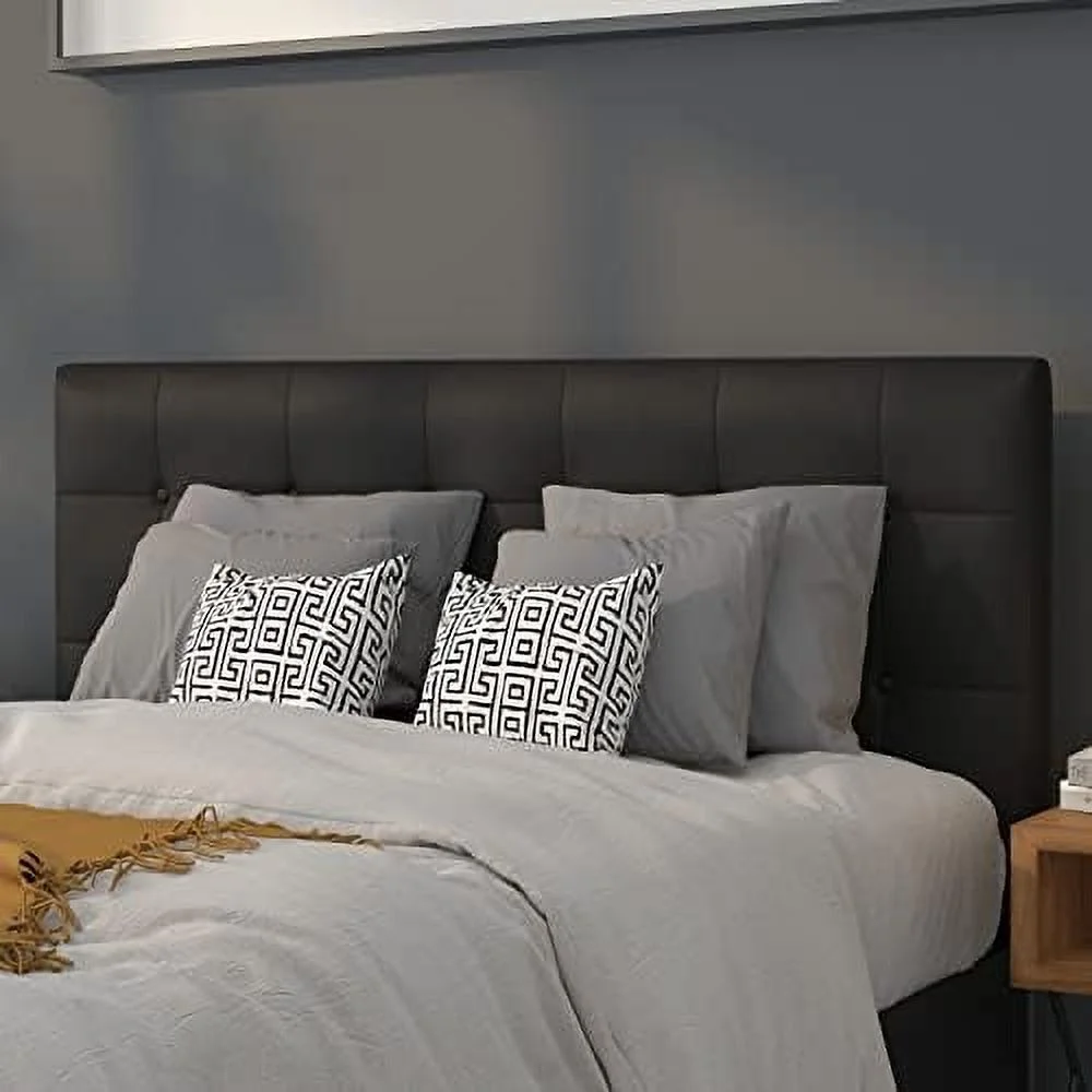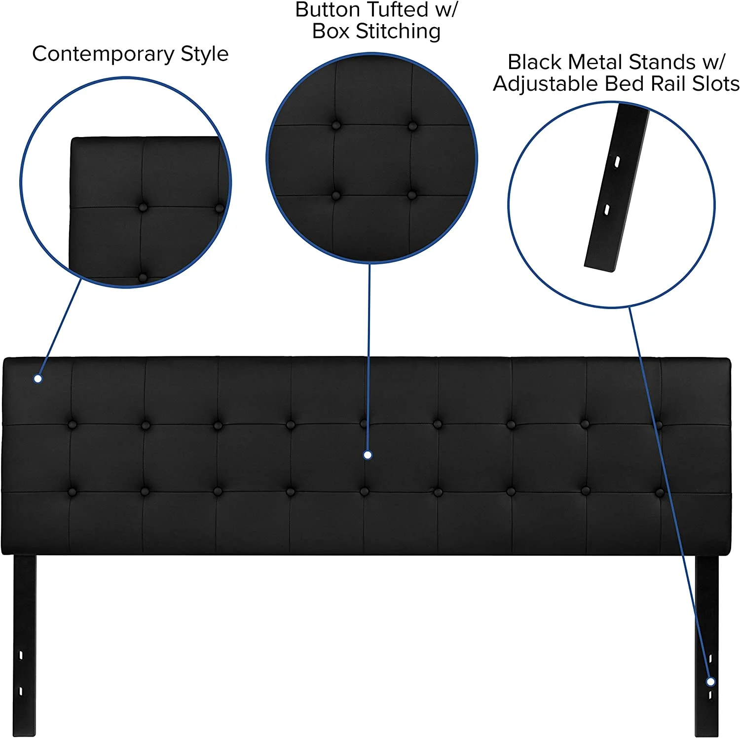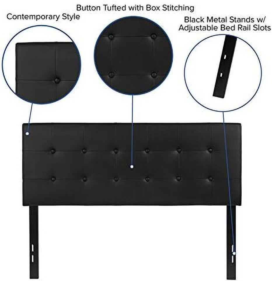 HOOMHIBIU Button Tufted Upholstered Queen Size Headboard in Black Vinyl