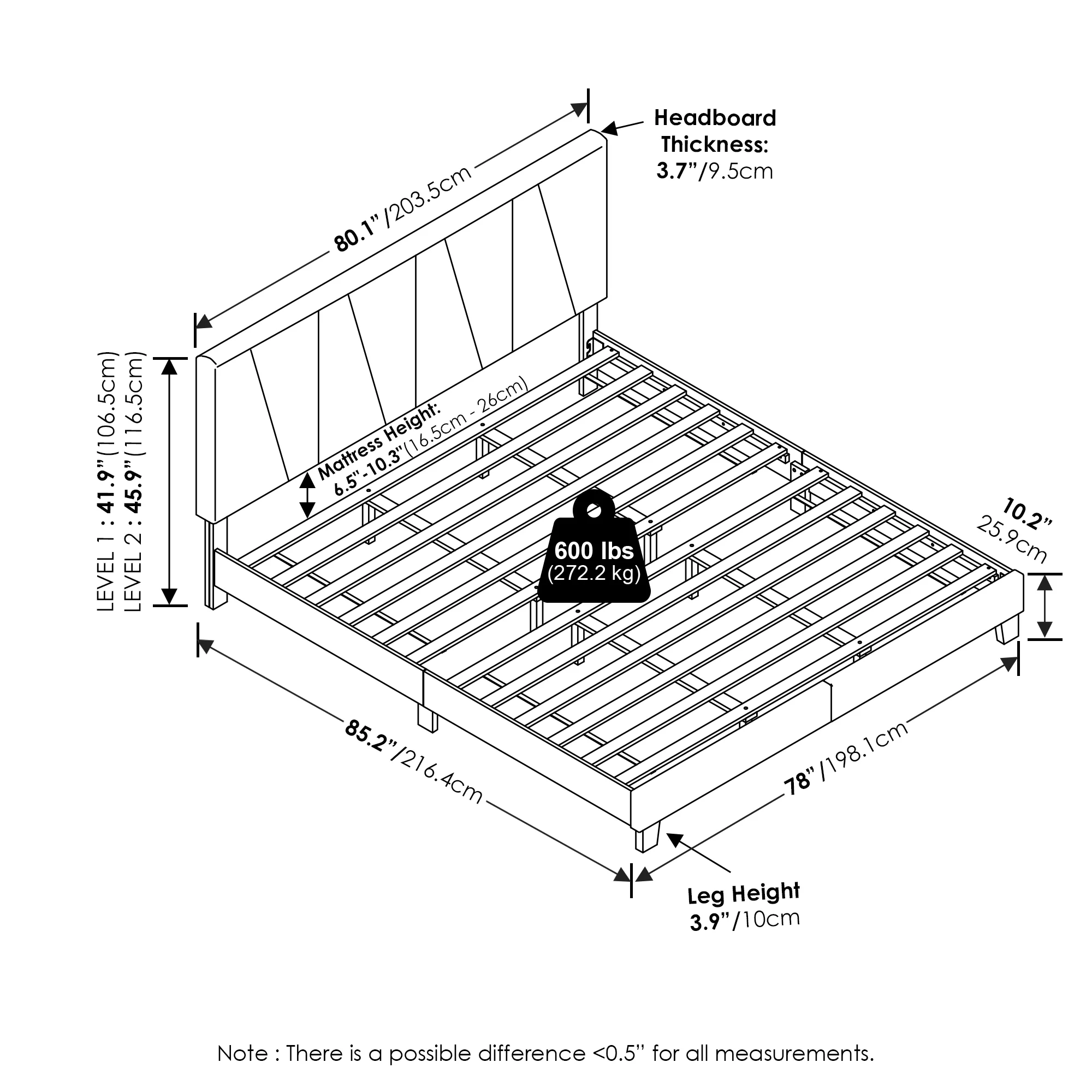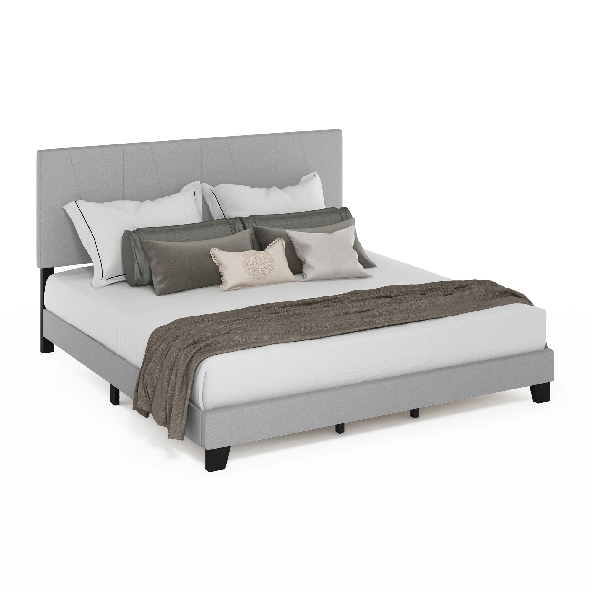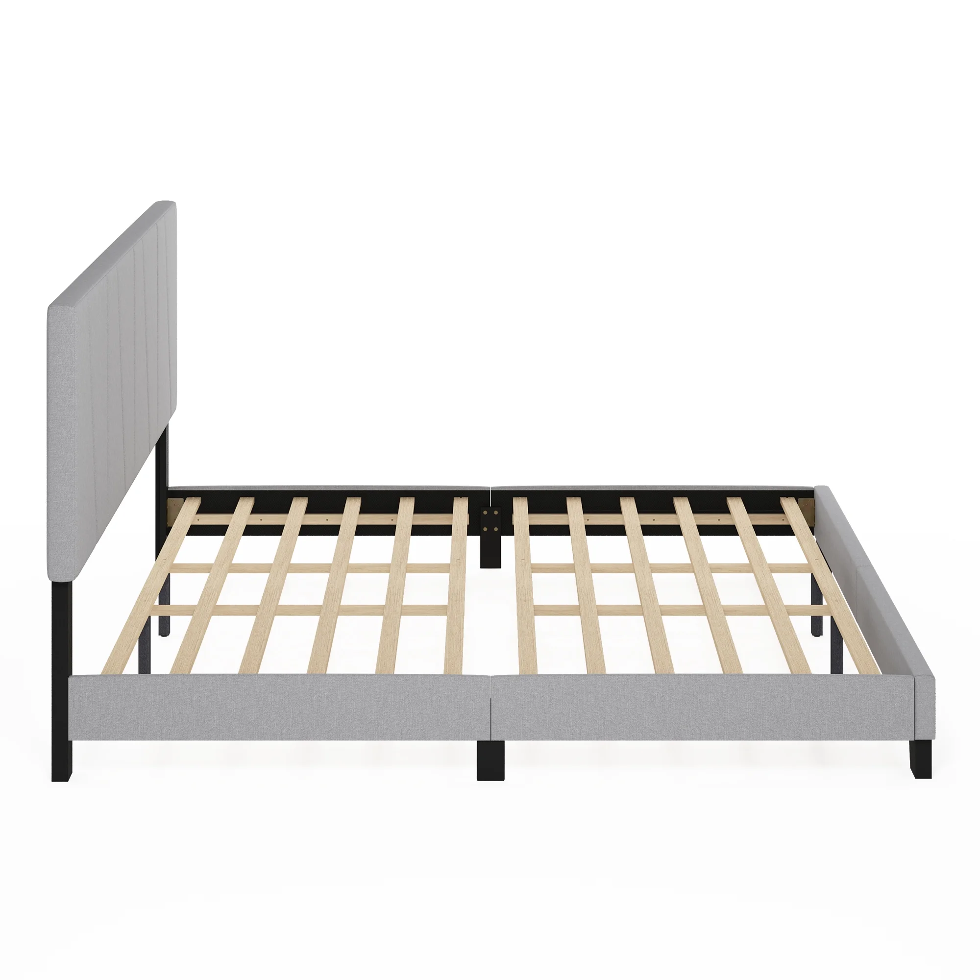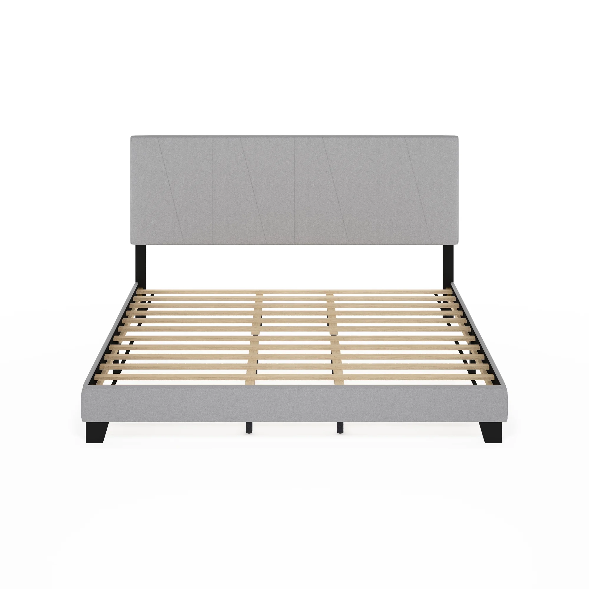 Furinno Lucy Geometric Design Headboard Bedframe, 12PC Slat Style, Glacier, King