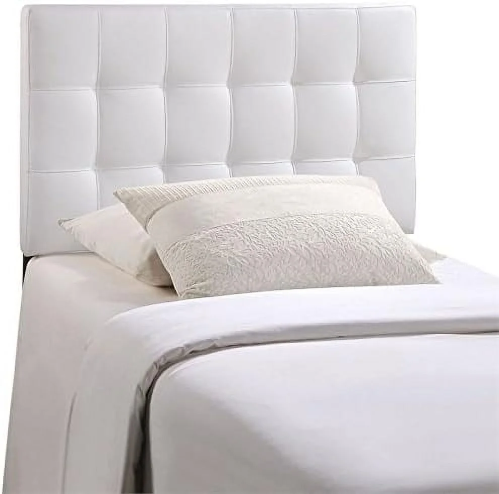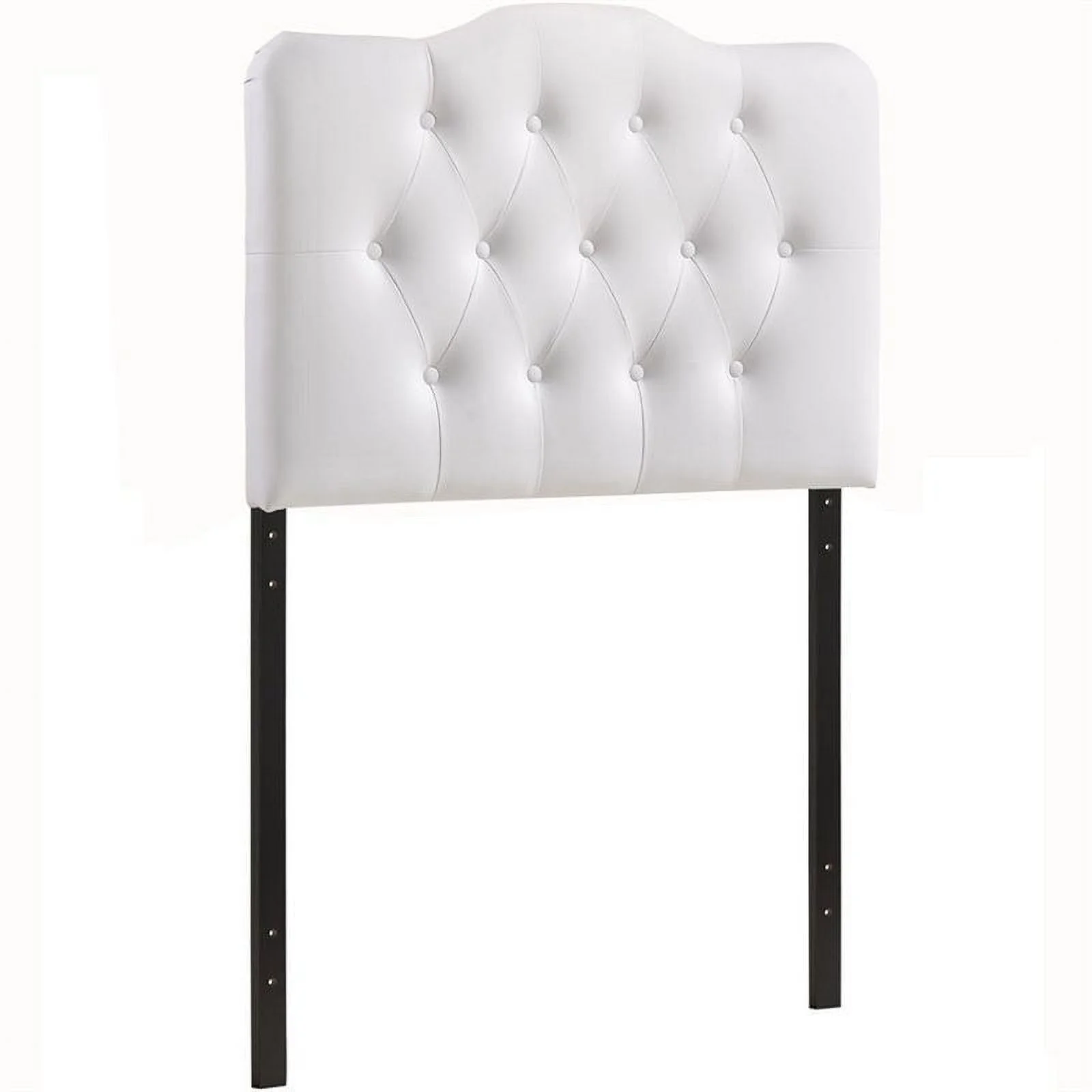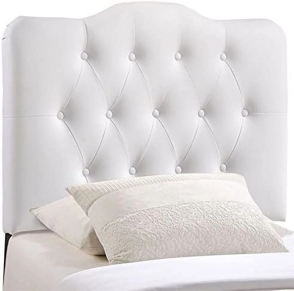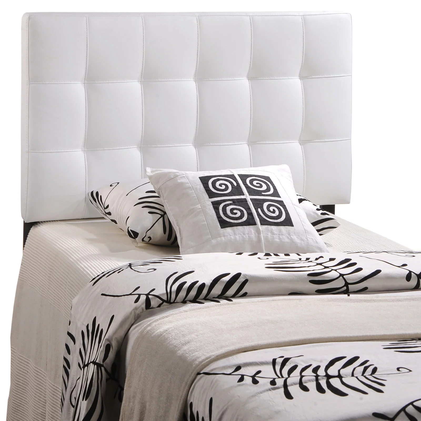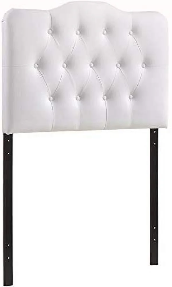 Roseberry Kids Modern Vinyl Twin Tufted Panel Headboard with Wood Frame in White