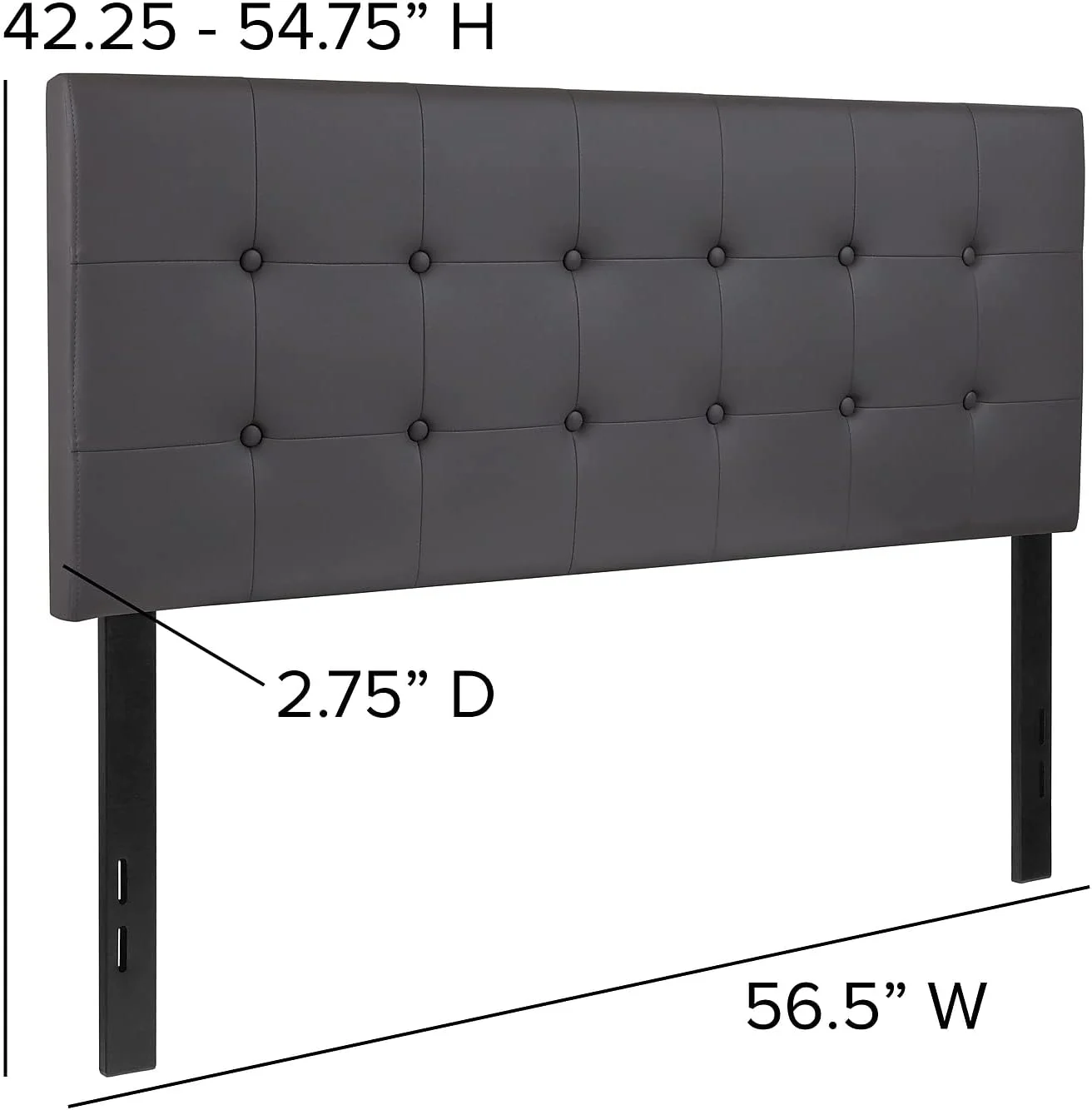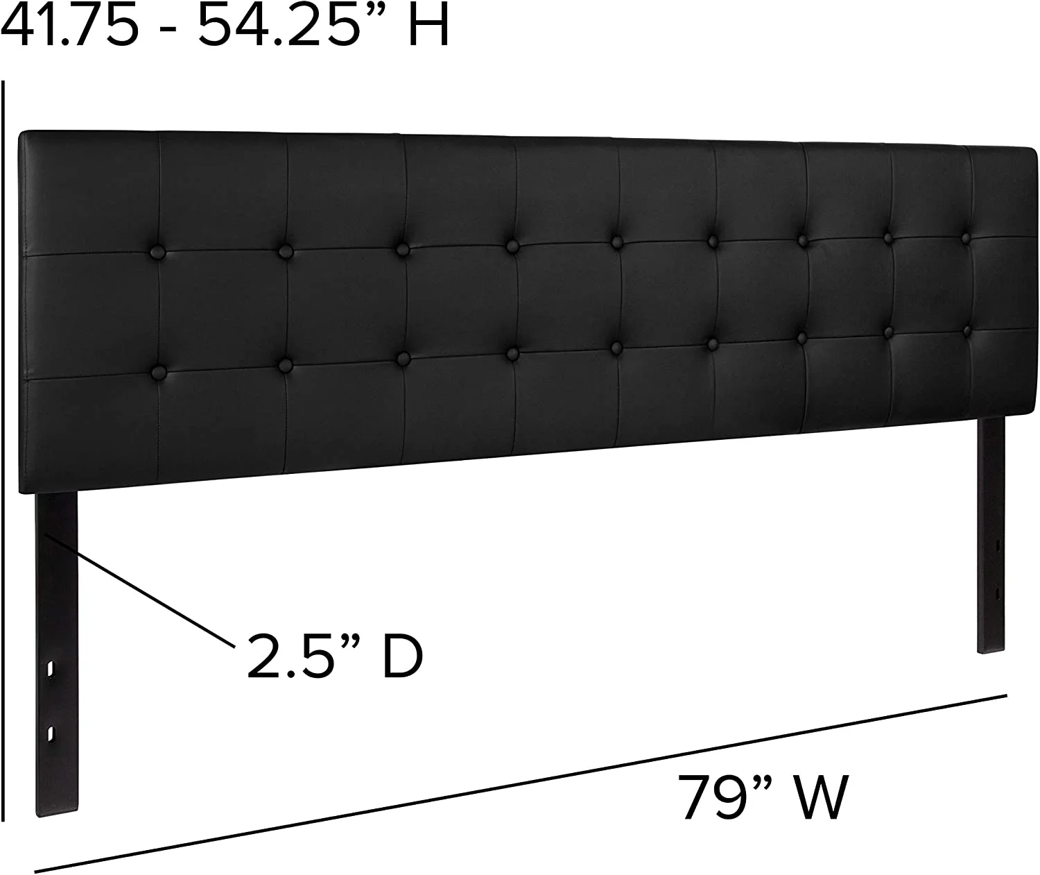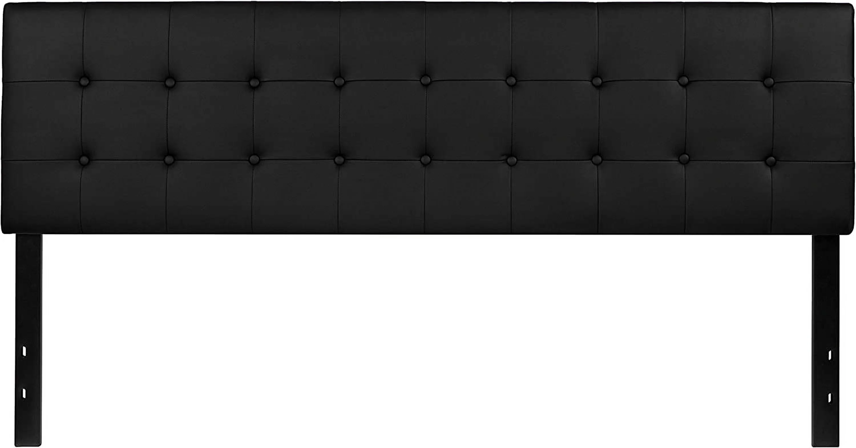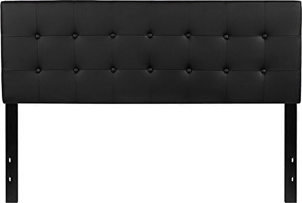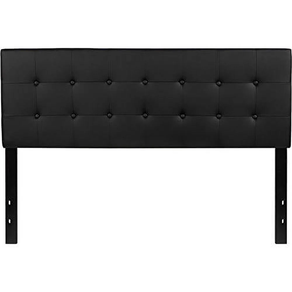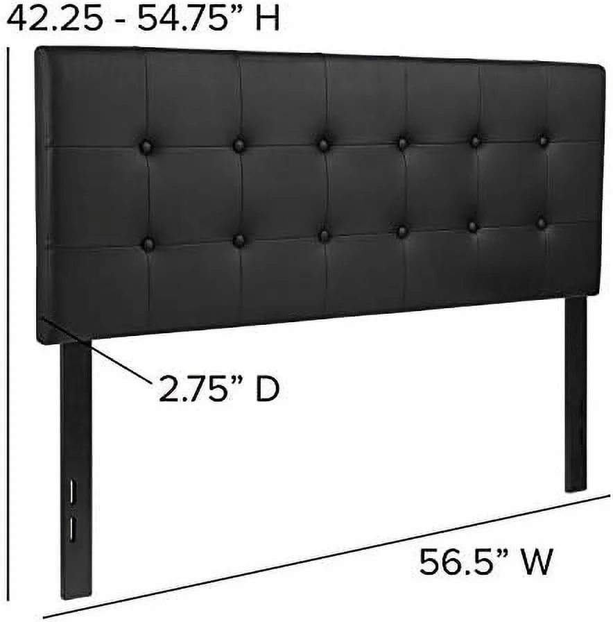 Tufted Upholstered Queen Size Headboard In Black Vinyl 61.5" W X 2.75" D X 42.25" - 54.75" H