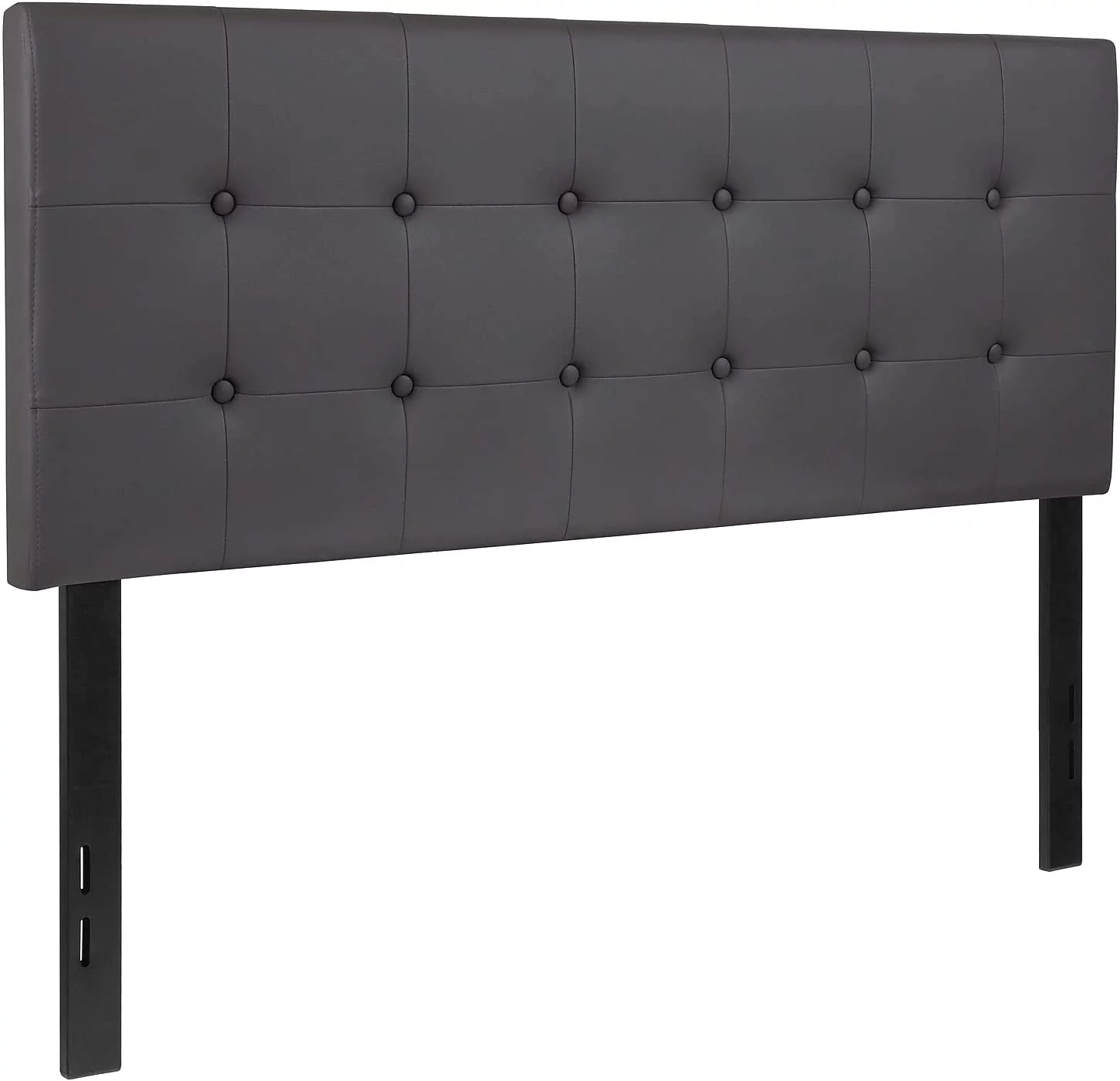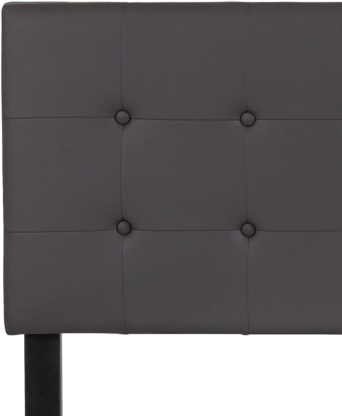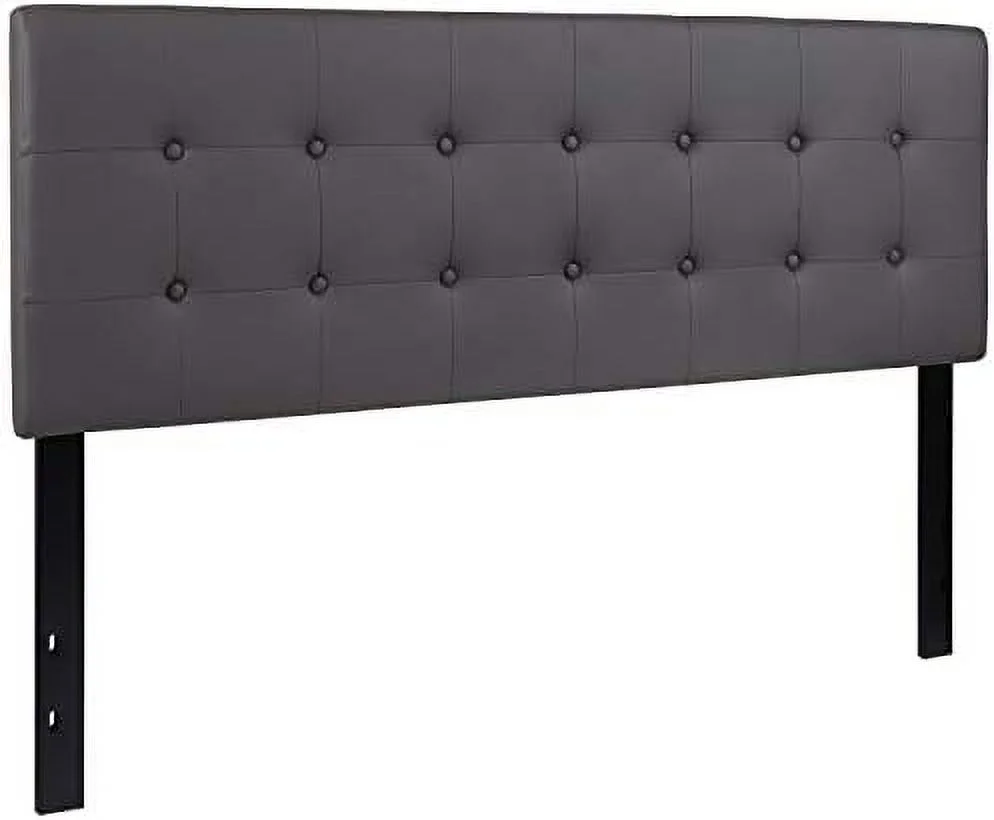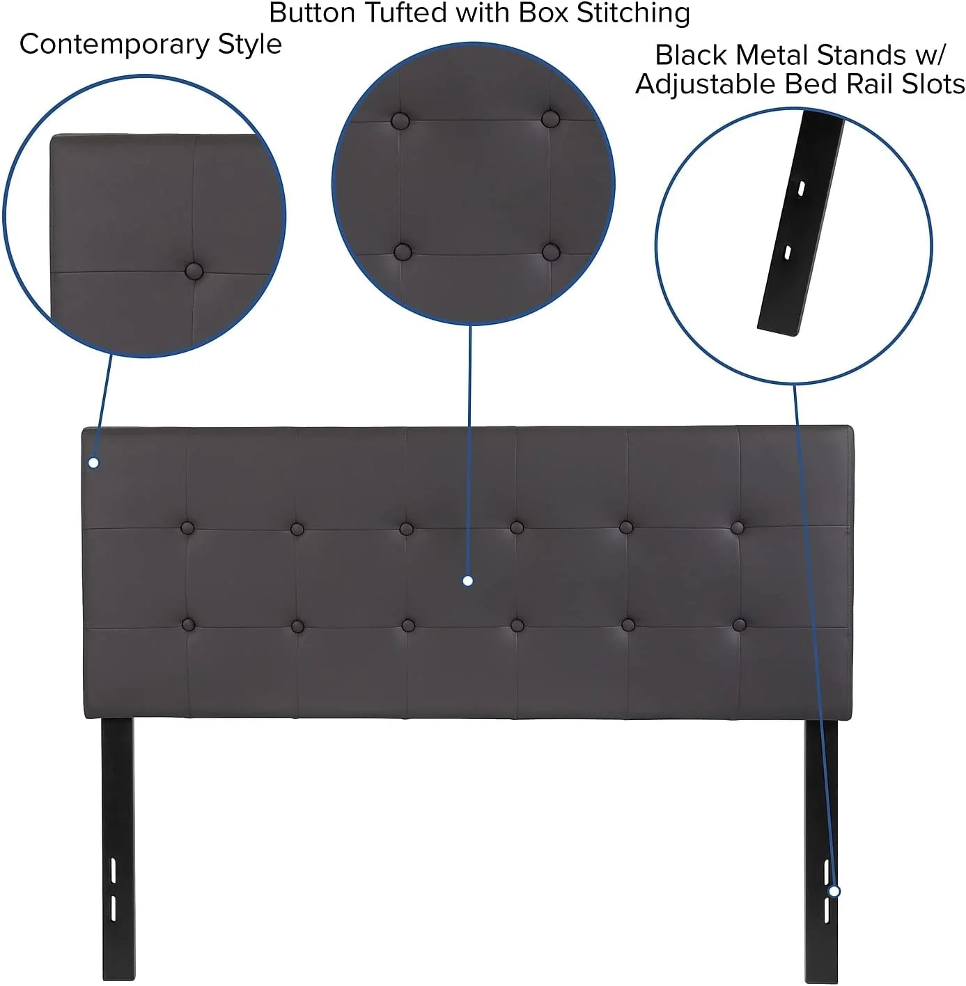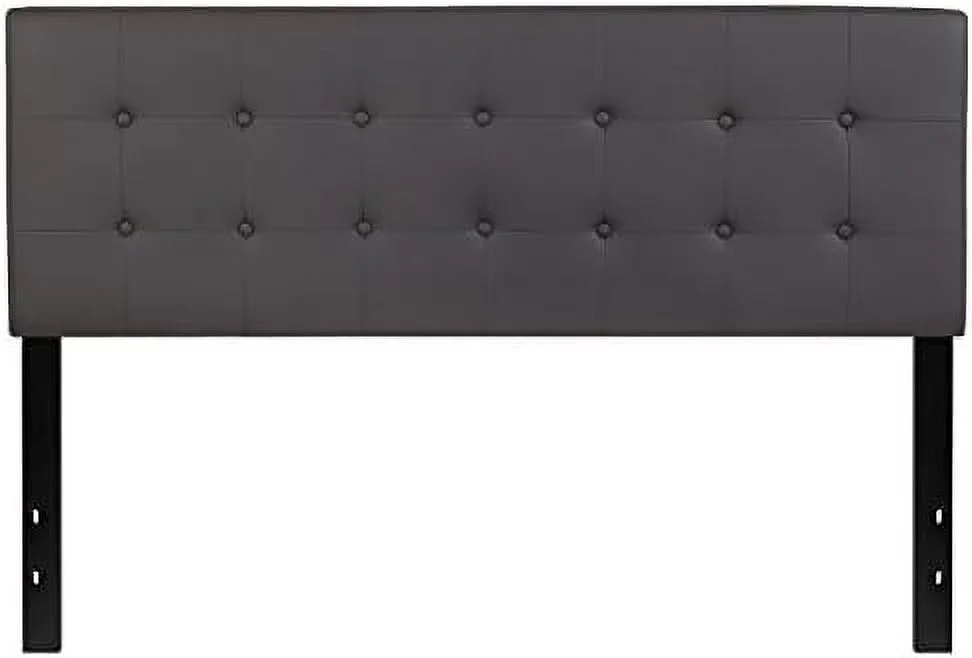 Tufted Upholstered Queen Size Headboard In Black Vinyl 61.5" W X 2.75" D X 42.25" - 54.75" H