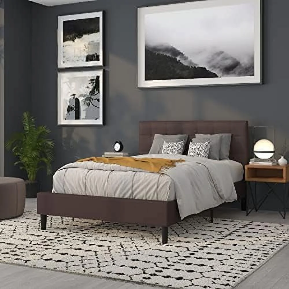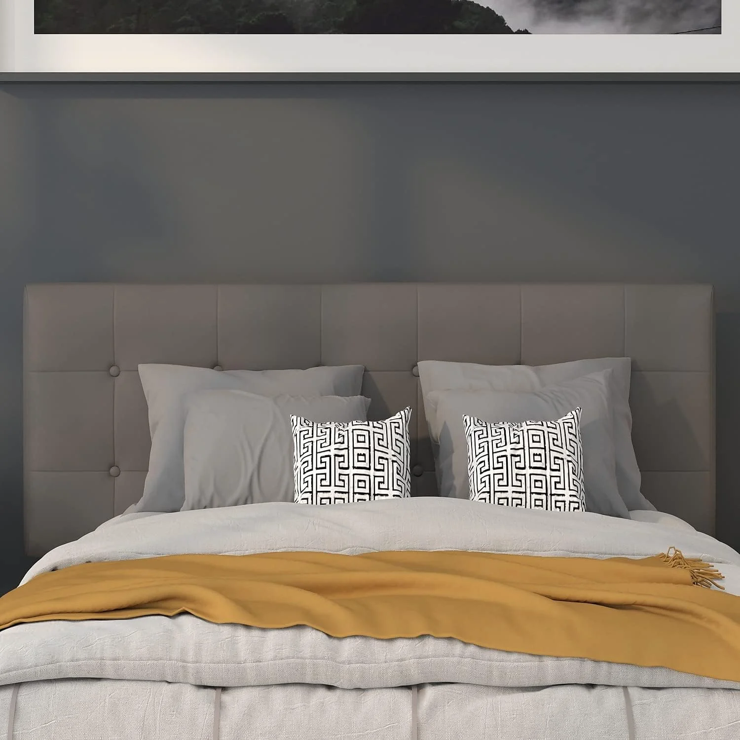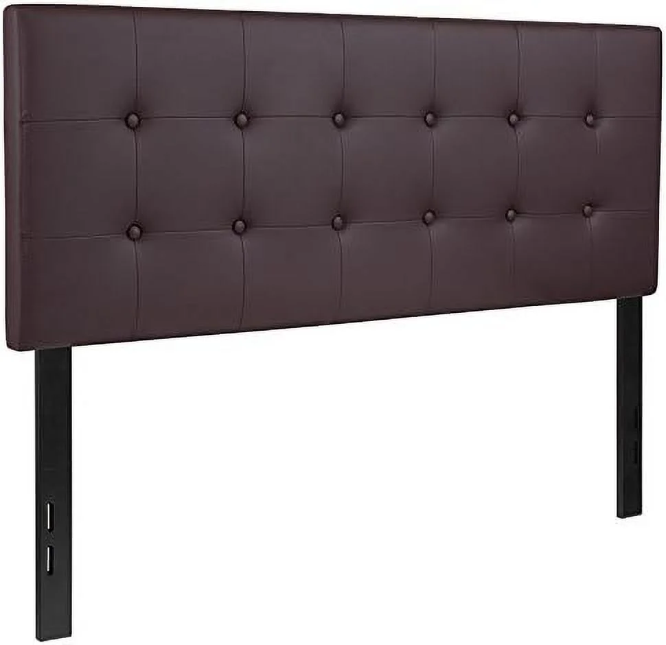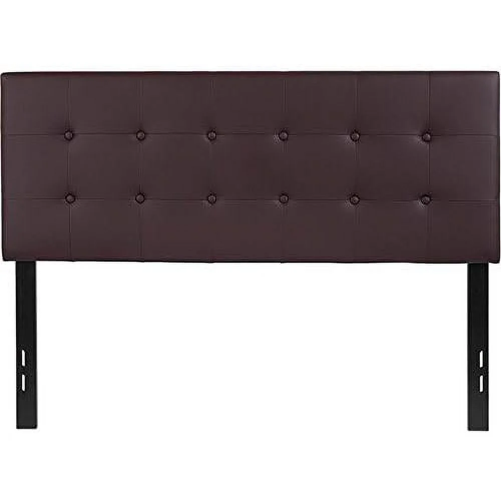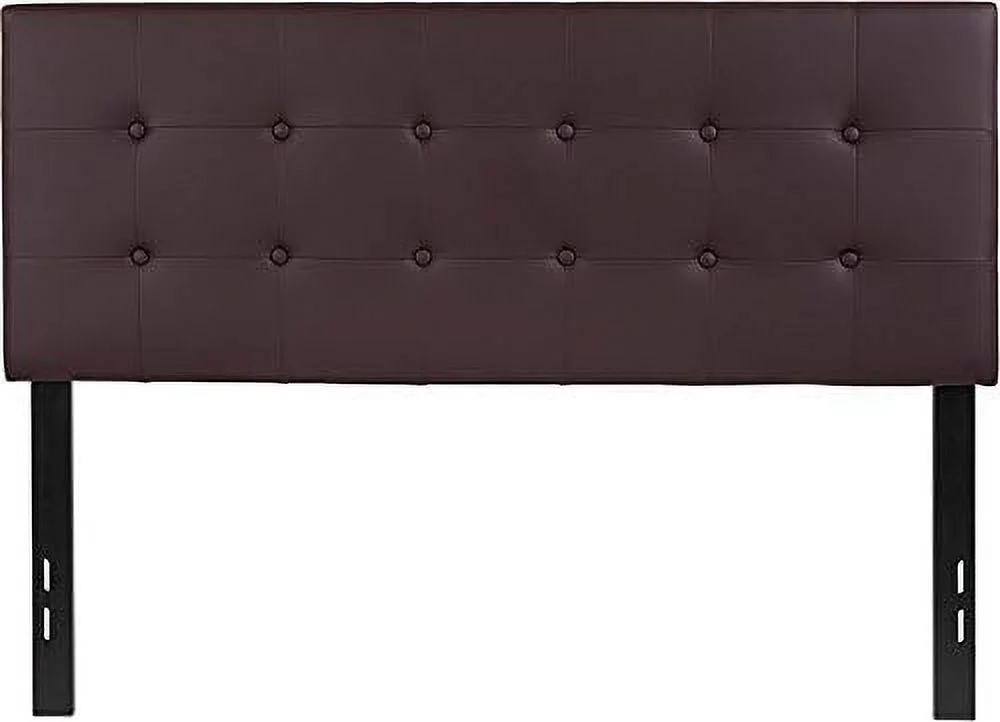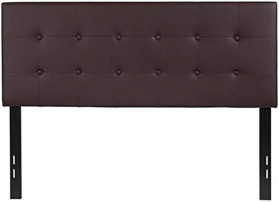 Tufted Upholstered Full Size Headboard In Brown Vinyl 56.5" W X 2.75" D X 42.25" - 54.75" H