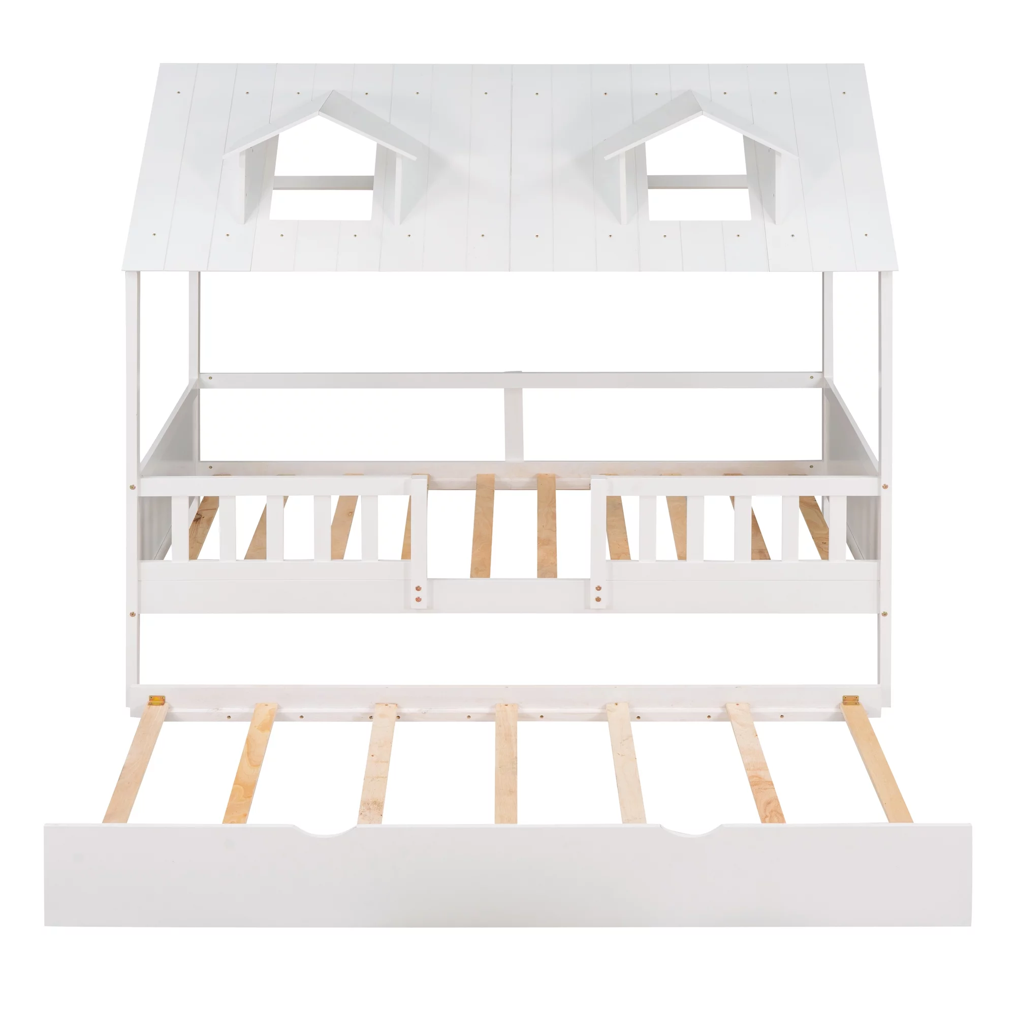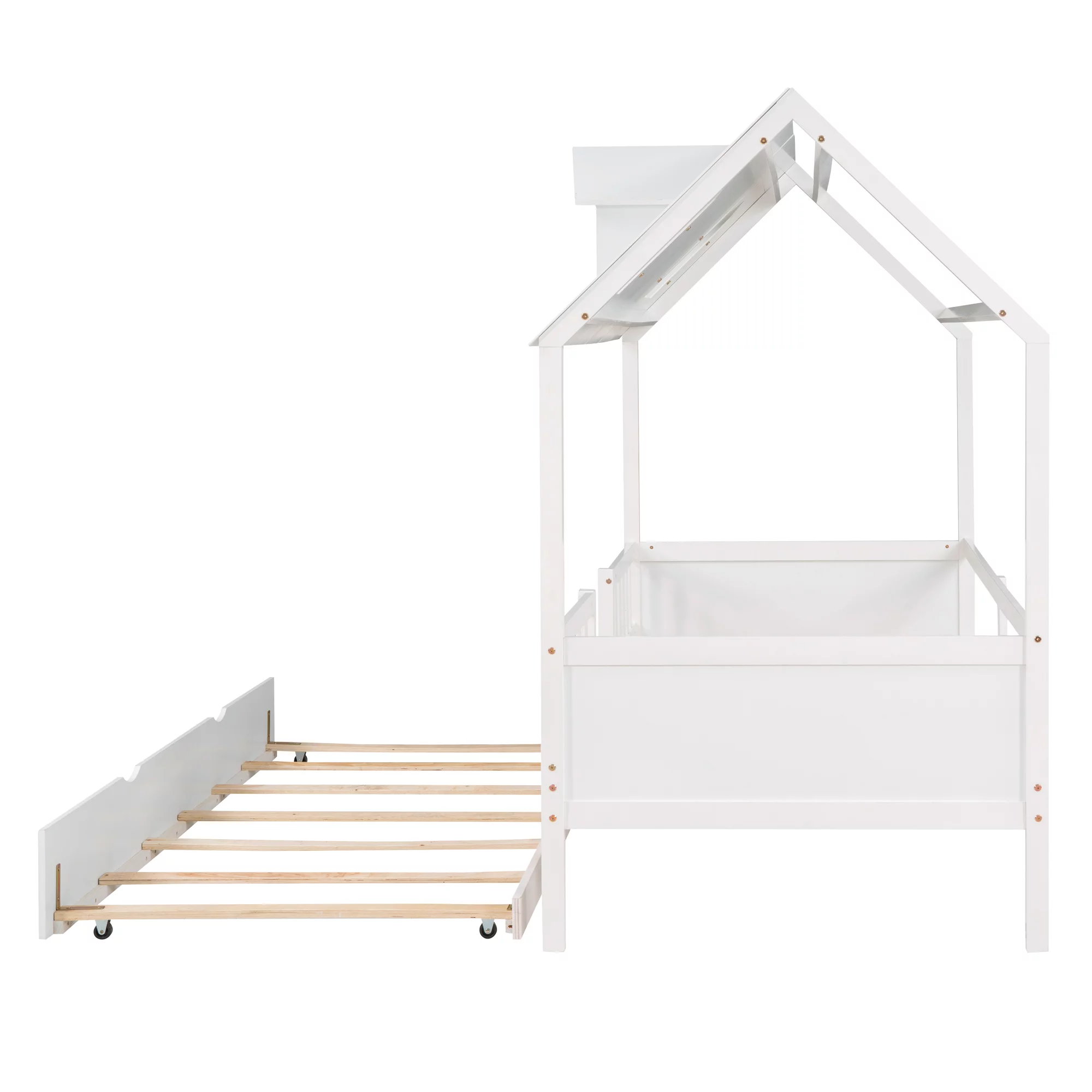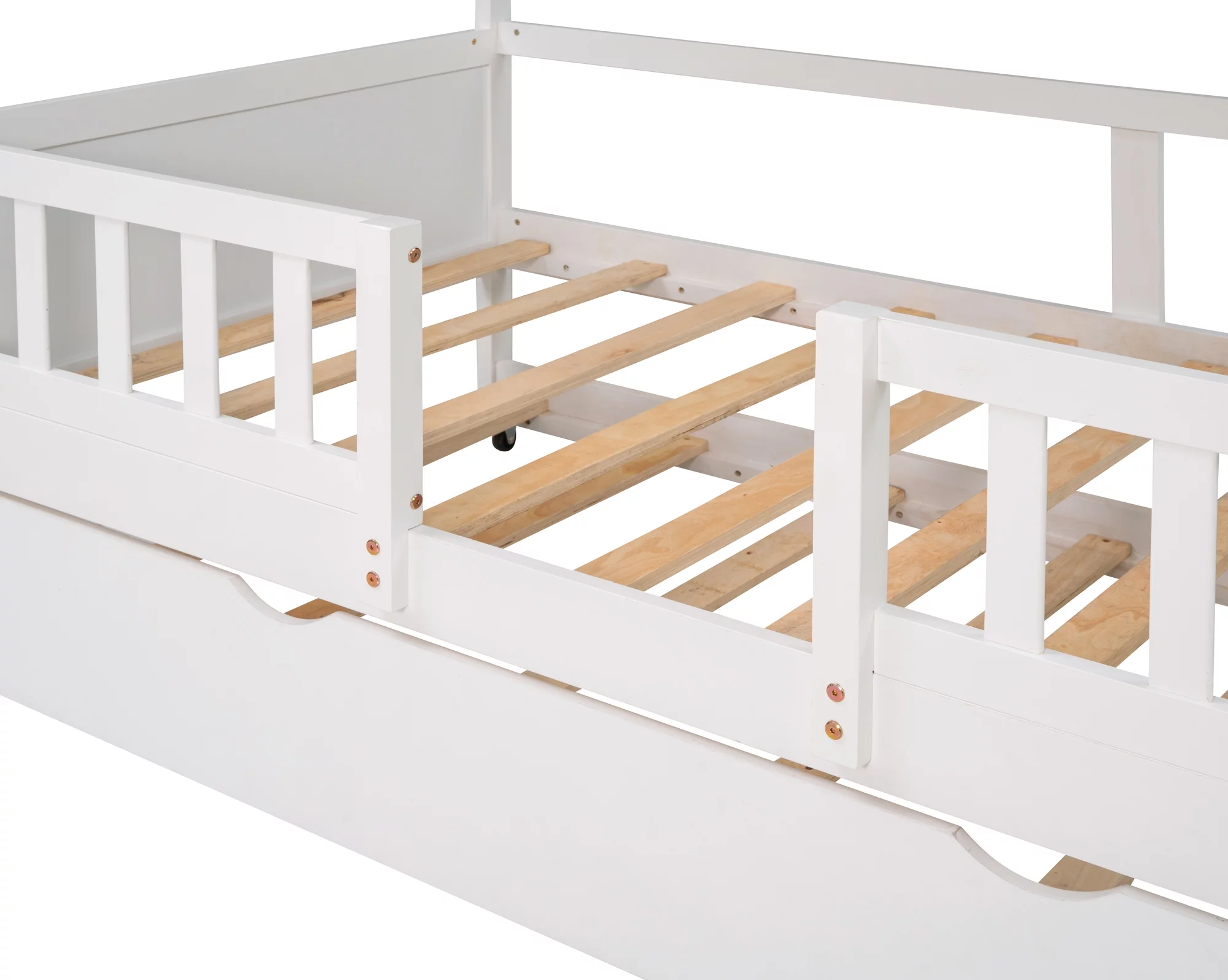 CoSoTower Twin Size House Bed Wood Bed with Twin Size Trundle ( White )