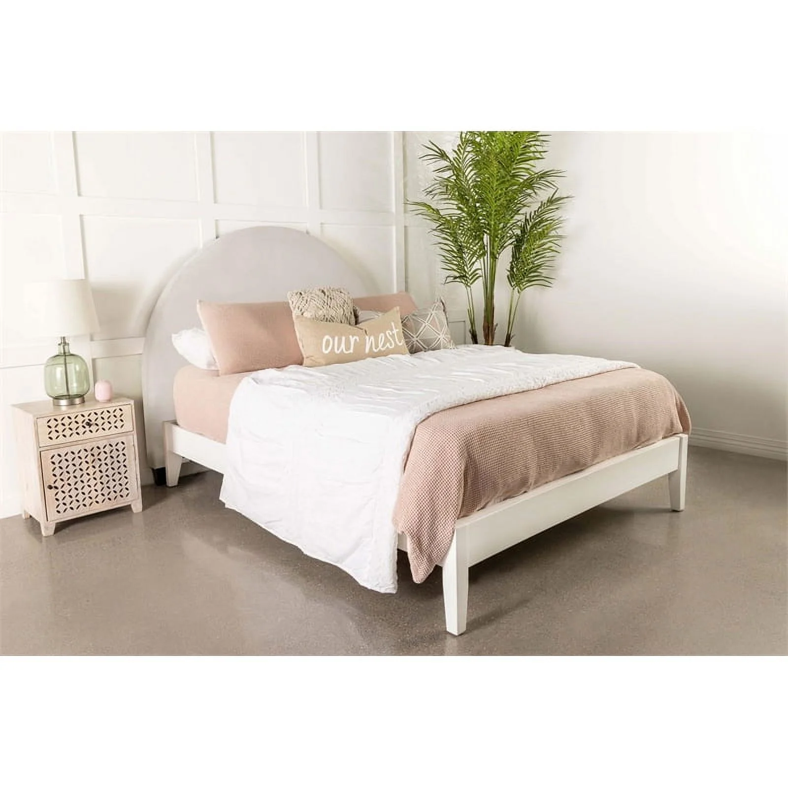 Pemberly Row Transitional Velvet Upholstered Arched Twin Headboard Ivory