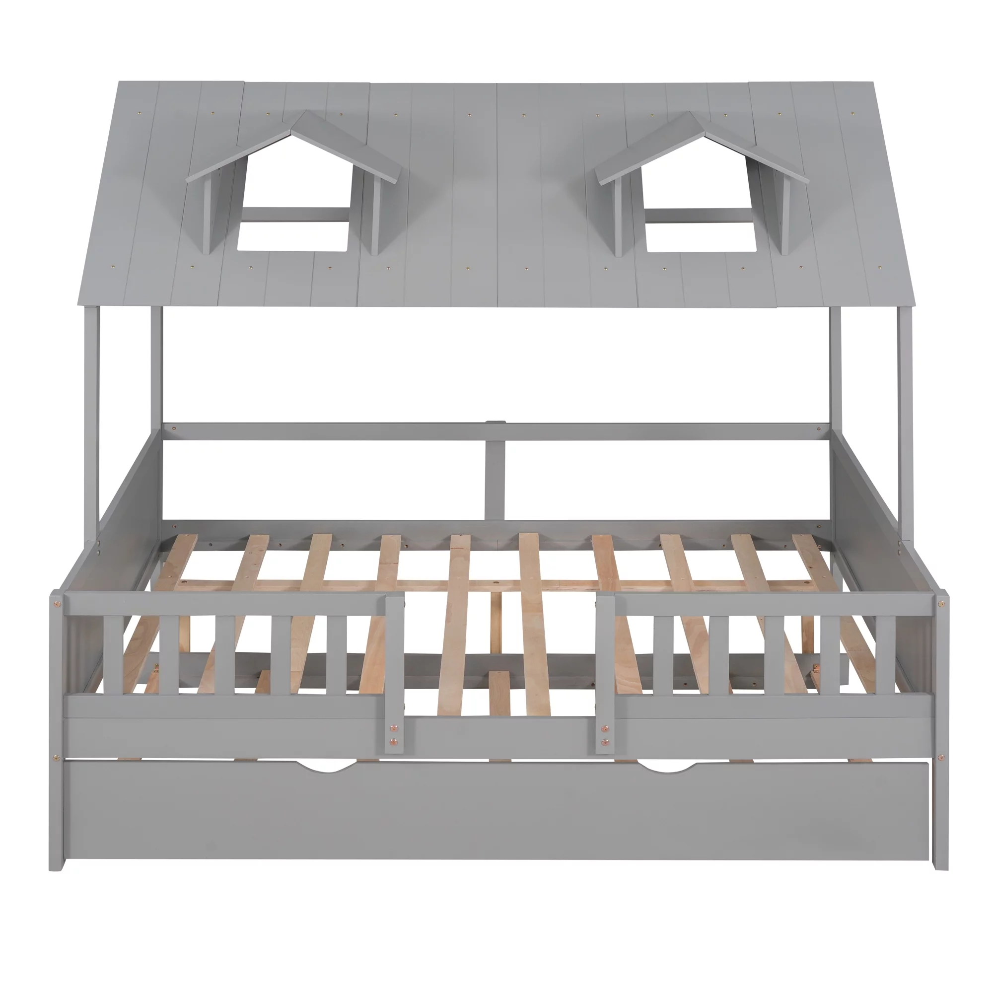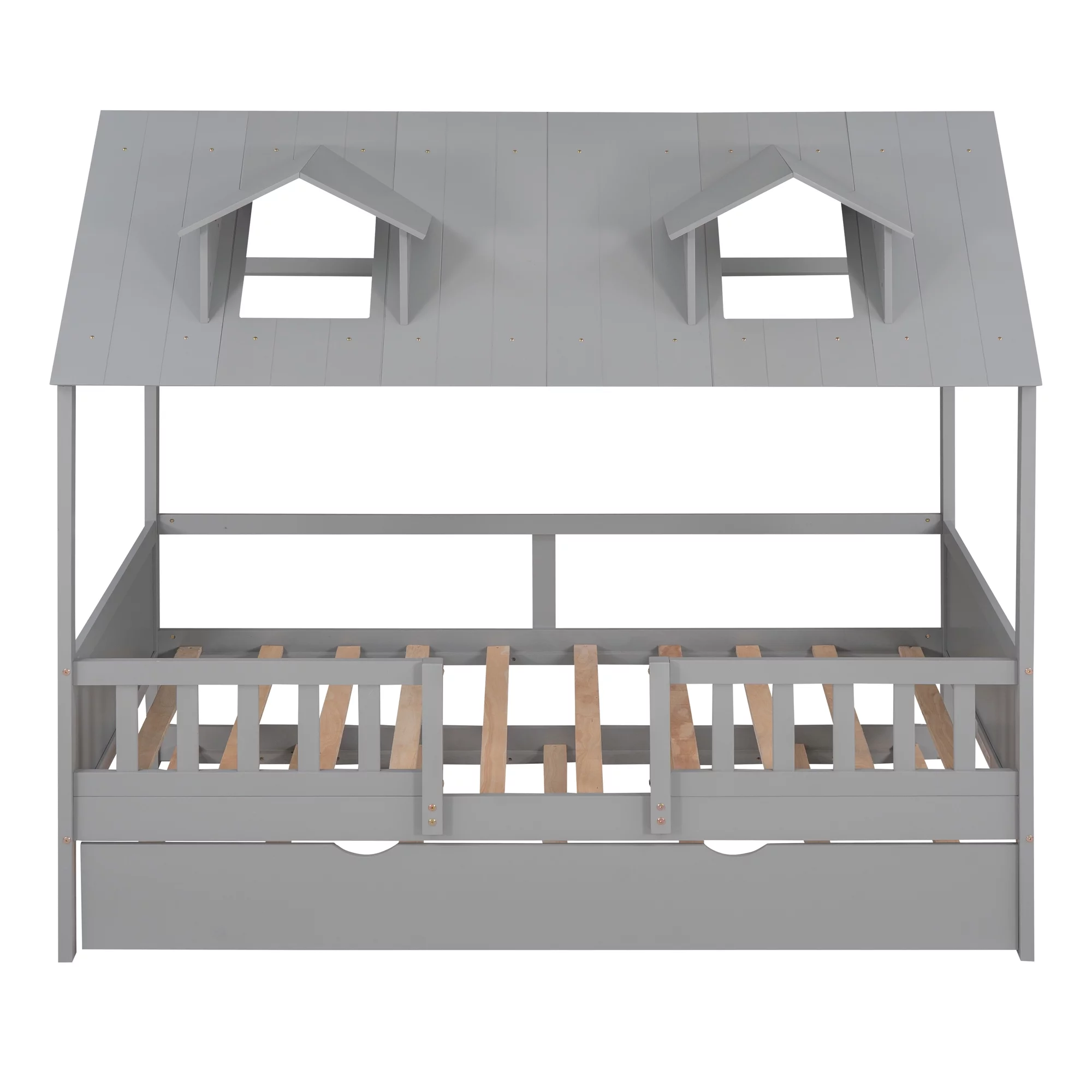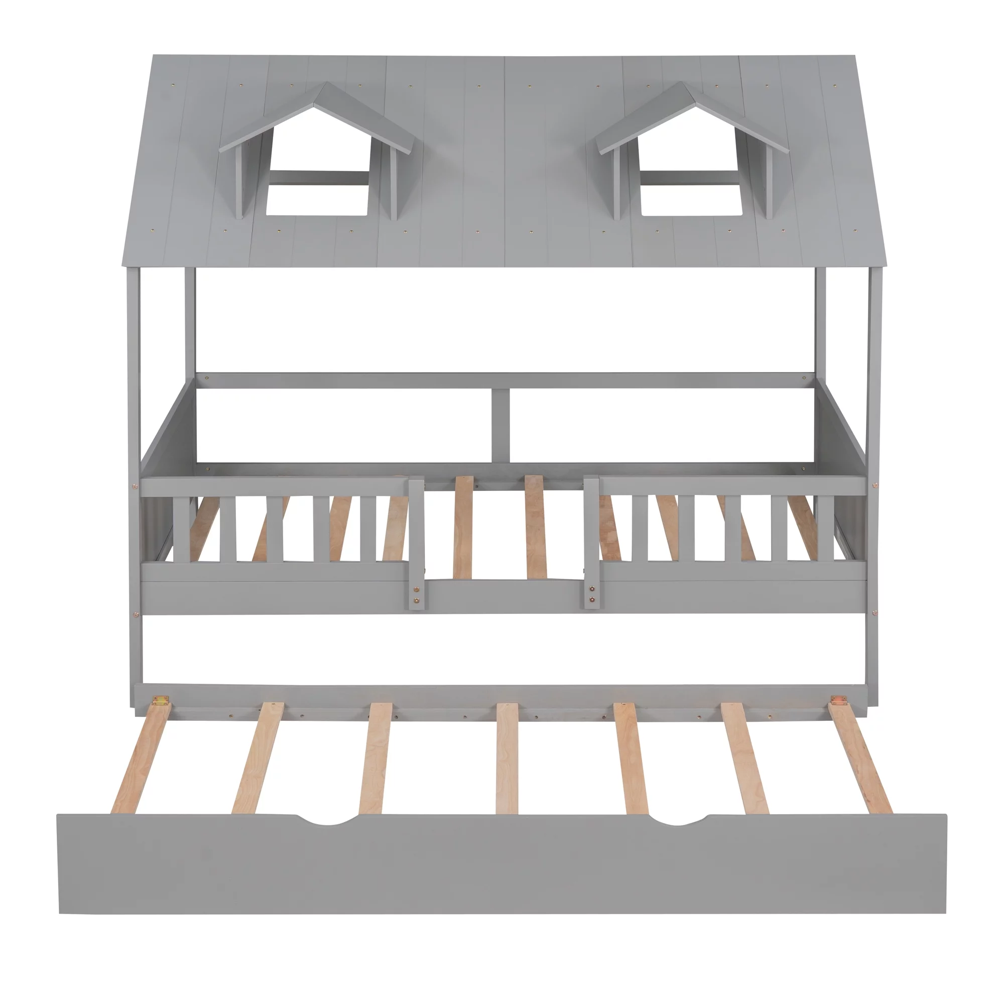 CoSoTower Full Size House Bed Wood Bed with Twin Size Trundle ( Gray )