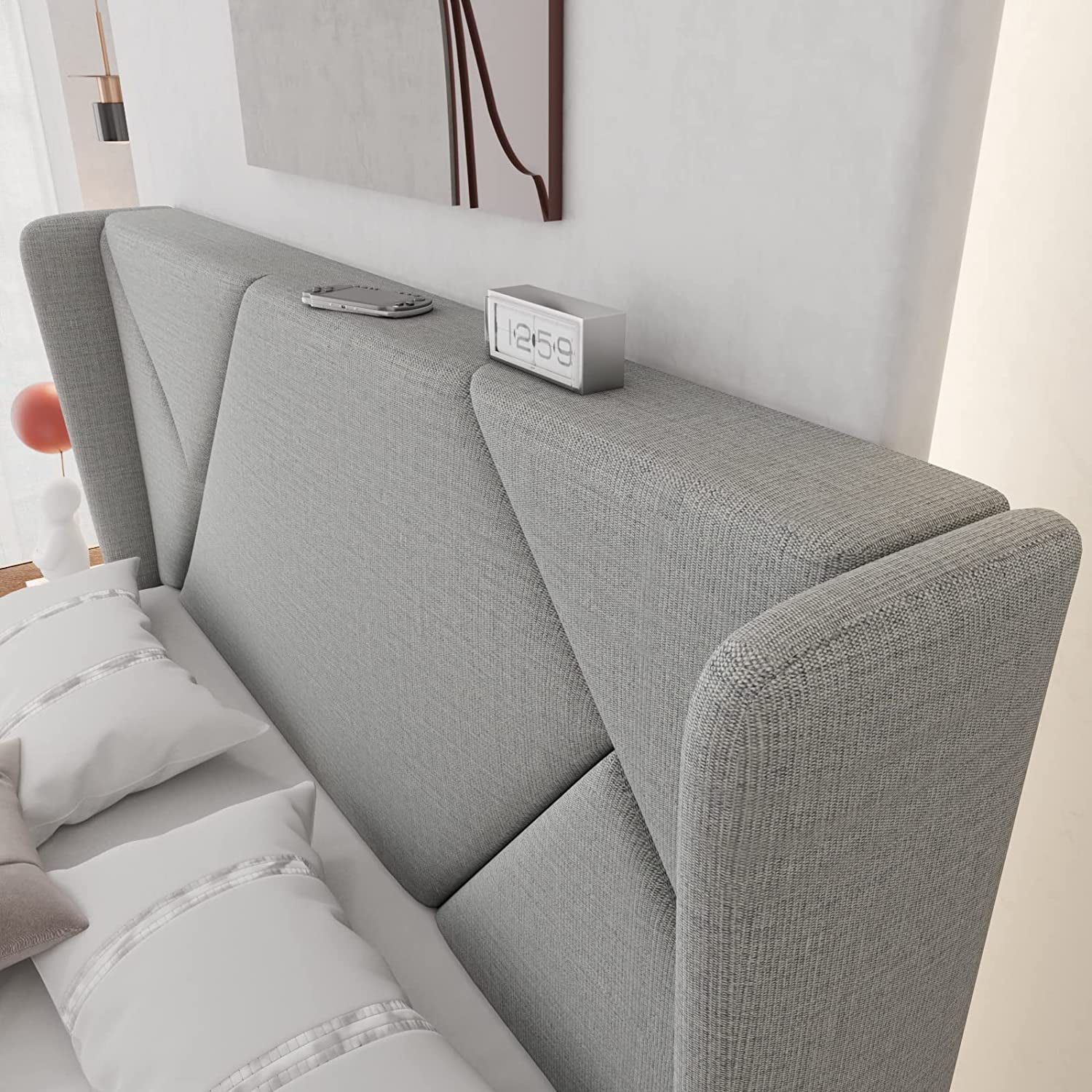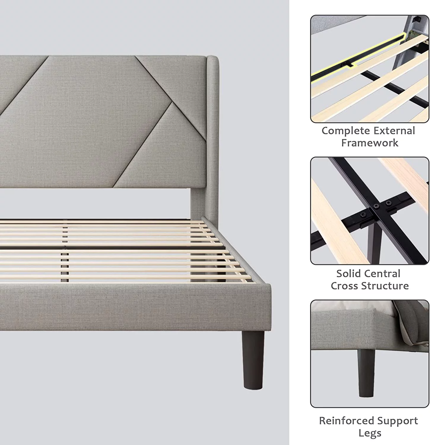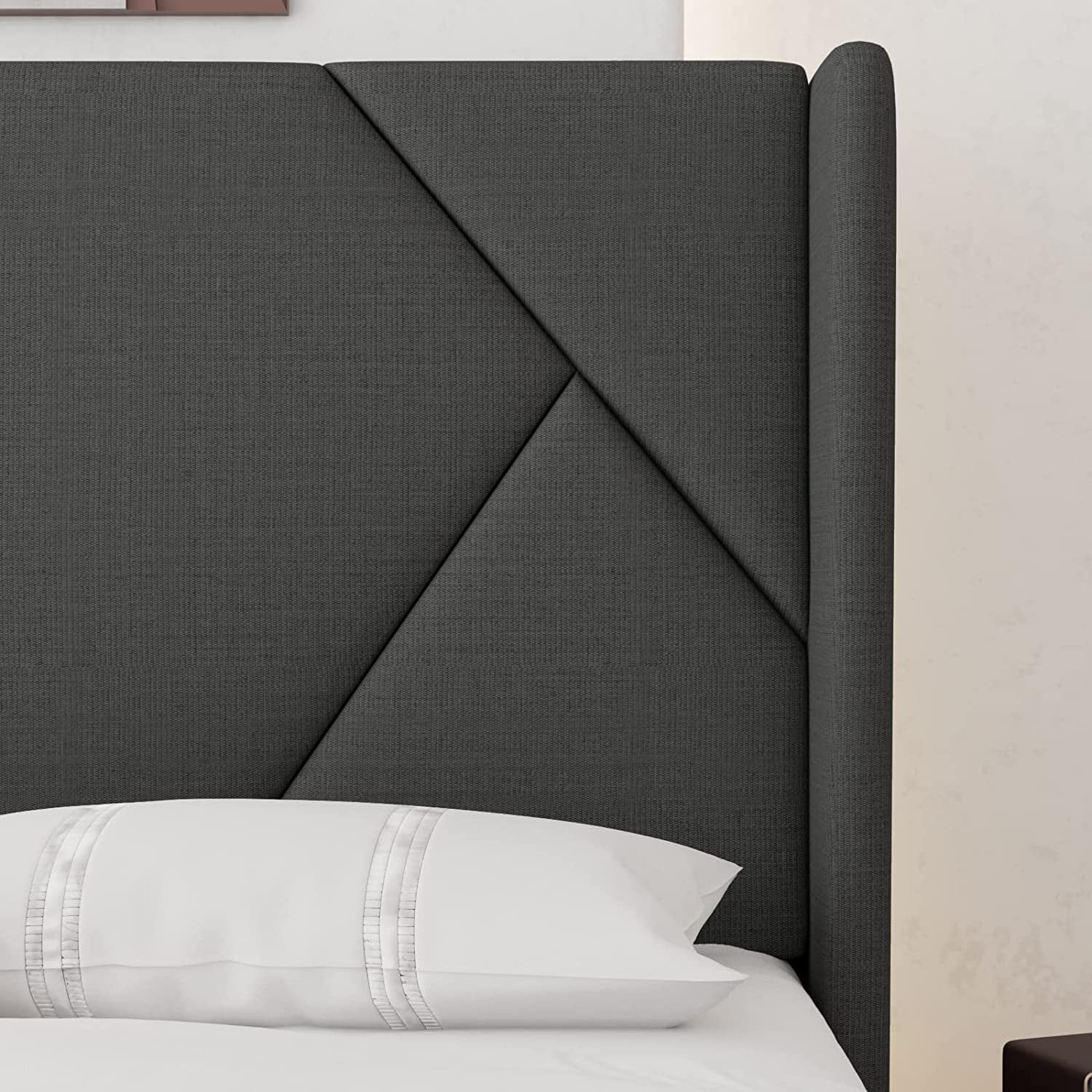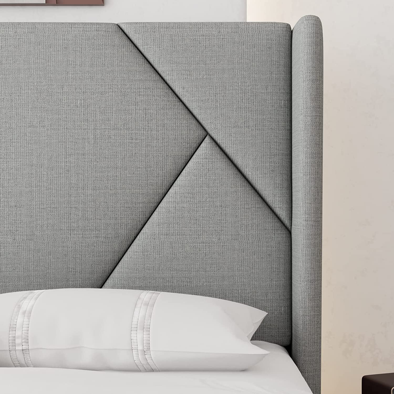 Benjara Asir King Size Bed, Geometric Panel Headboard, Modern Gray Wood Finish