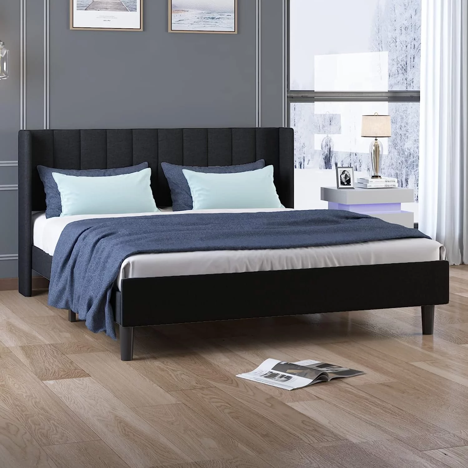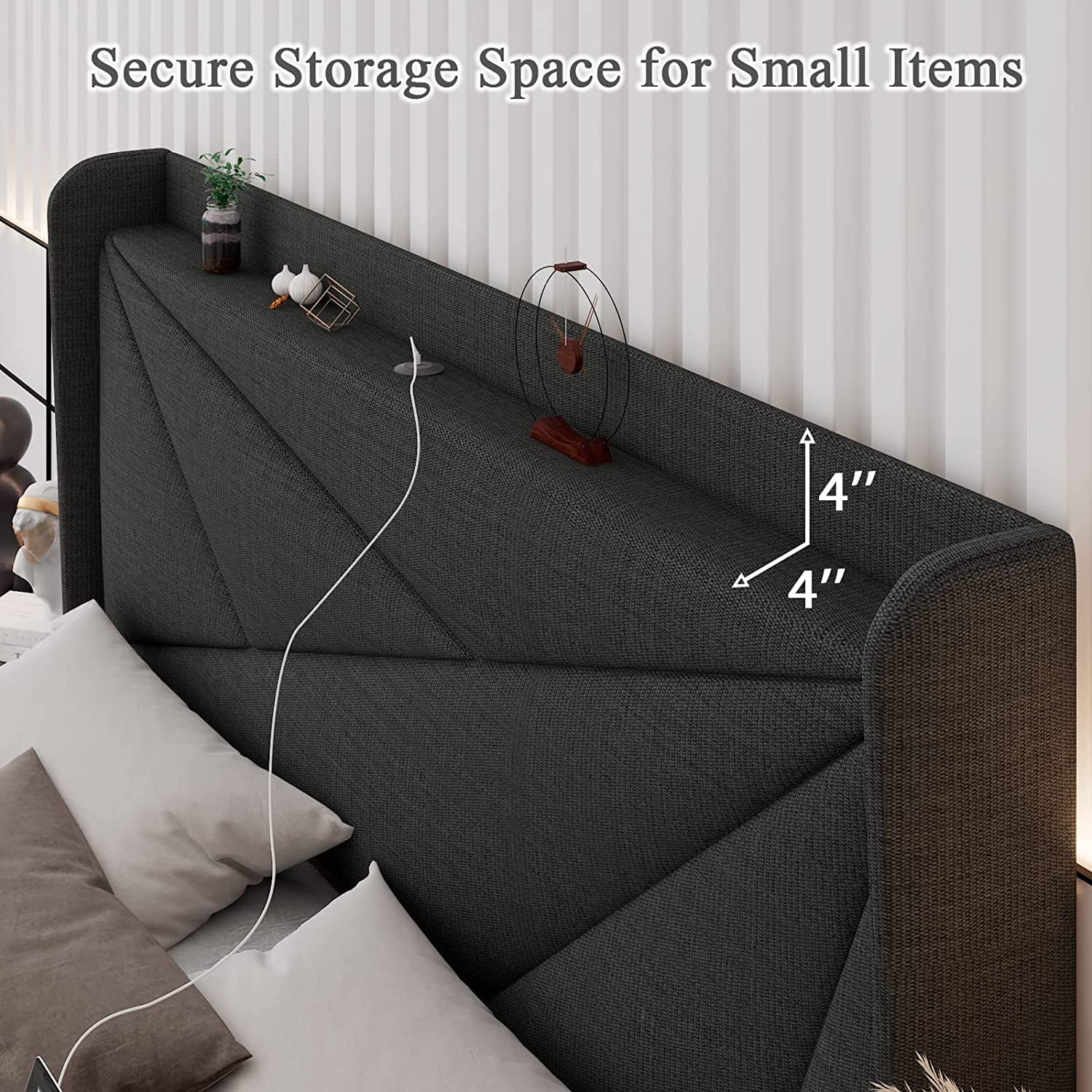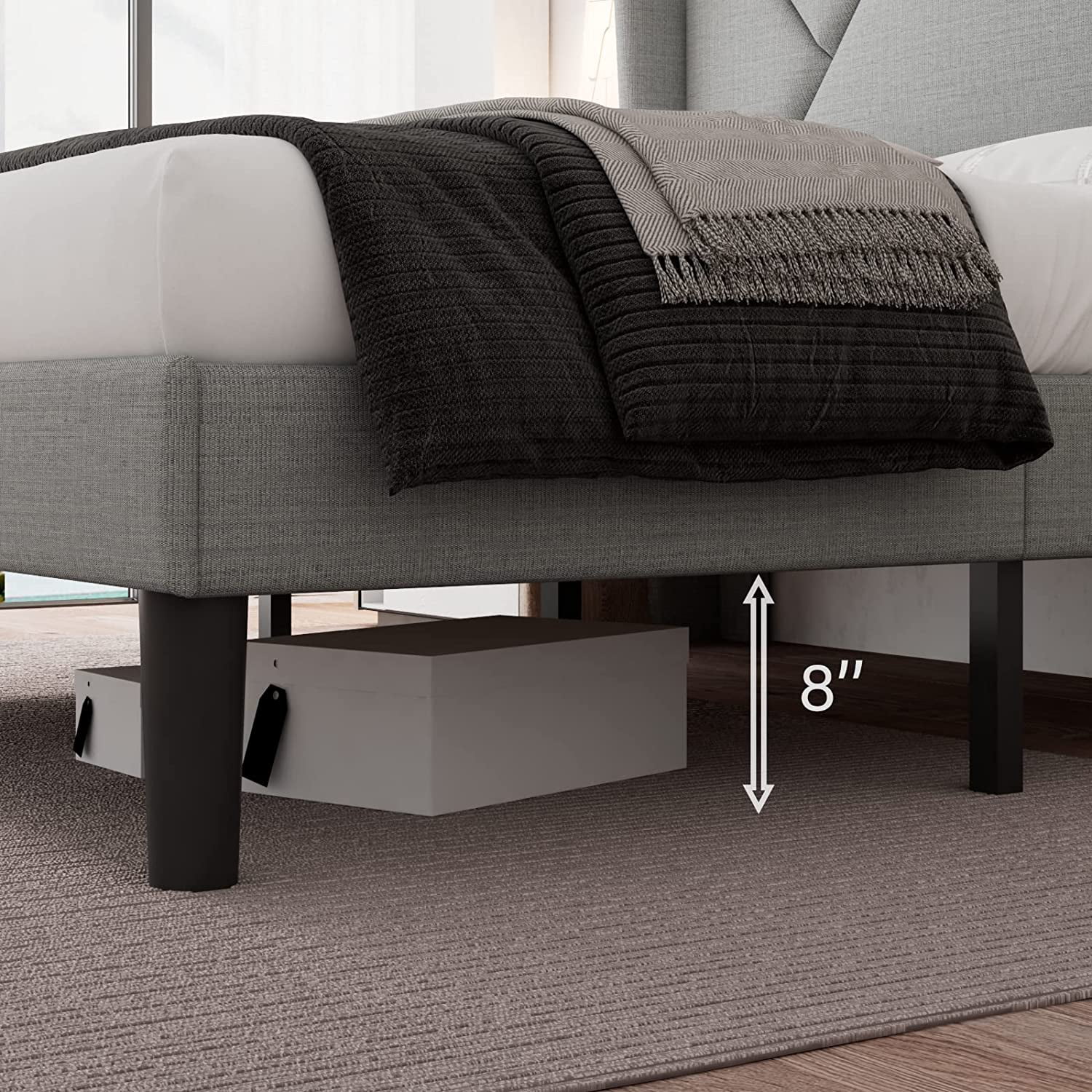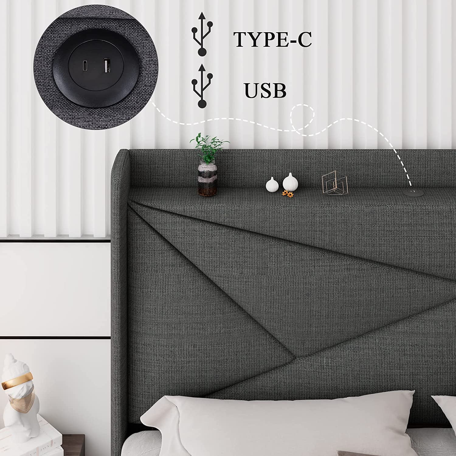Benjara Asir King Size Bed, Geometric Panel Headboard, Modern Gray Wood Finish