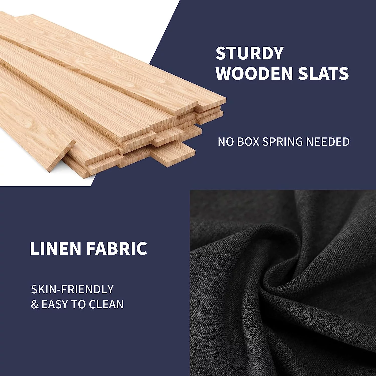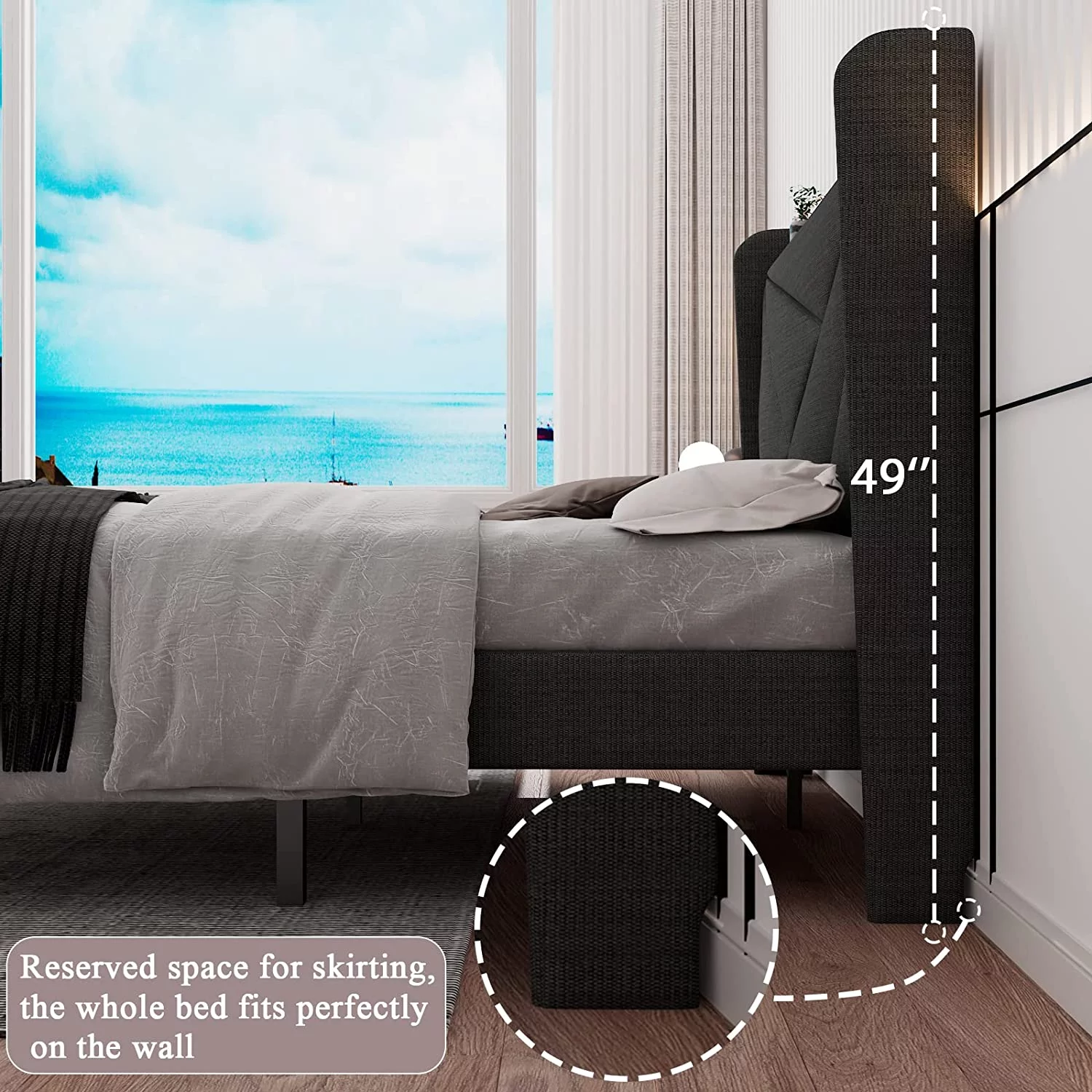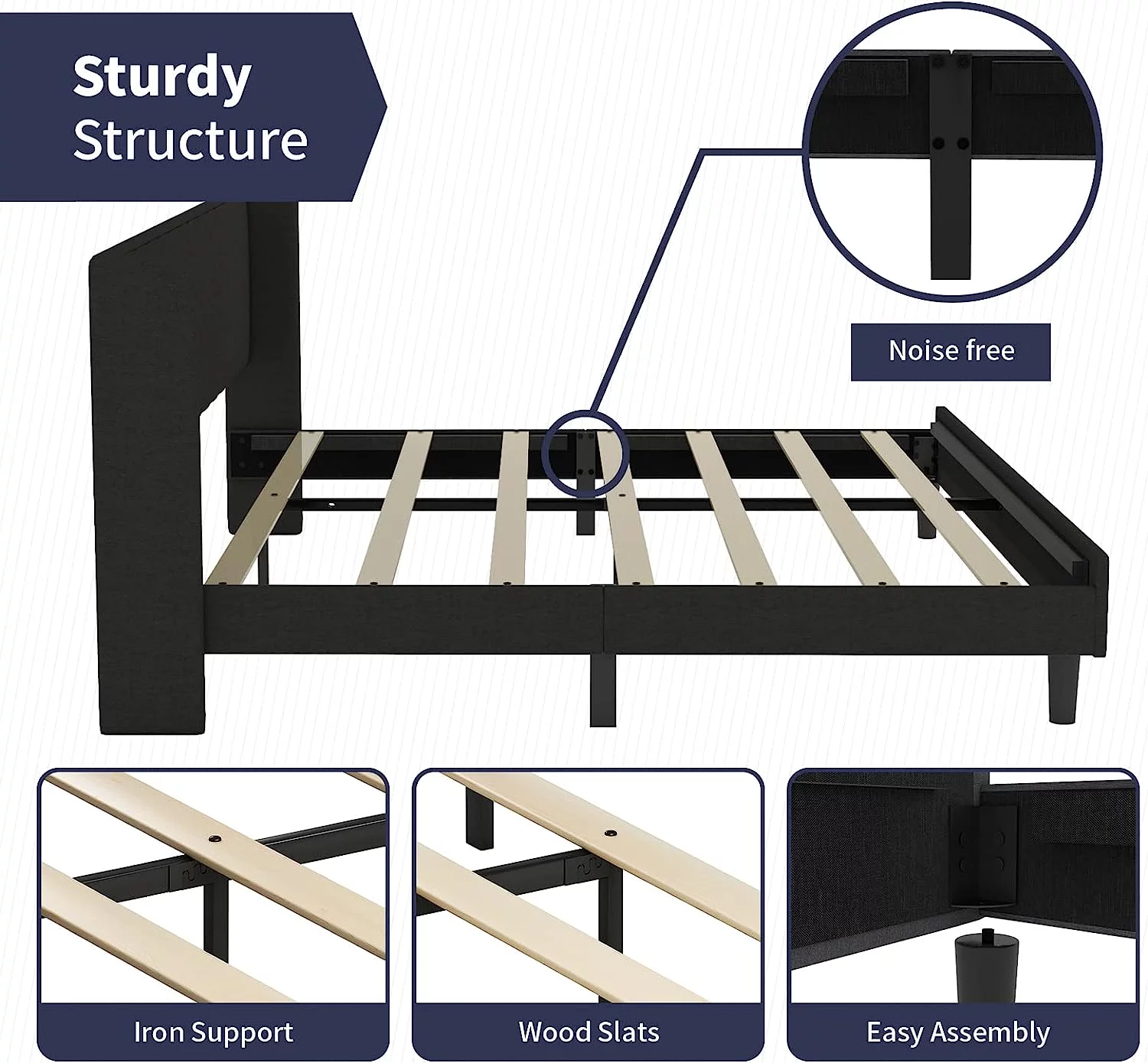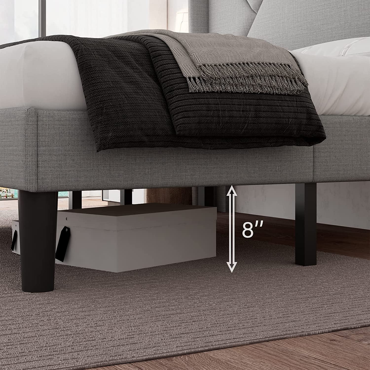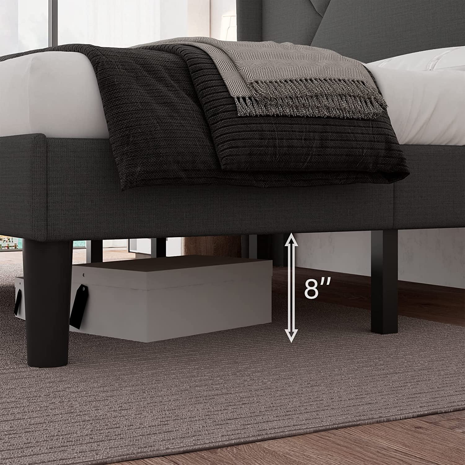 Benjara Asir King Size Bed, Geometric Panel Headboard, Modern Gray Wood Finish