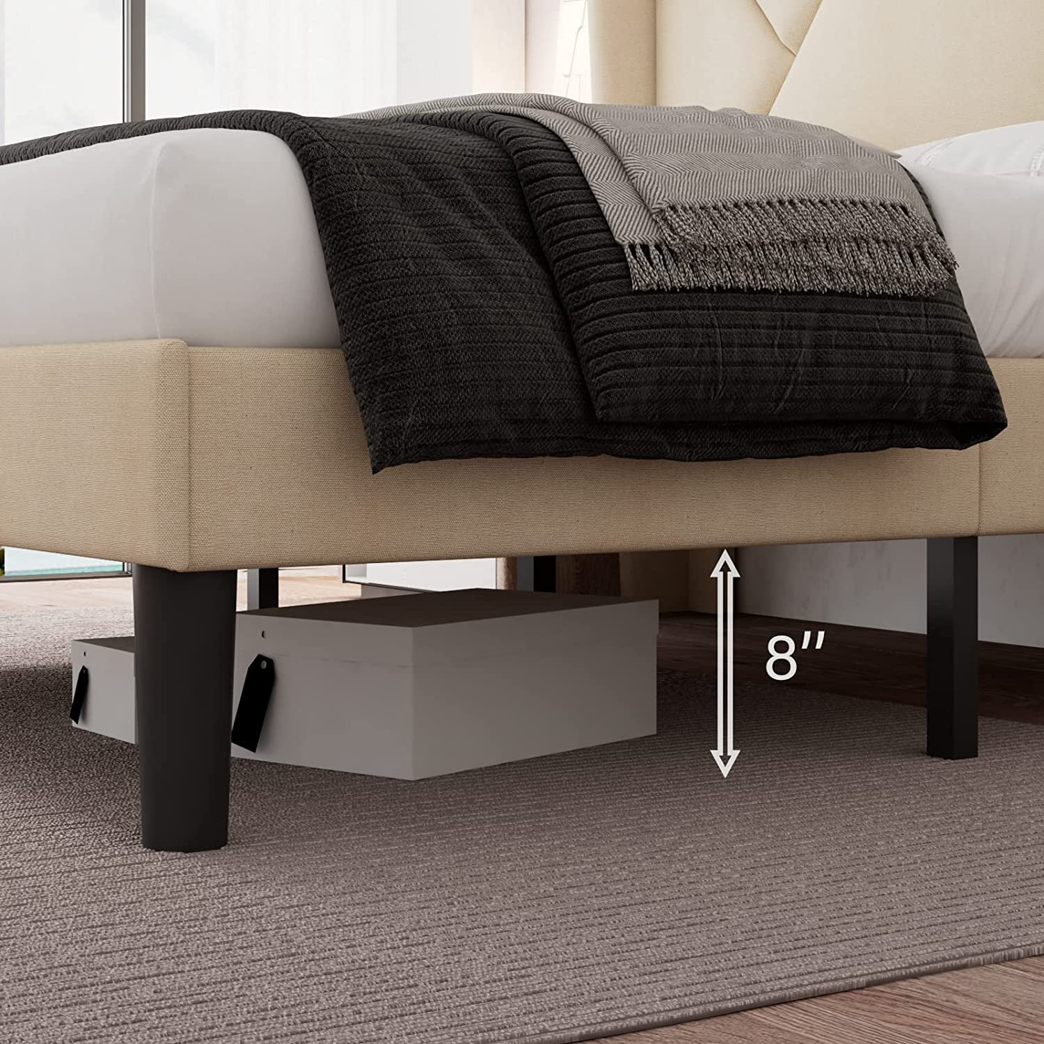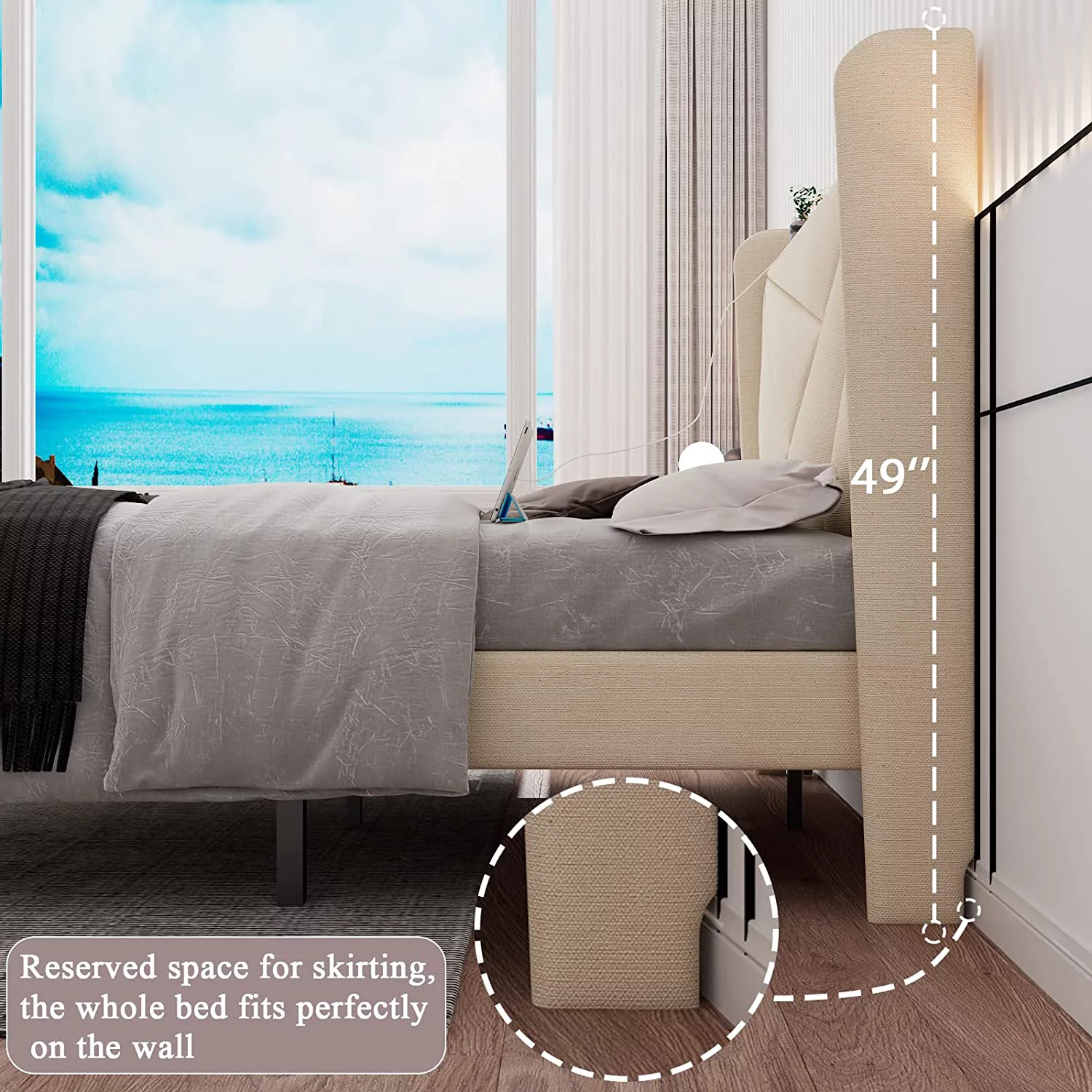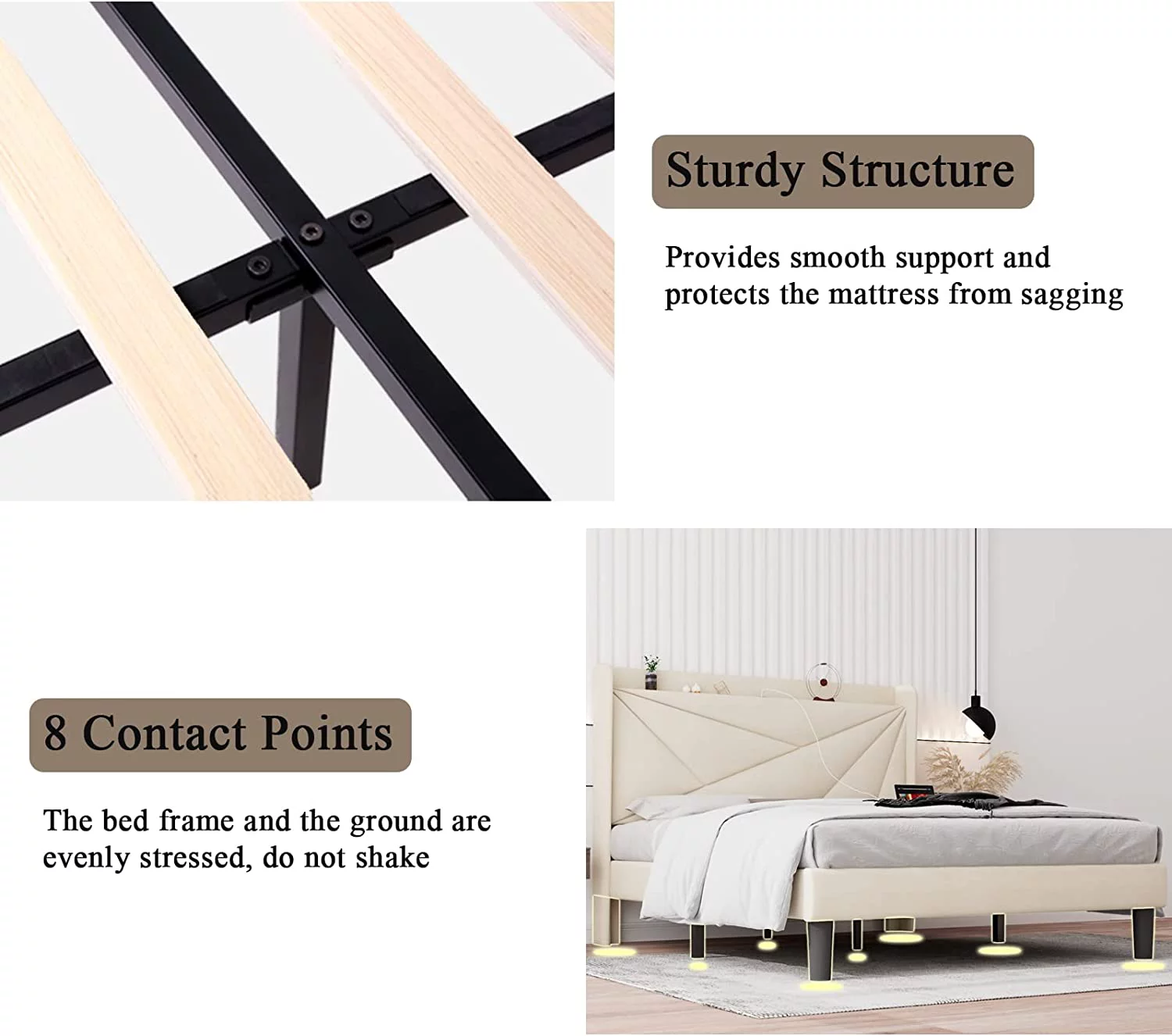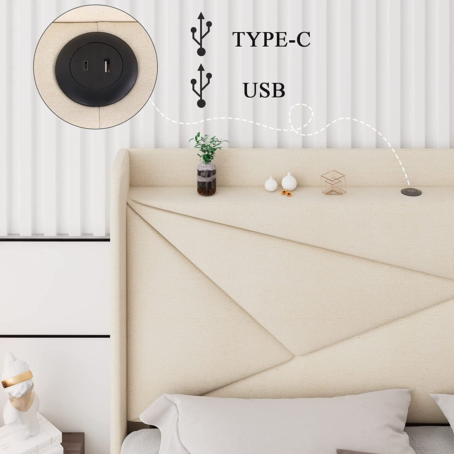 Benjara Asir Queen Size Bed, Geometric Panel Headboard, Modern White Wood Finish