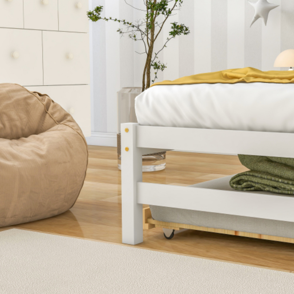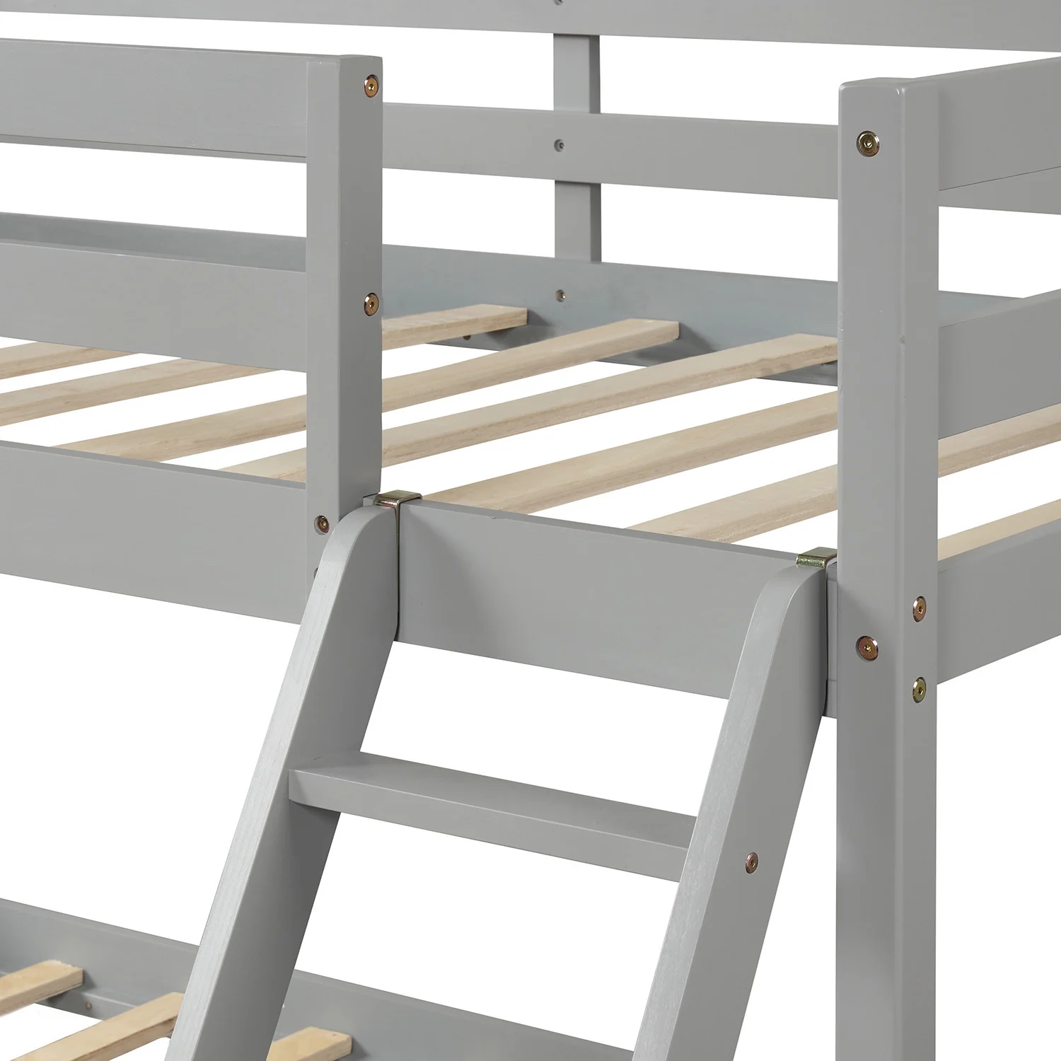 Gewnee Pine Wood Twin Over Full Convertible Bunk Bed with Ladder and Guardrailing for Kids,Gray