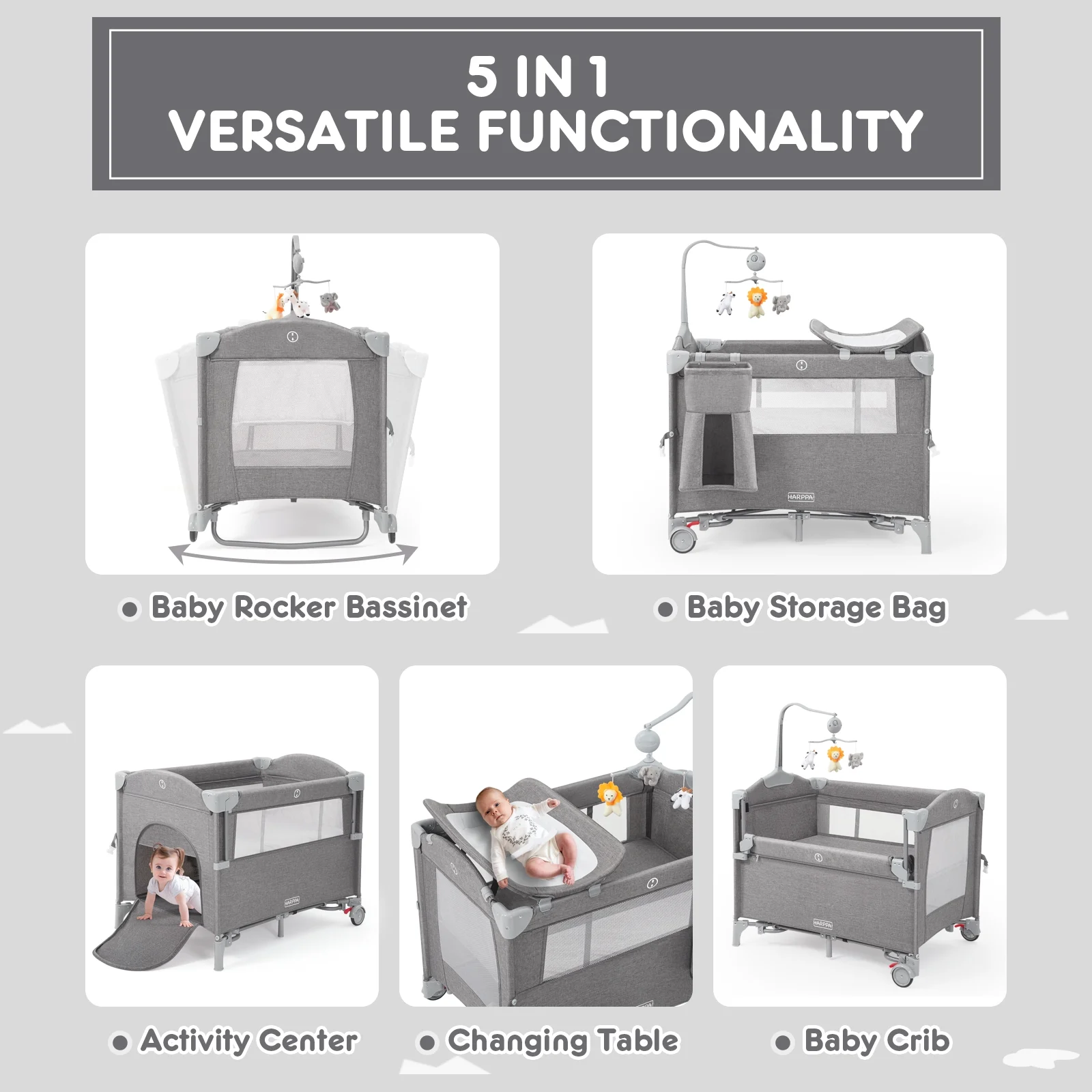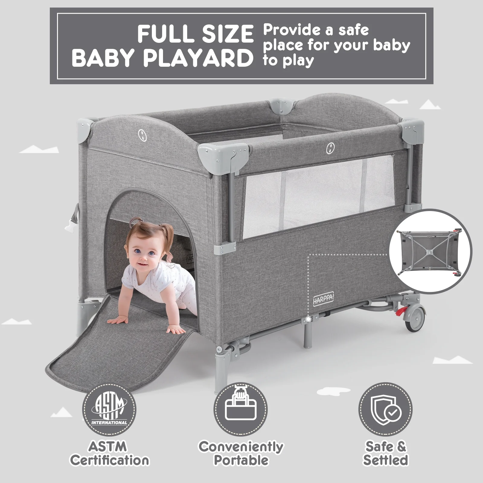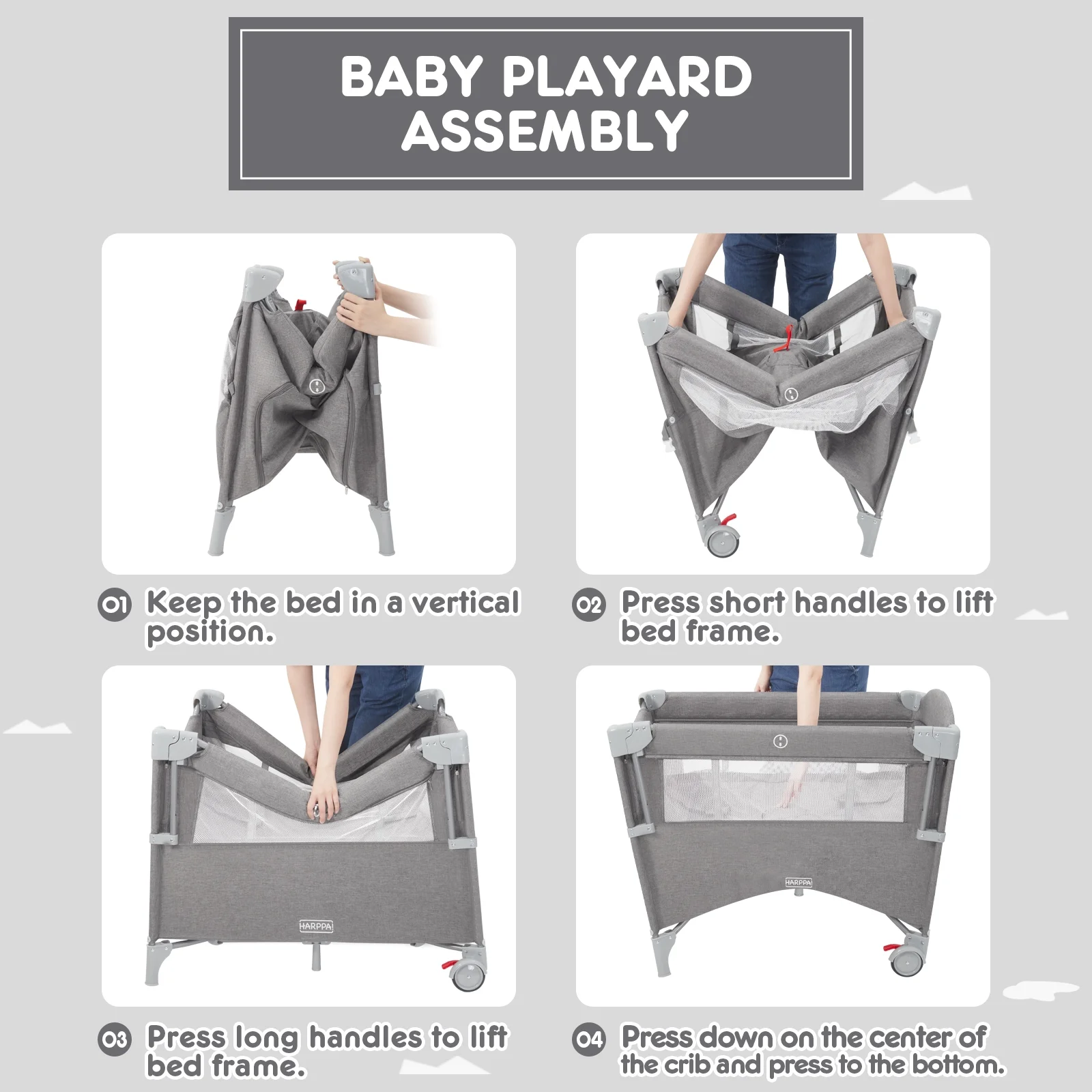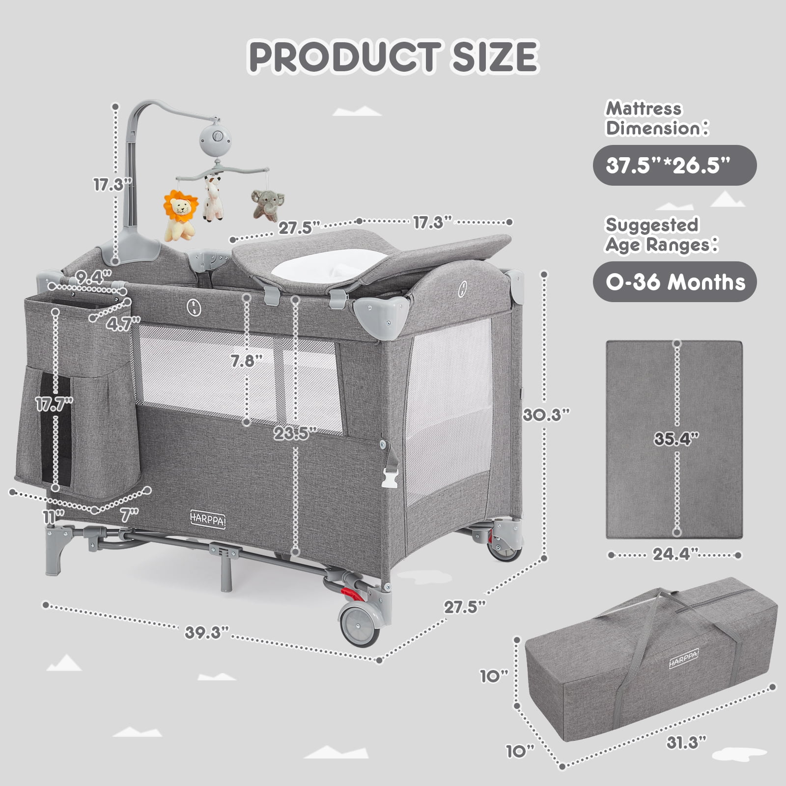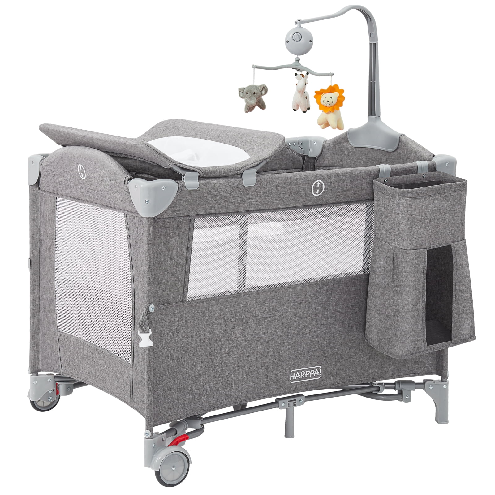 HARPPA 5 in 1 Portable Nursery Center Playards and Bassinet for Newborn to Toddler, Unisex, Gray