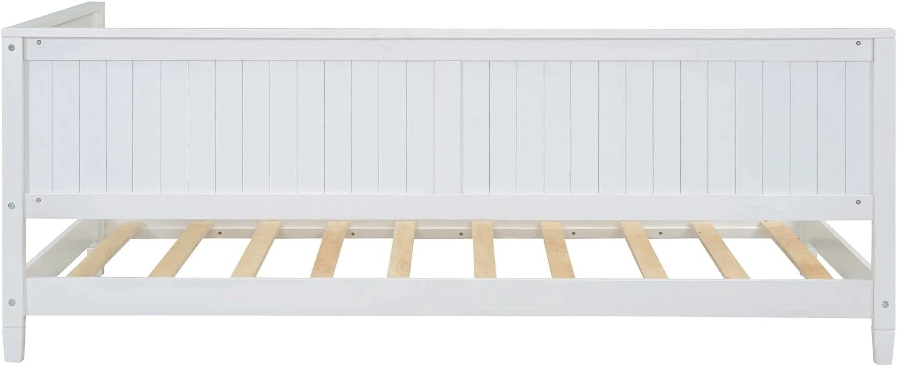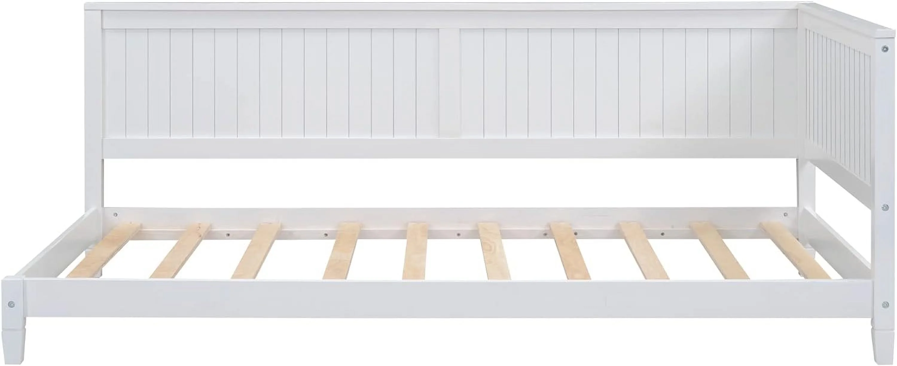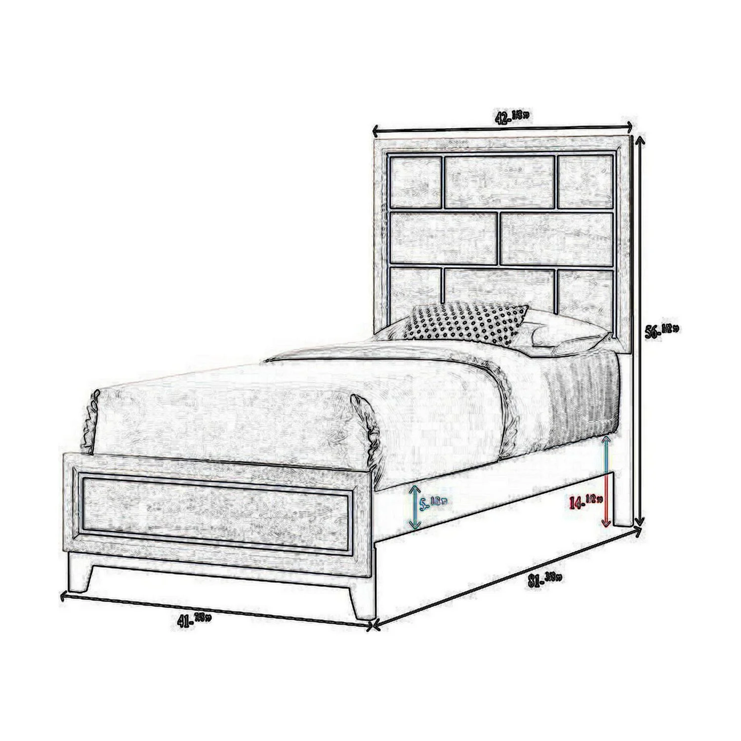 Benjara Asir Twin Size Bed, Geometric Panel Headboard, Modern White Wood Finish