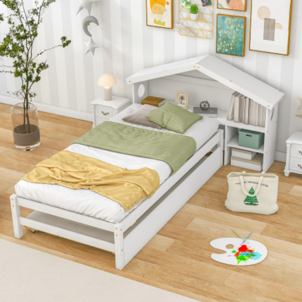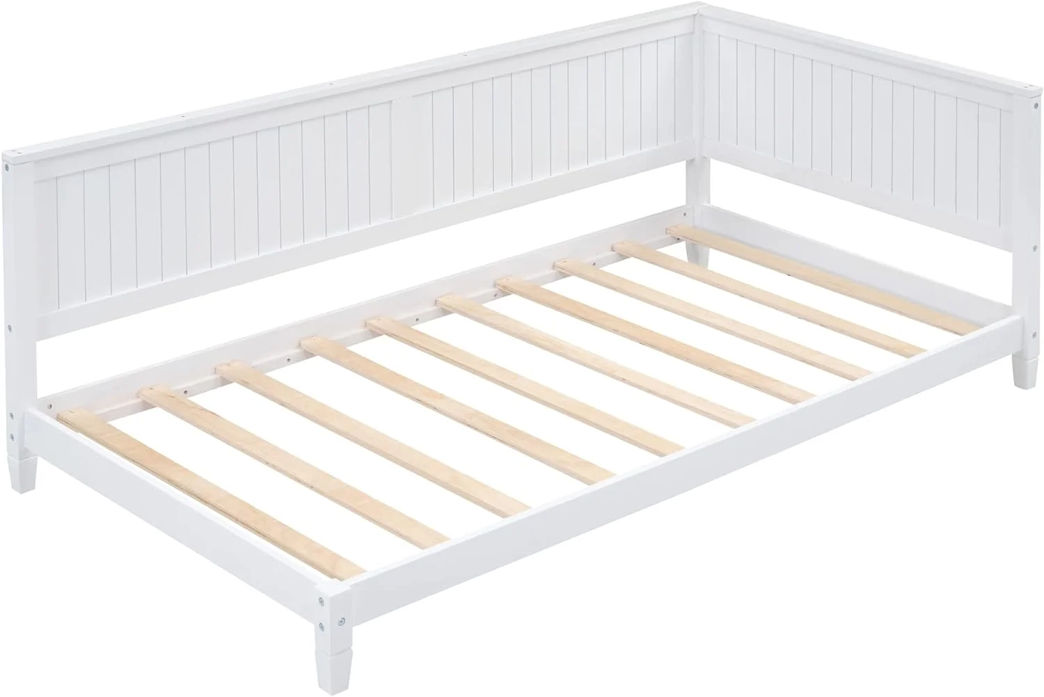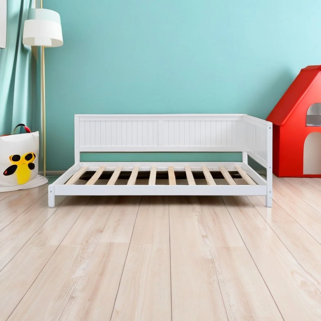 Benjara Asir Twin Size Bed, Geometric Panel Headboard, Modern White Wood Finish