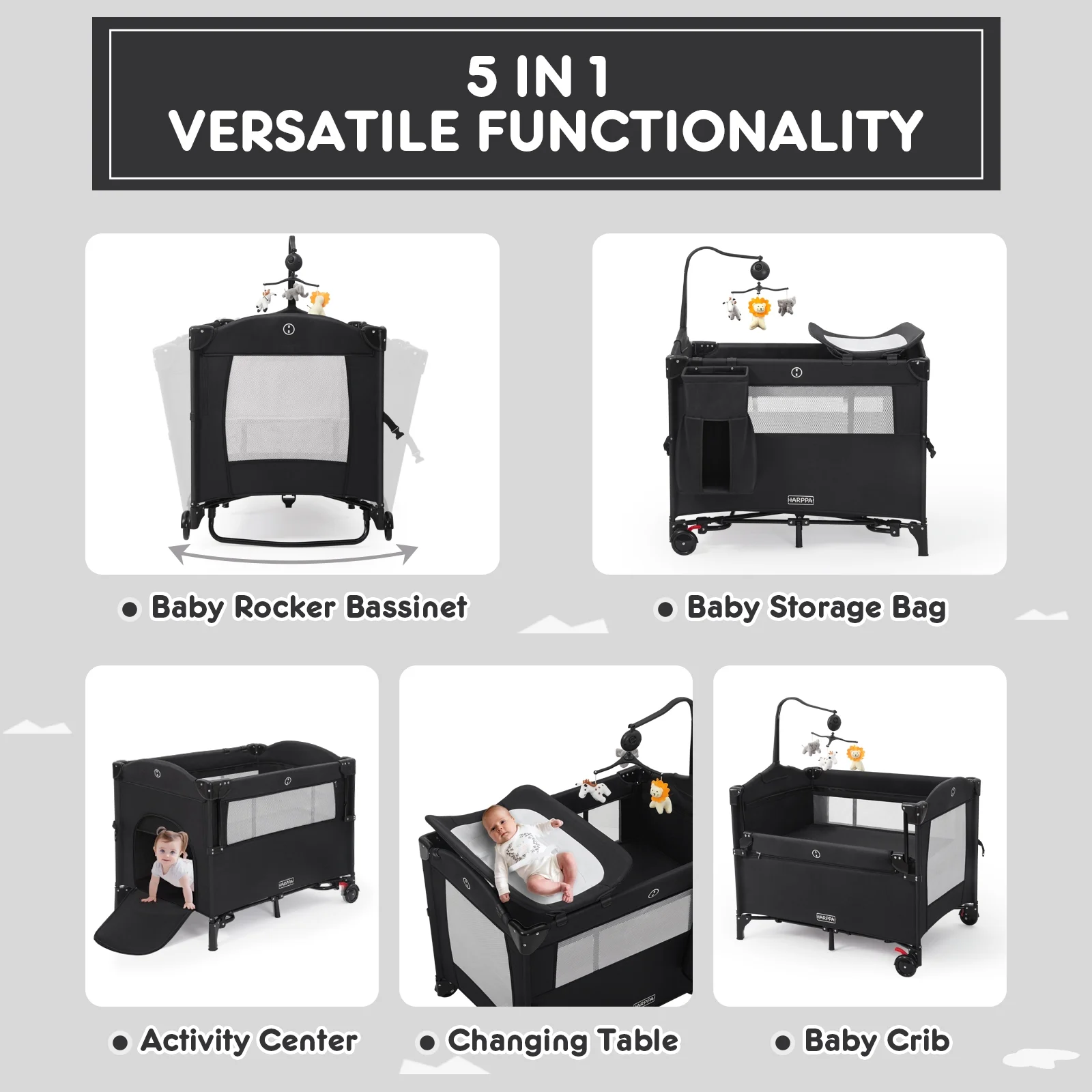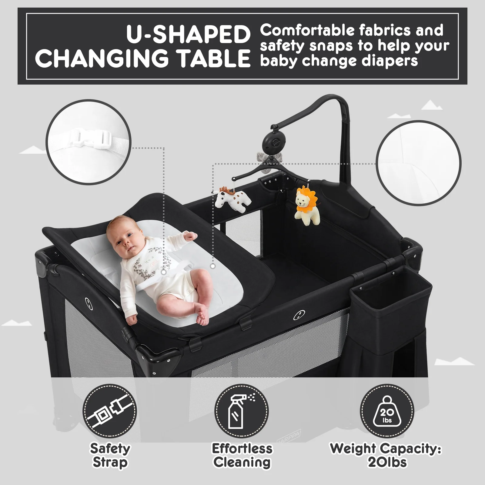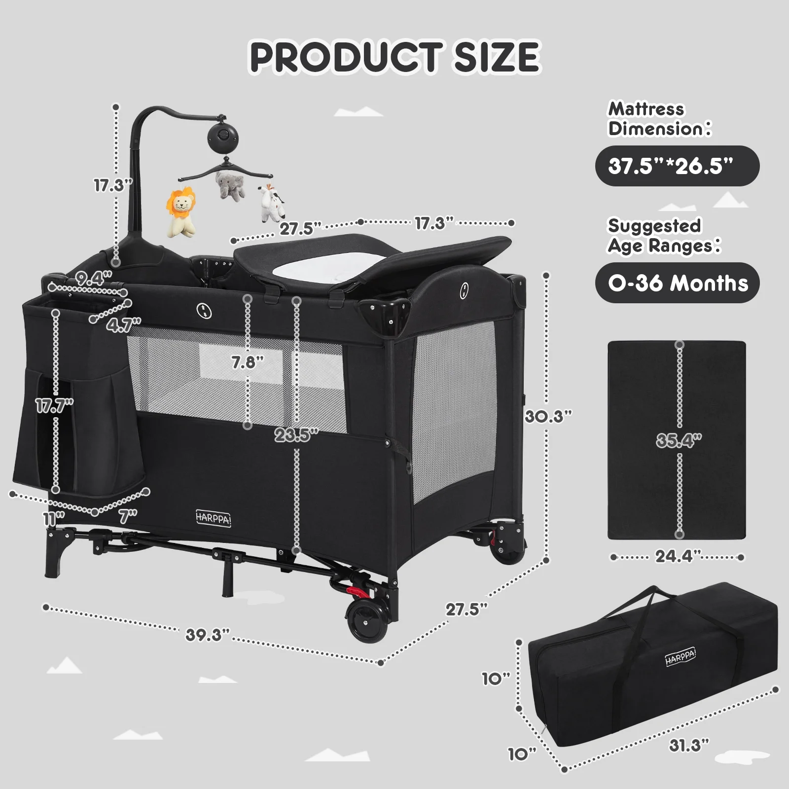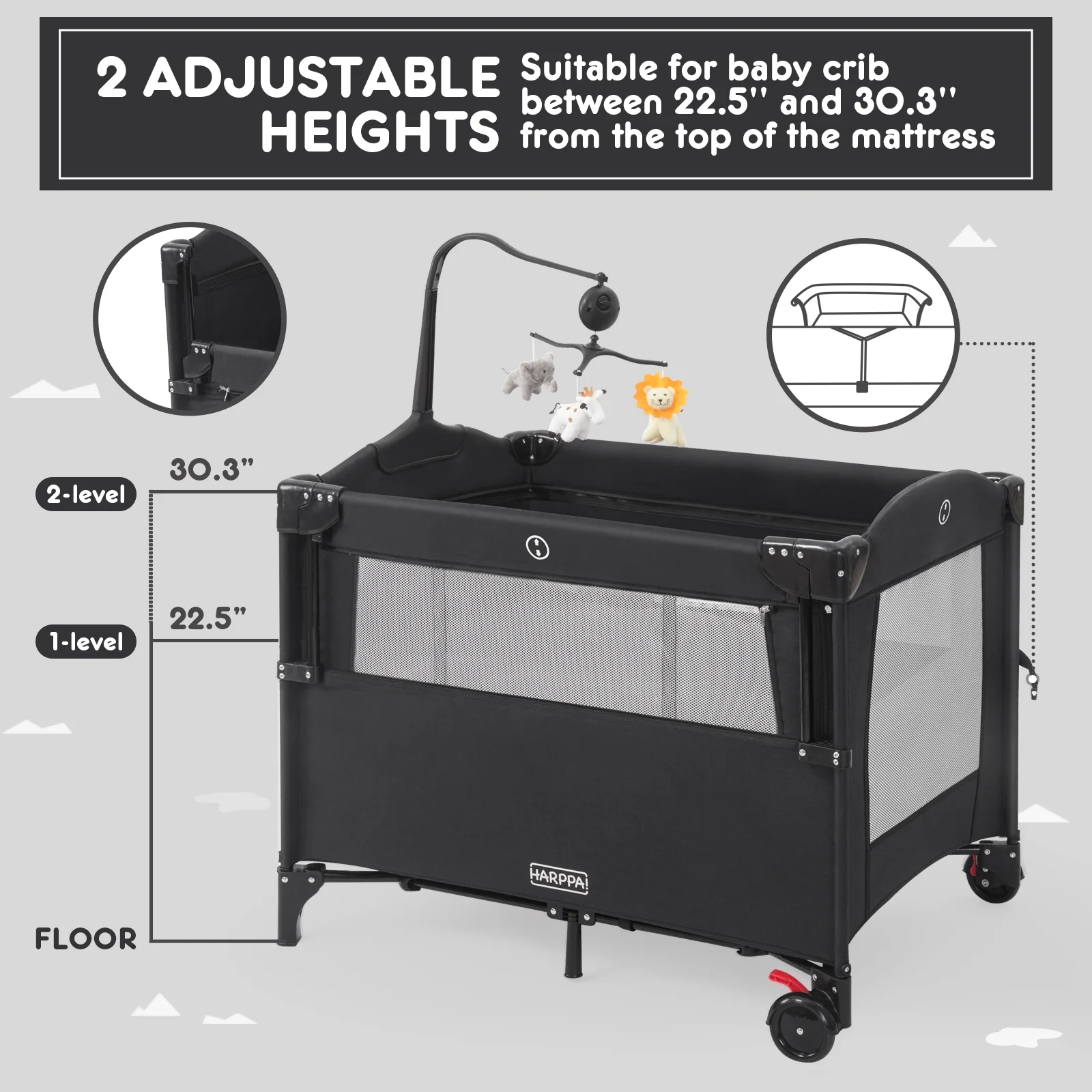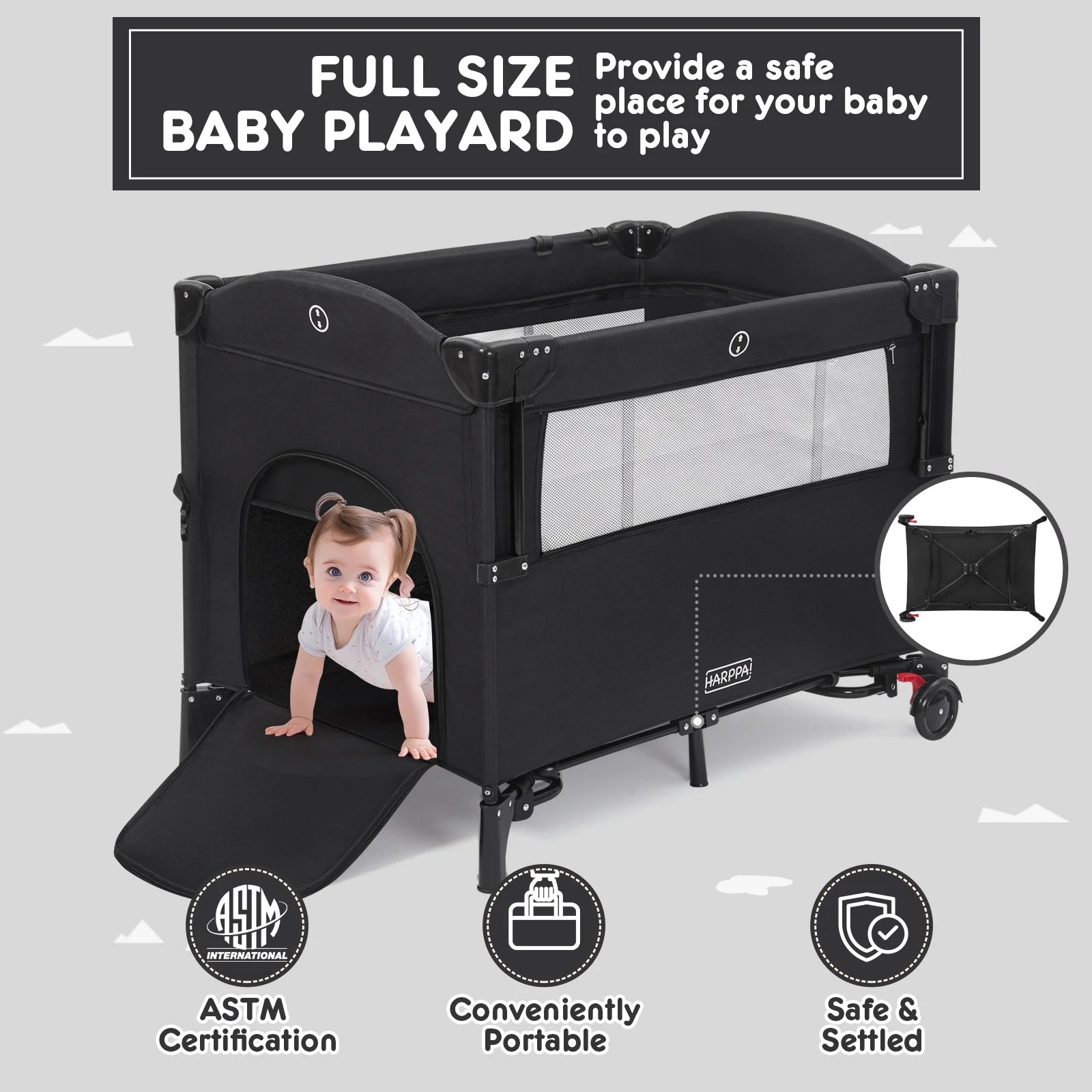 HARPPA 5 in 1 Portable Nursery Center Playards and Bassinet for Newborn to Toddler, Unisex, Black
