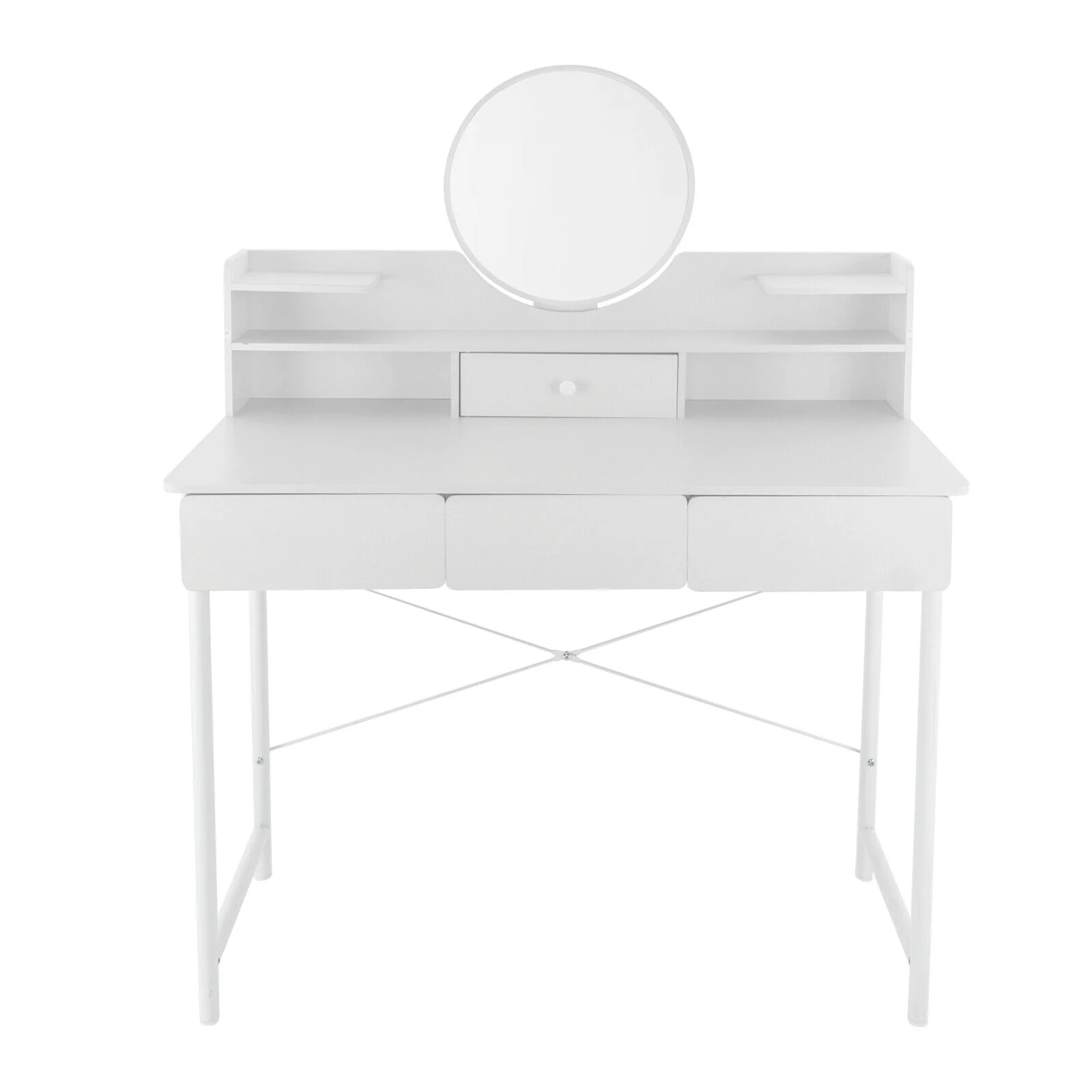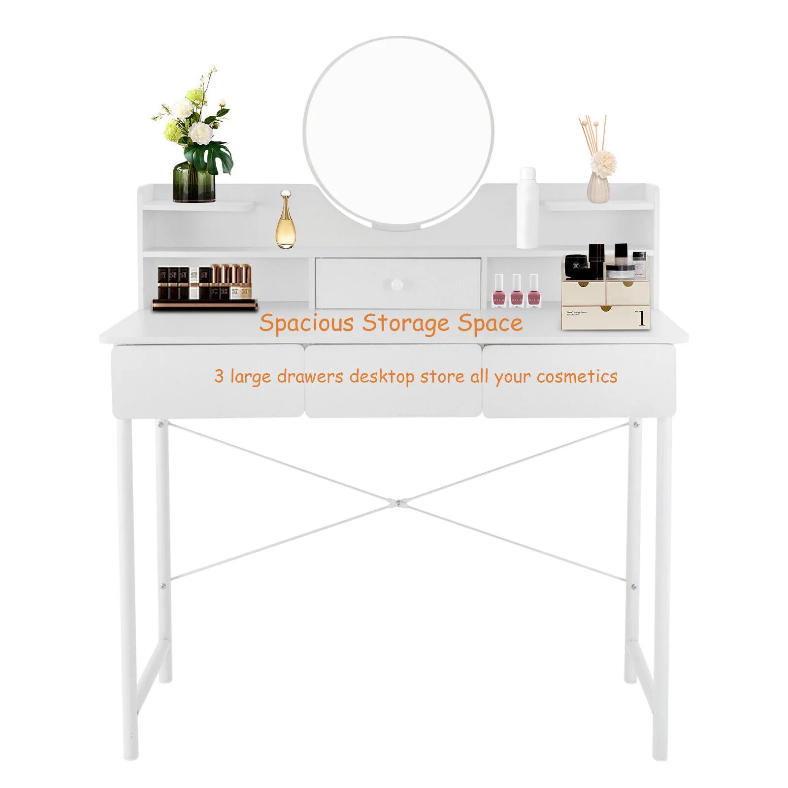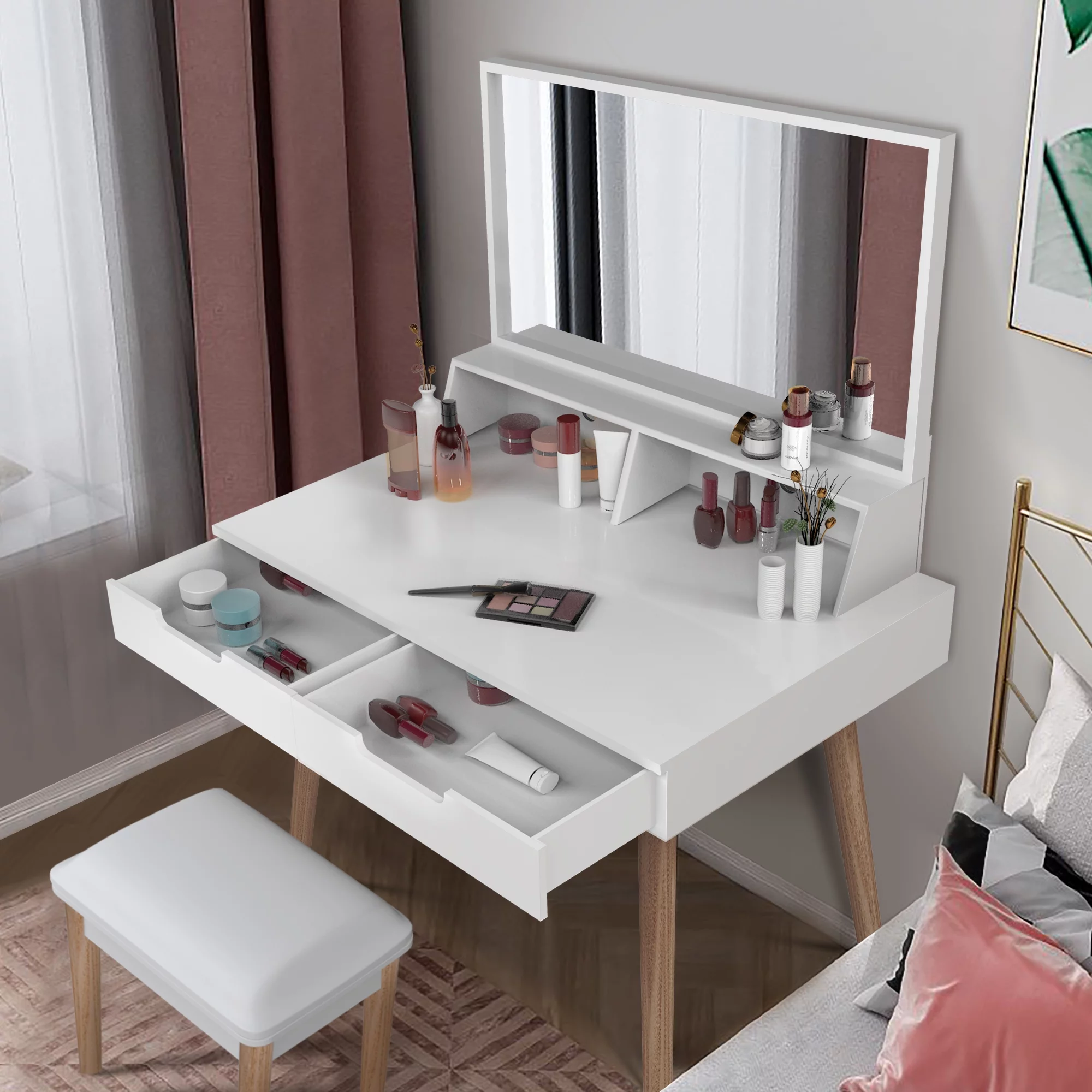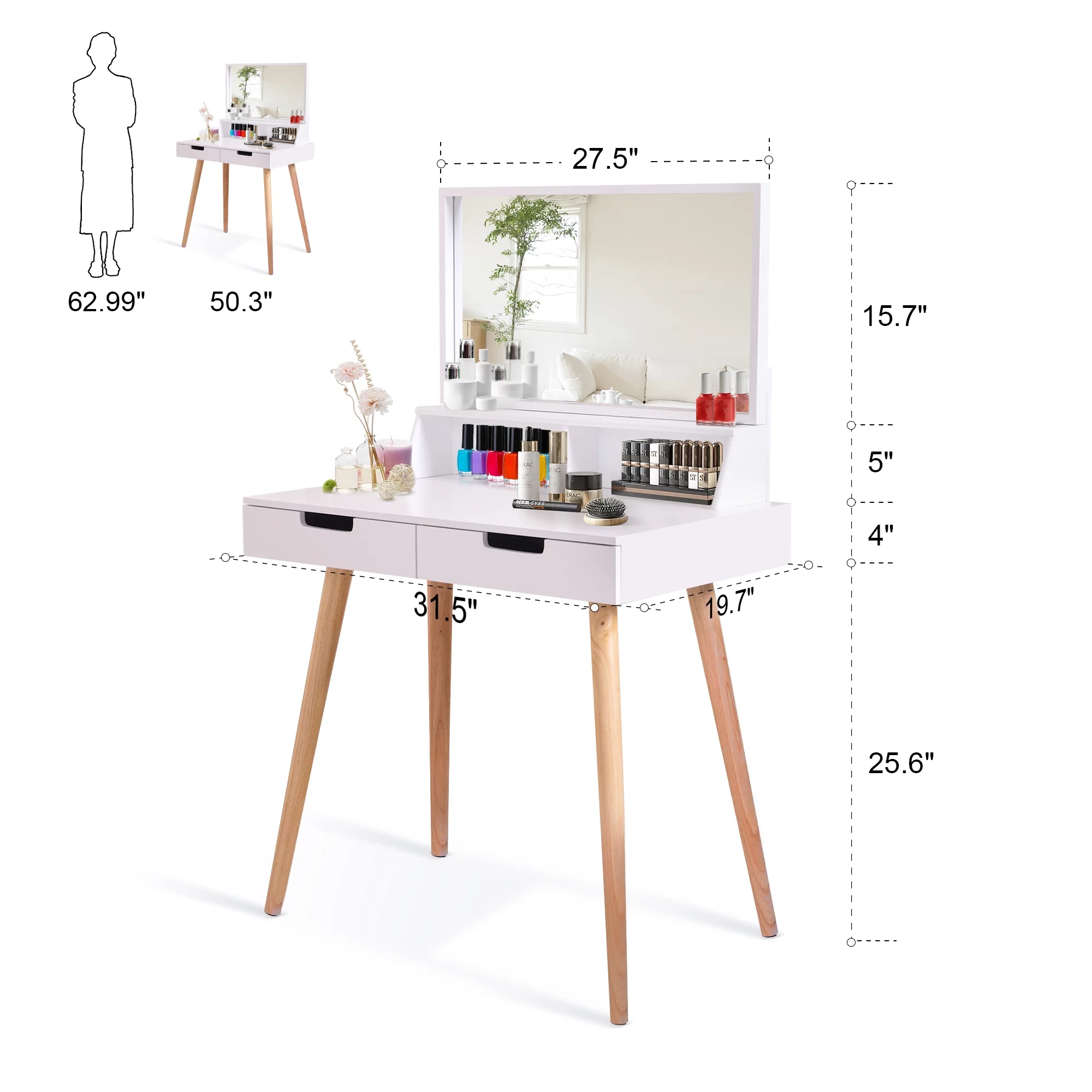 Facilehome Modern Vanity Table with Length Mirror Dressing Table with Drawers, White Finish