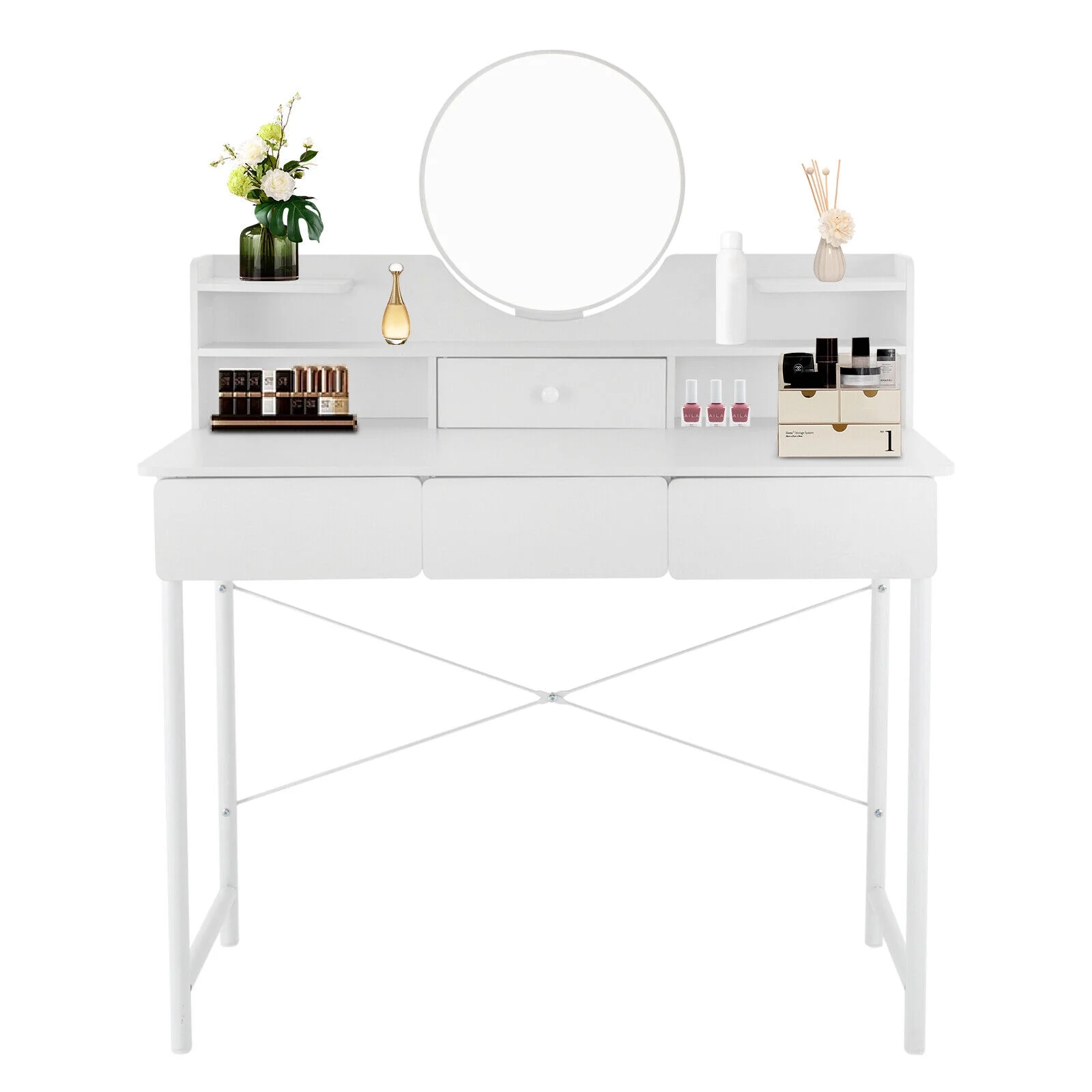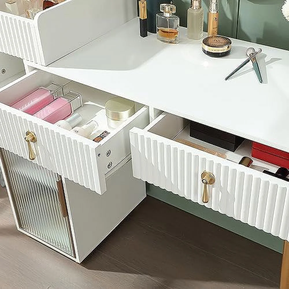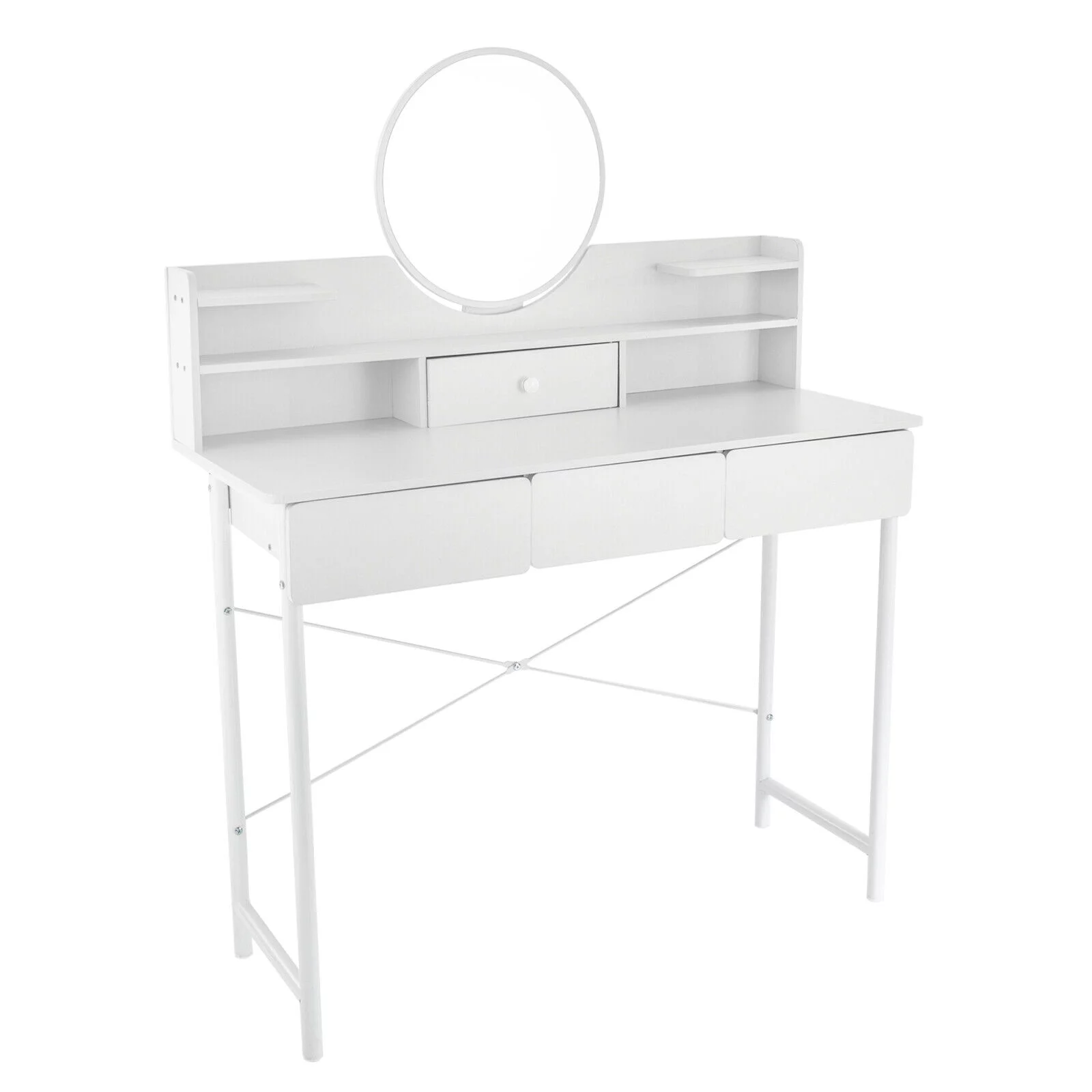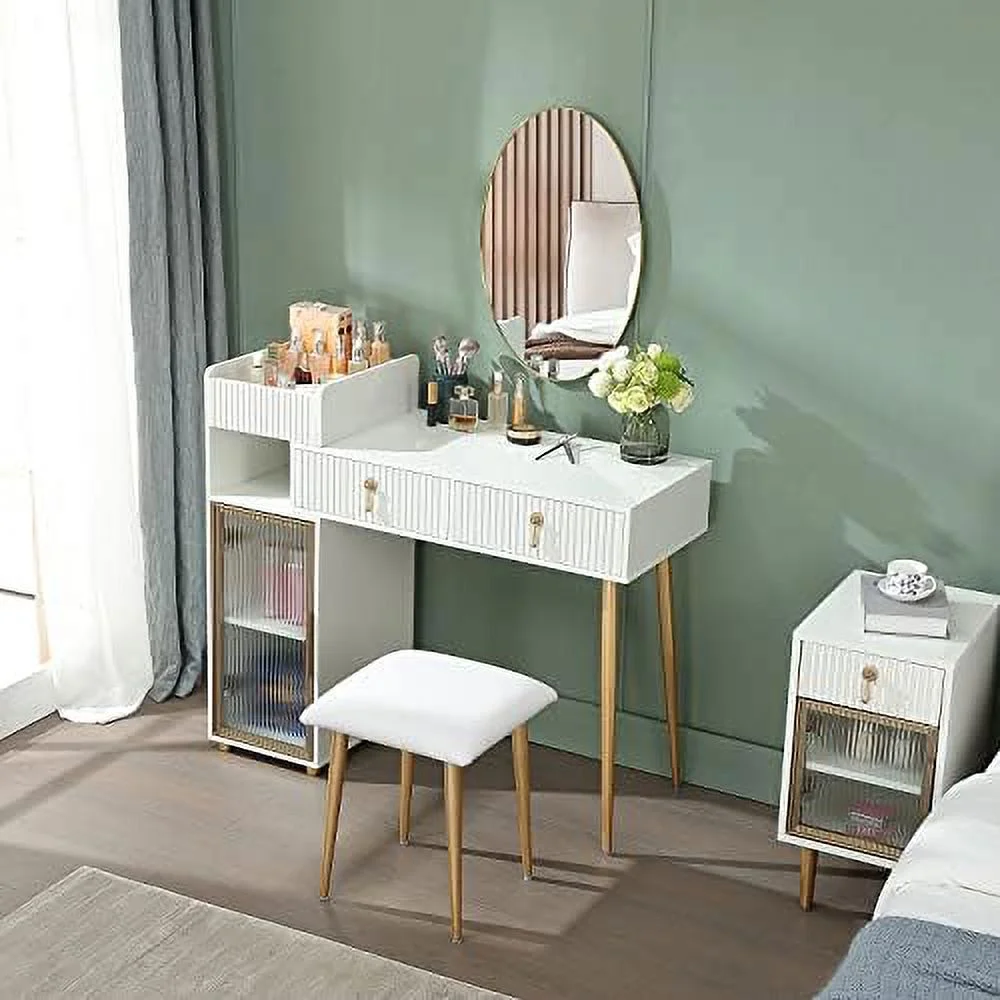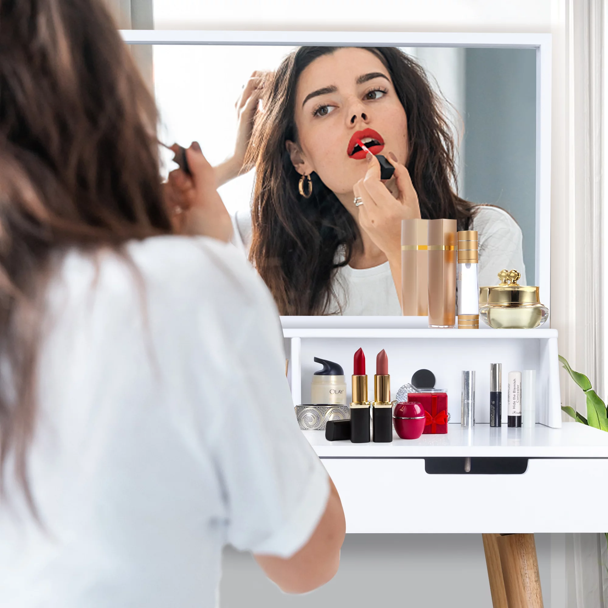 Facilehome Modern Vanity Table with Length Mirror Dressing Table with Drawers, White Finish