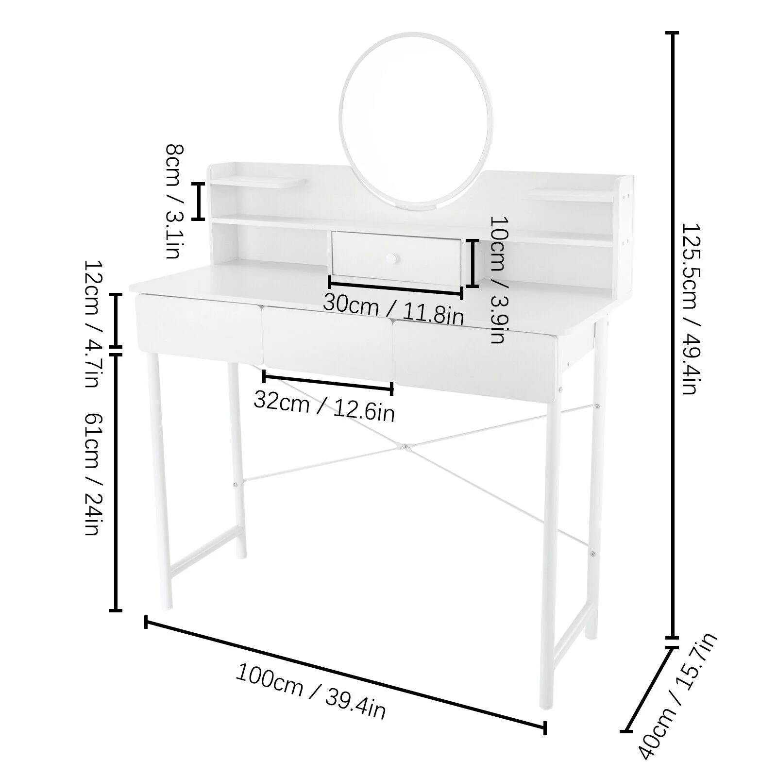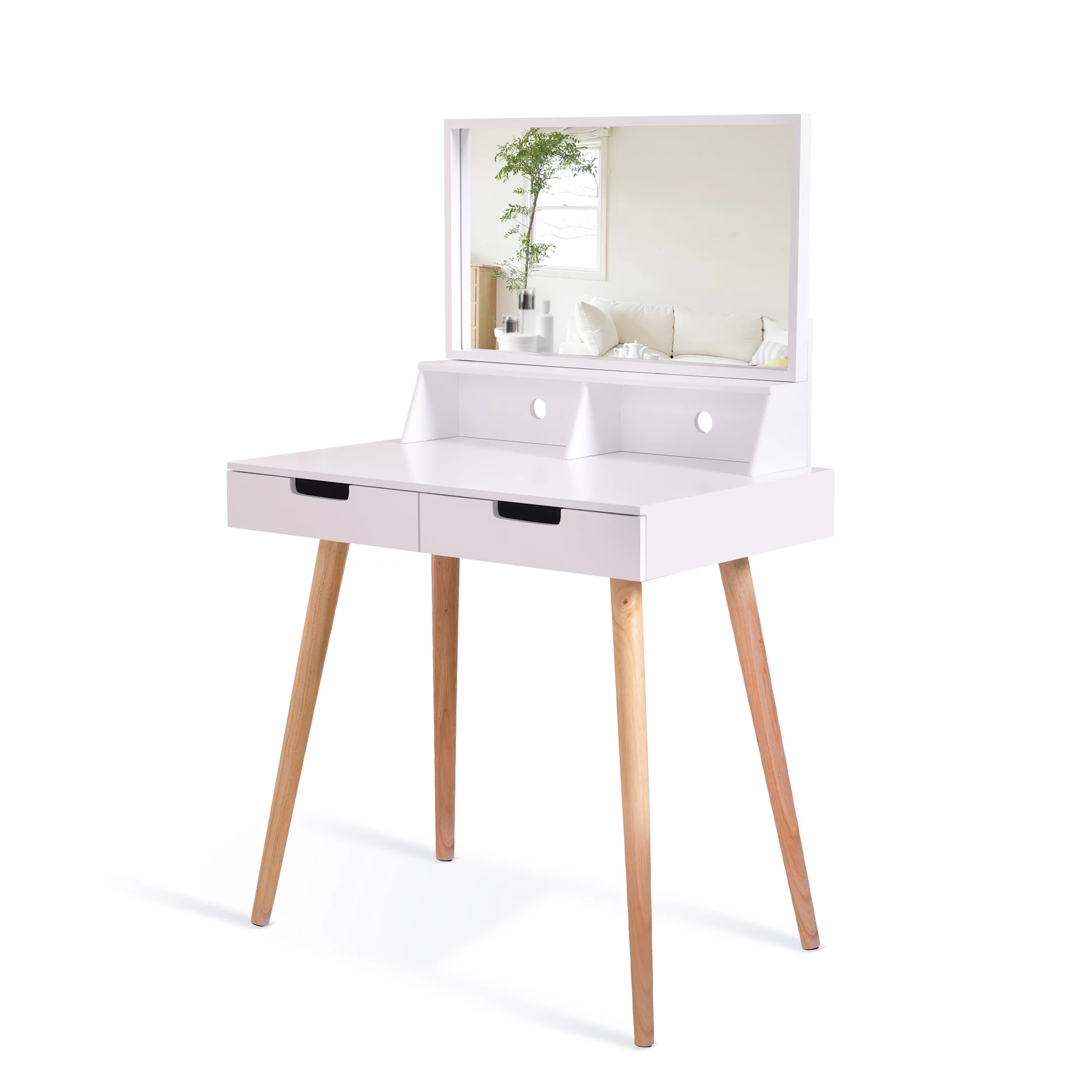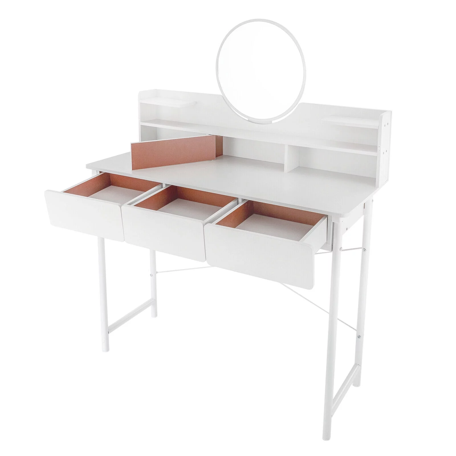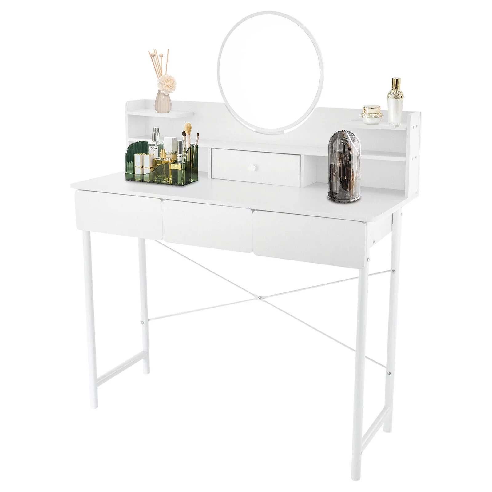 Facilehome Modern Vanity Table with Length Mirror Dressing Table with Drawers, White Finish