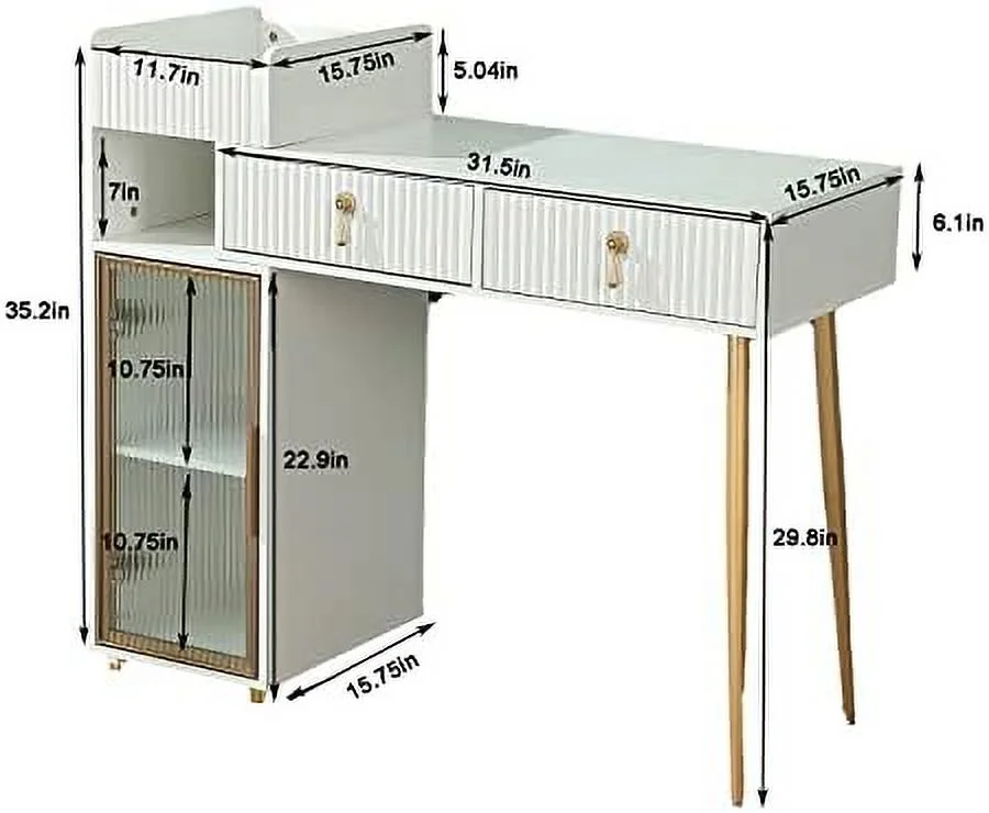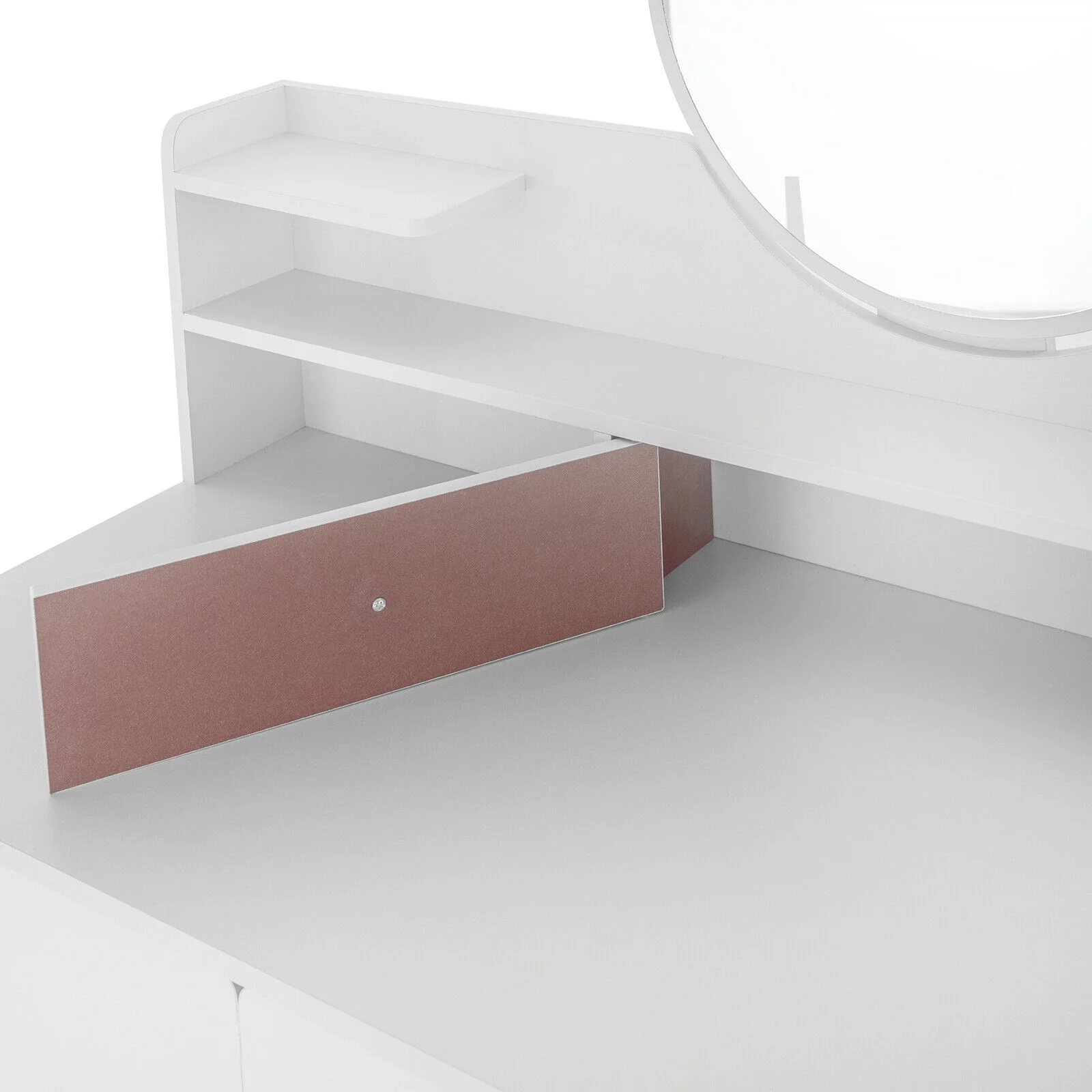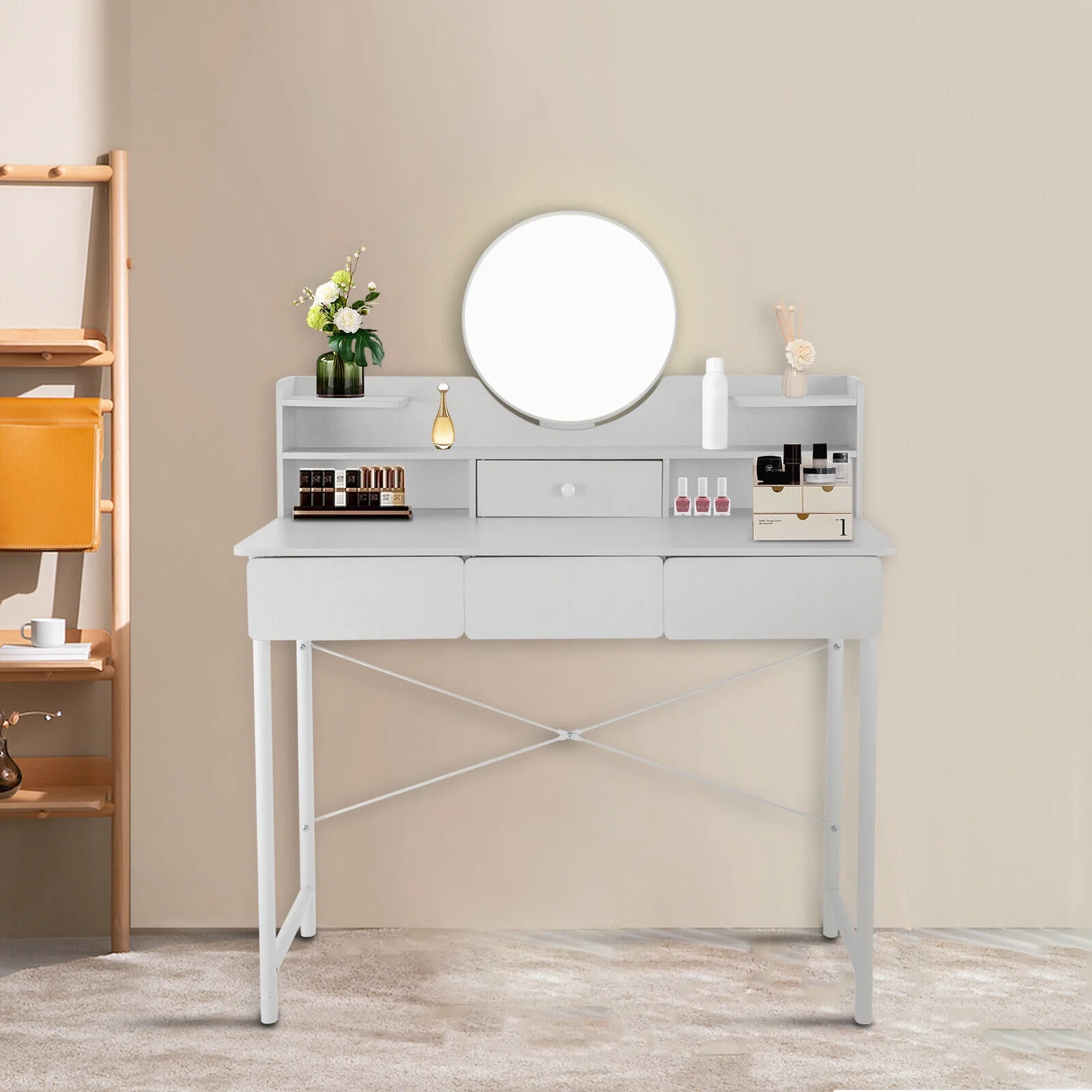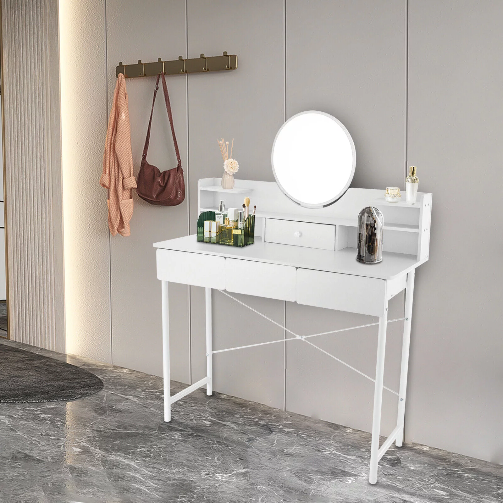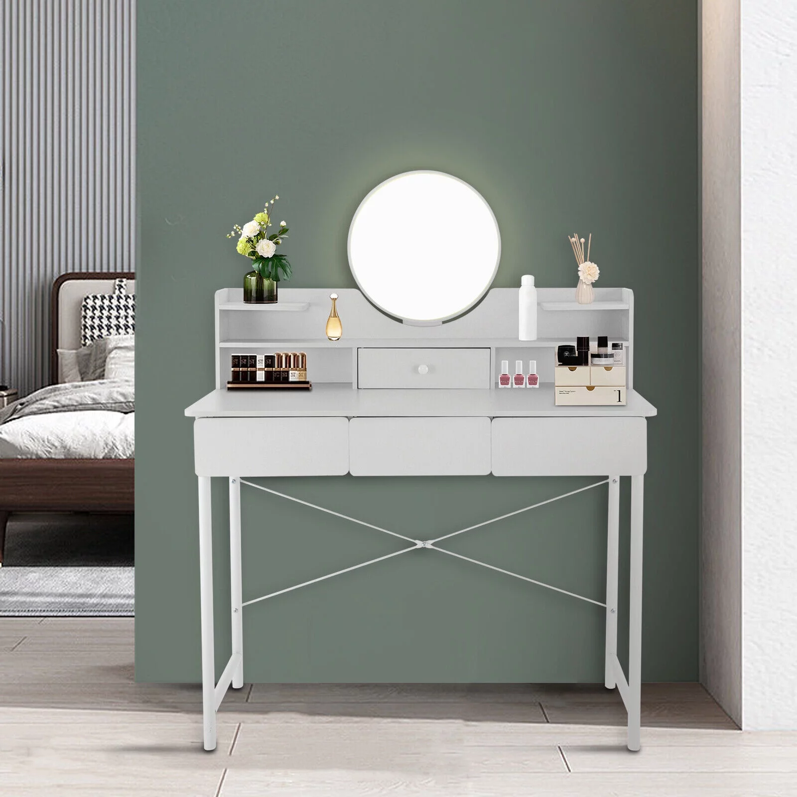 Facilehome Modern Vanity Table with Length Mirror Dressing Table with Drawers, White Finish