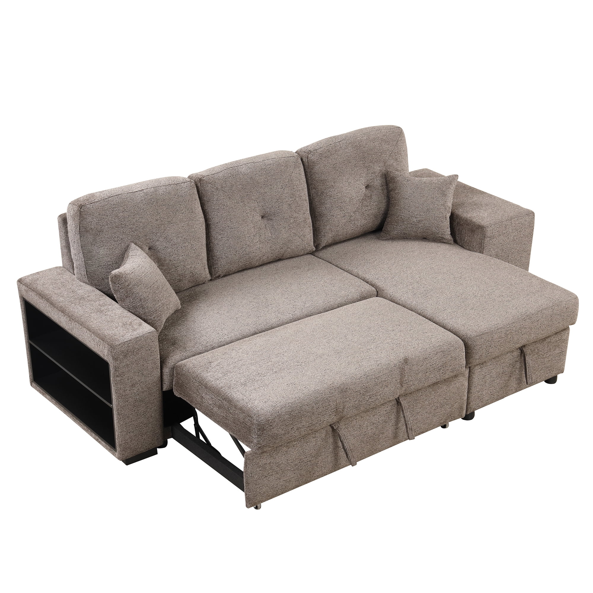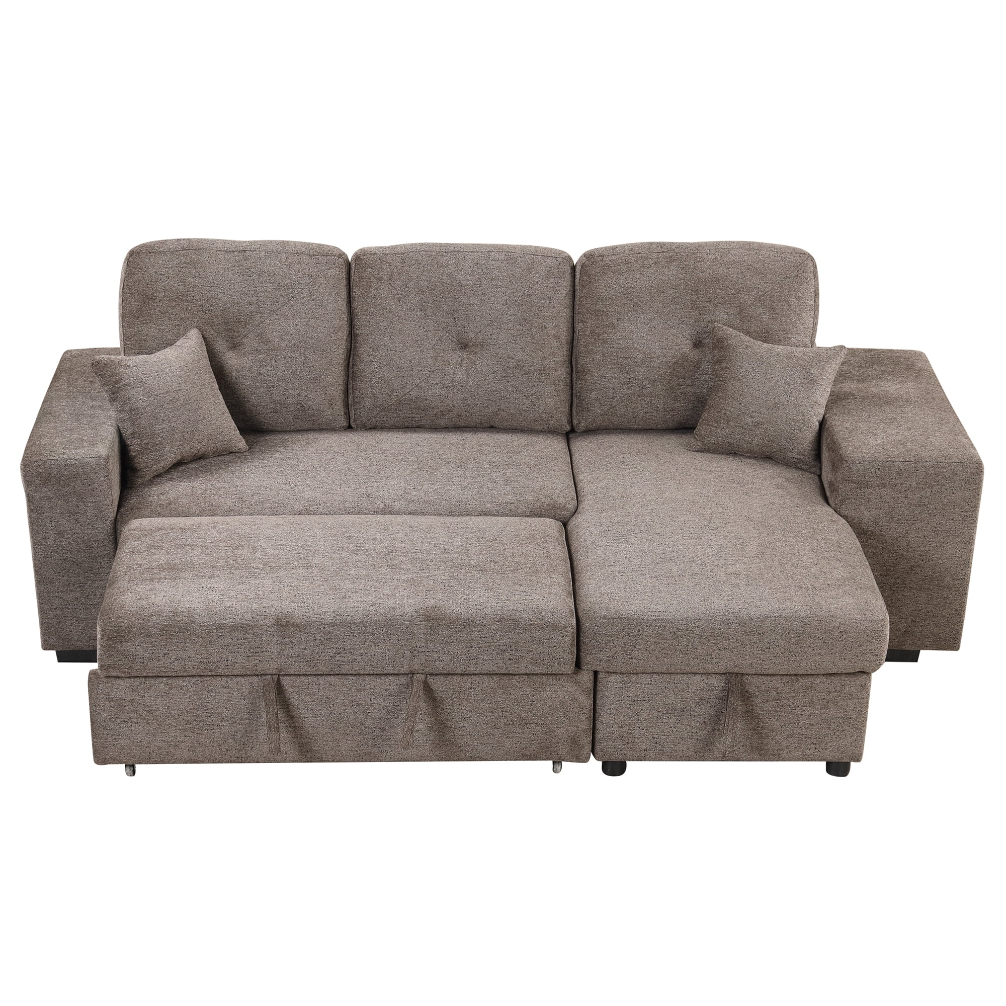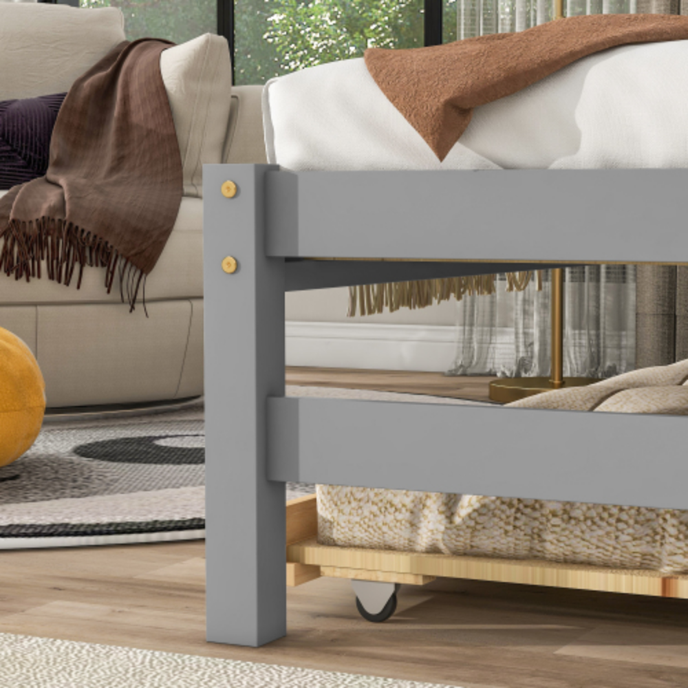 Benjara Ellen Trundle Daybed, Gray Fabric Upholstery, Rolled Arms, Nailhead Trim