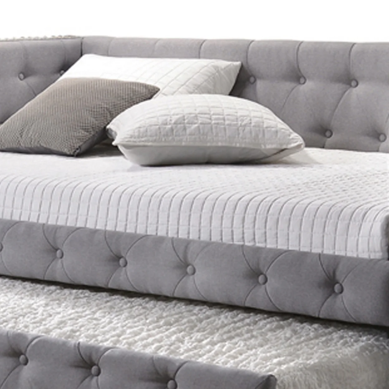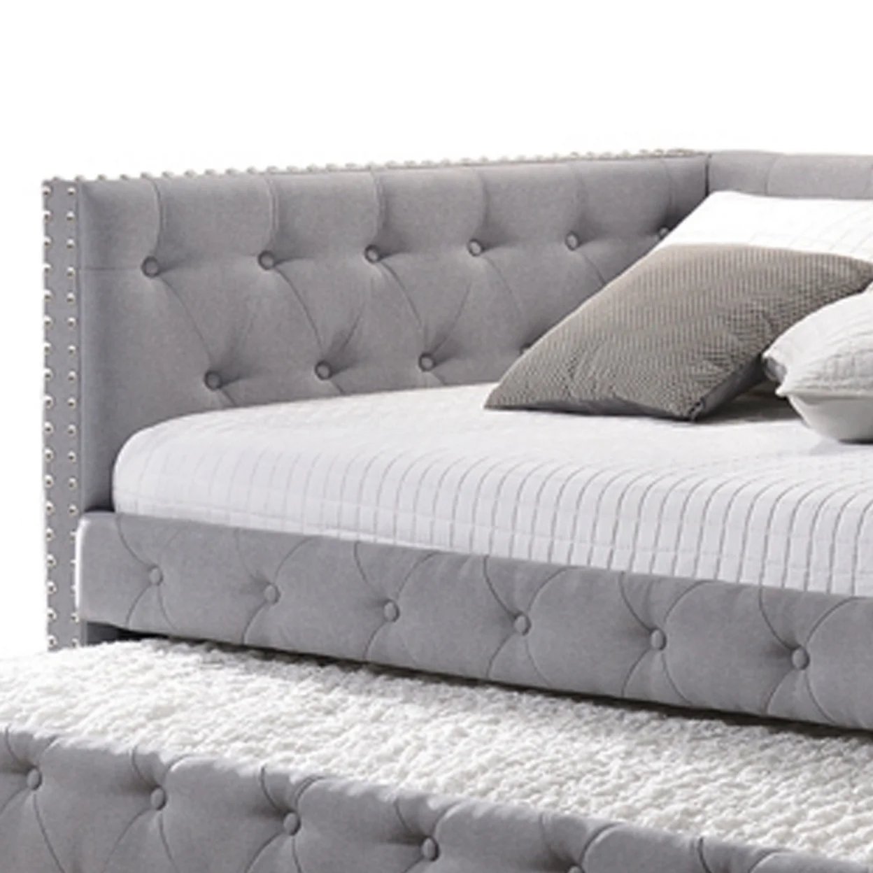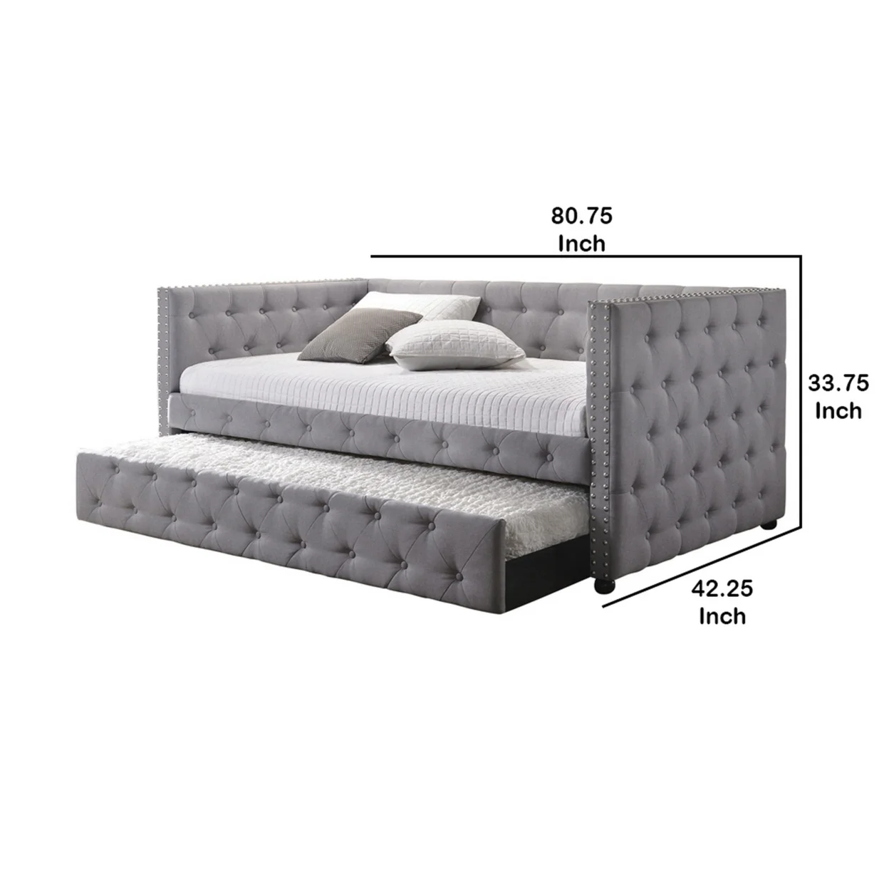 Fabric Upholstered Button Tufted Twin Size Daybed with Nailhead Trims, Gray