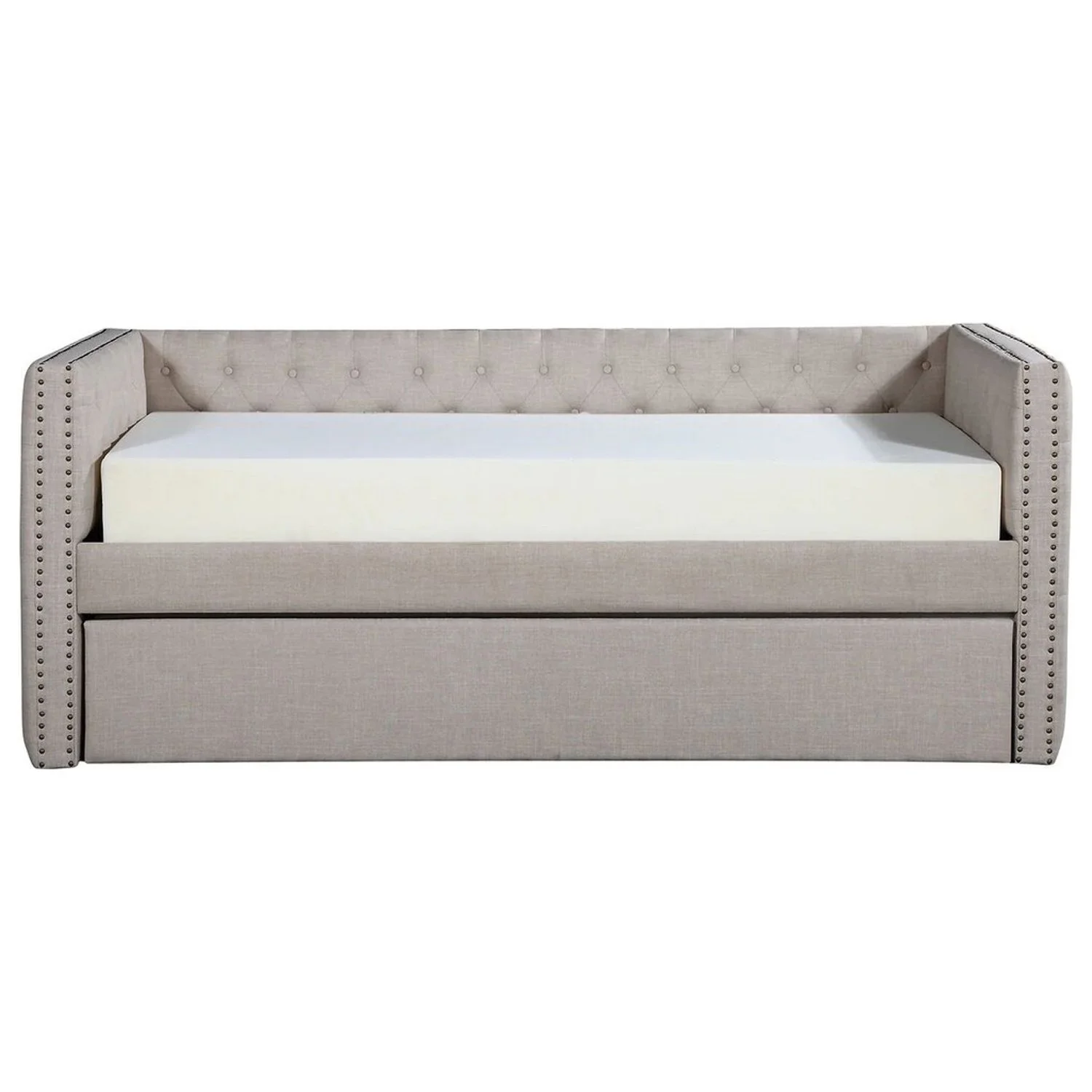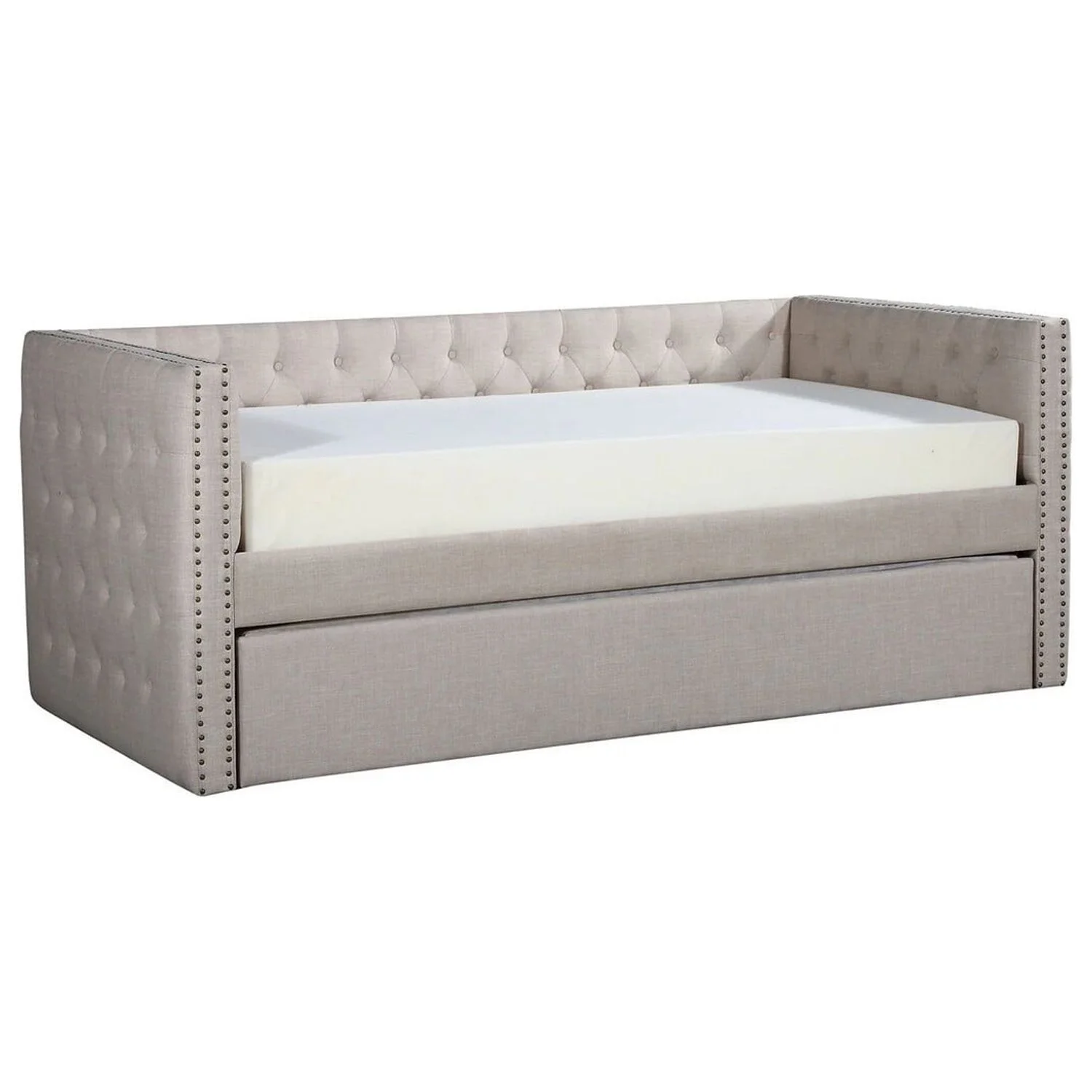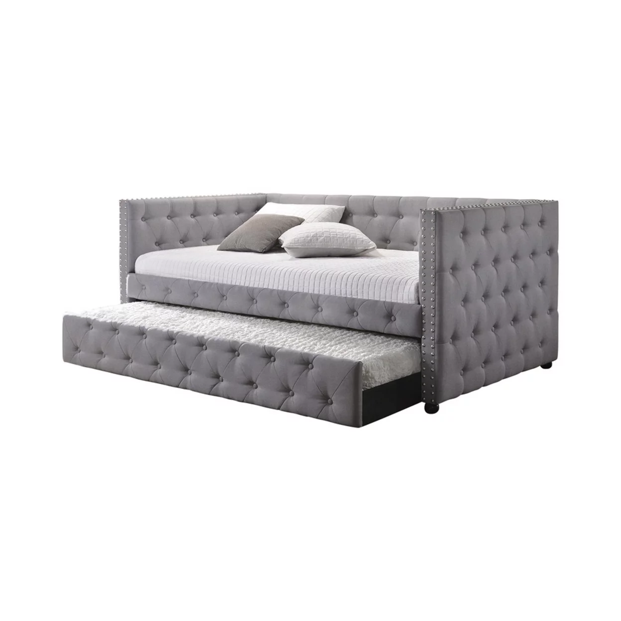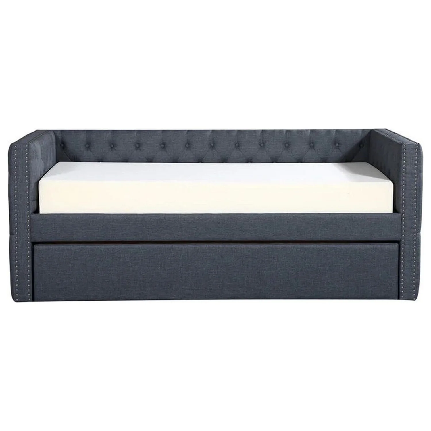 Fabric Upholstered Button Tufted Twin Size Daybed with Nailhead Trims, Gray