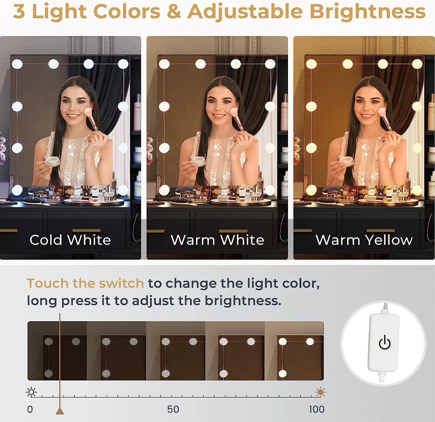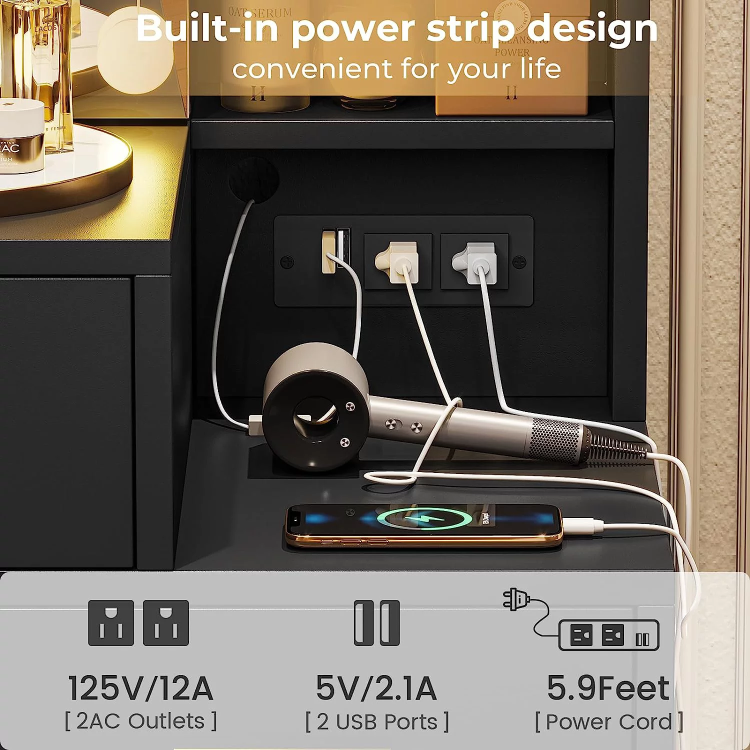 Vanity Table with Charging Station, Modern Dressing Table with 5 Drawers, Black