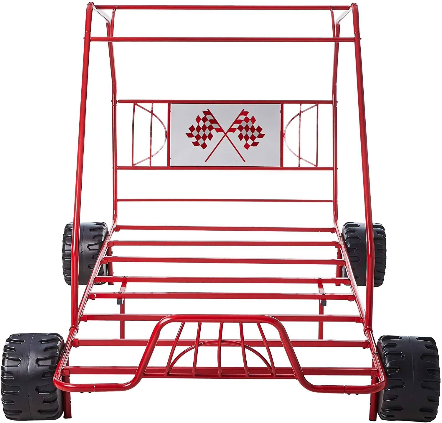HomeRoots Decor 84-inch X 56-inch X 51-inch Twin Red Go Kart Metal Tube Bed