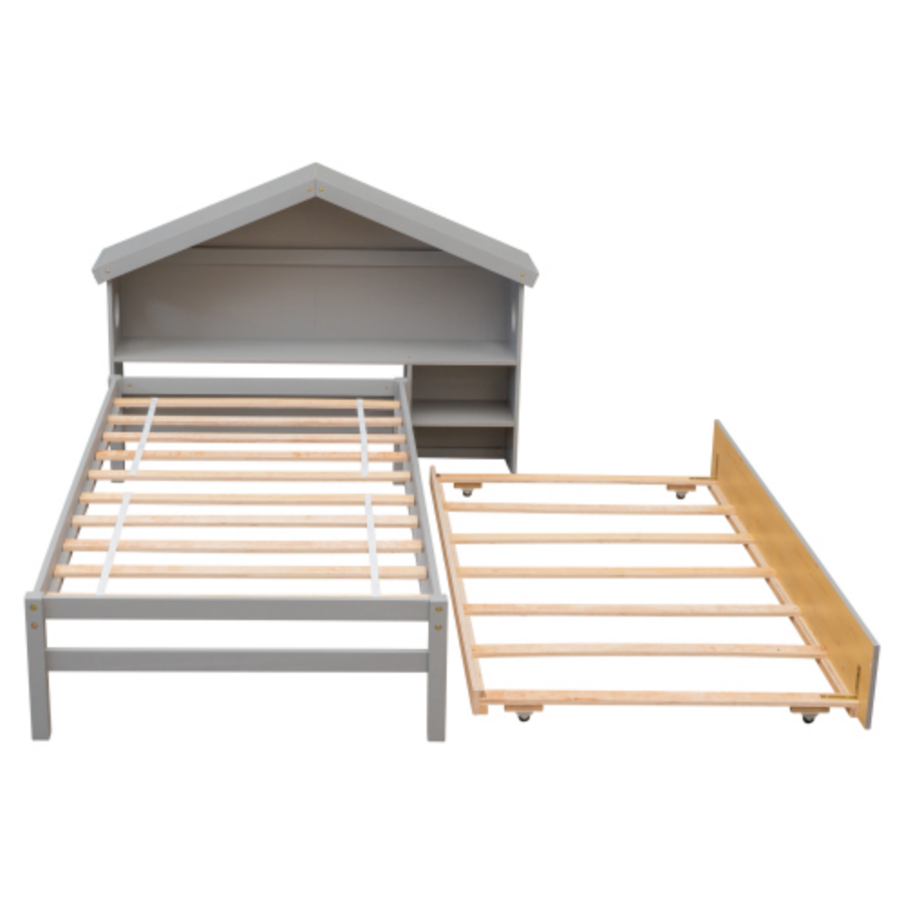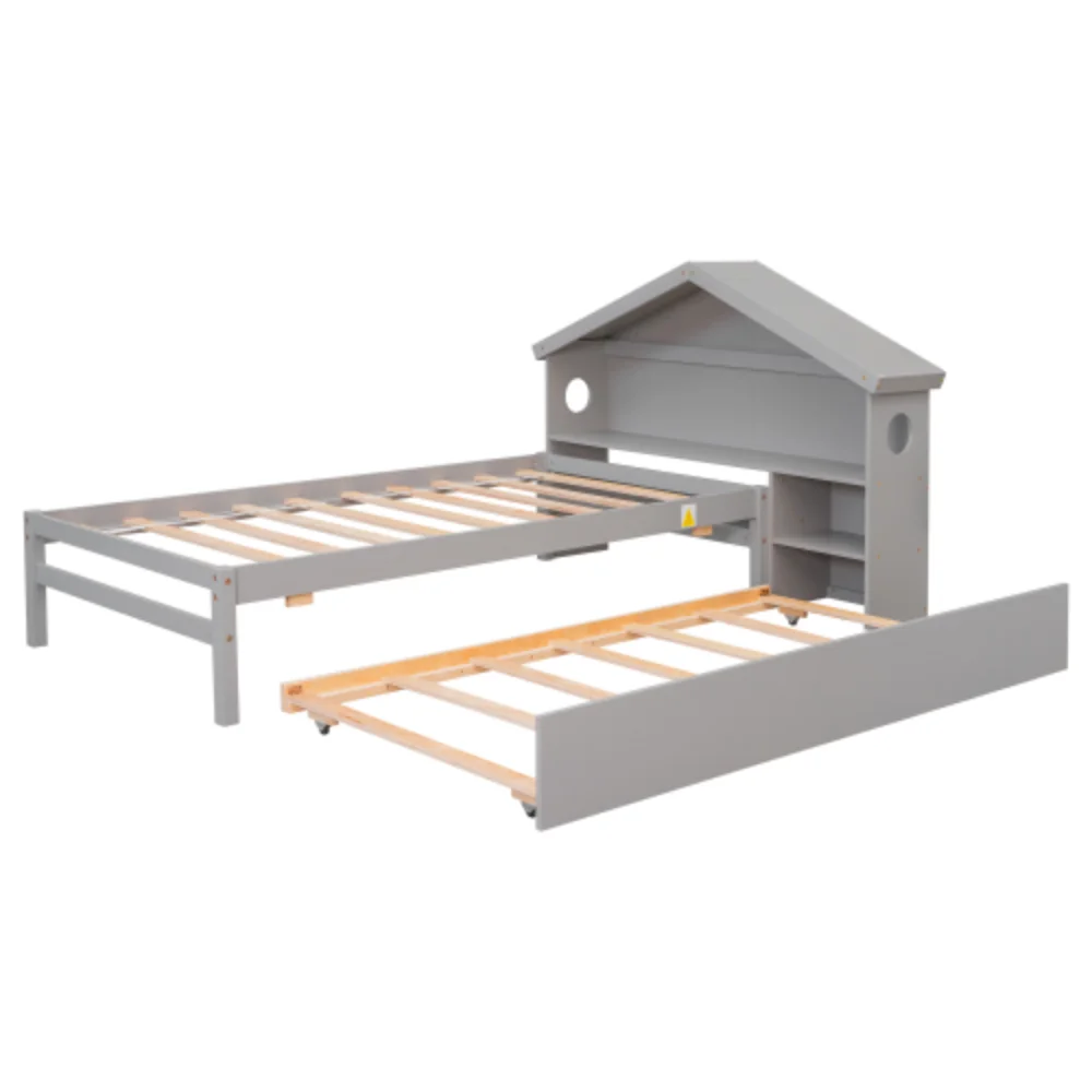 CoSoTower Twin Storage House Bed for Kids with Bedside Table, Trundle, White