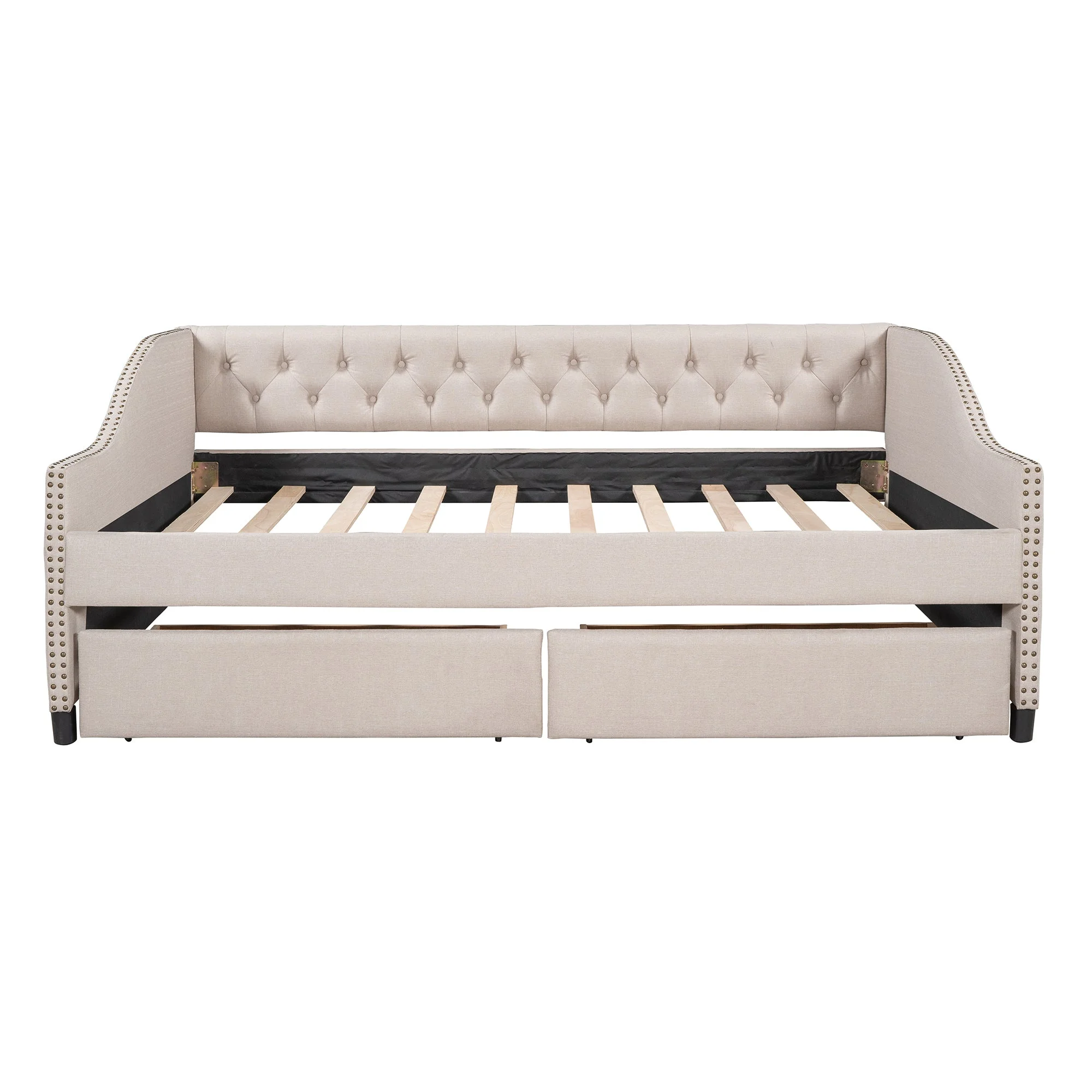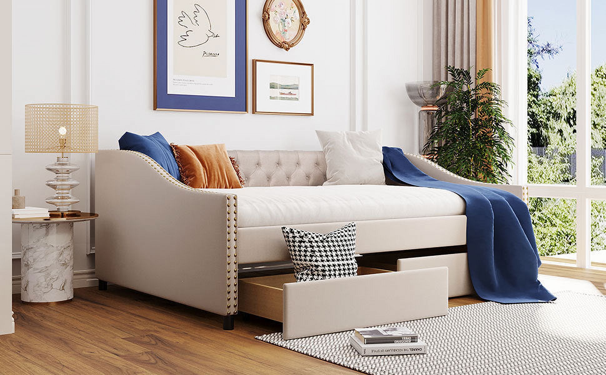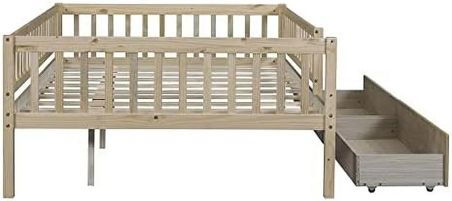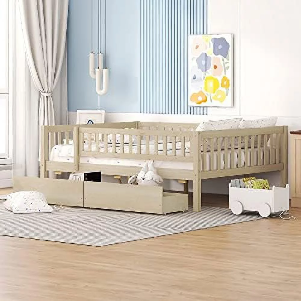 Full Size Daybed With Drawers, Wood Full Bed Frame, No Box Spring Needed, Natural